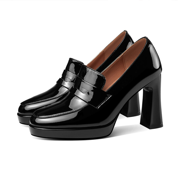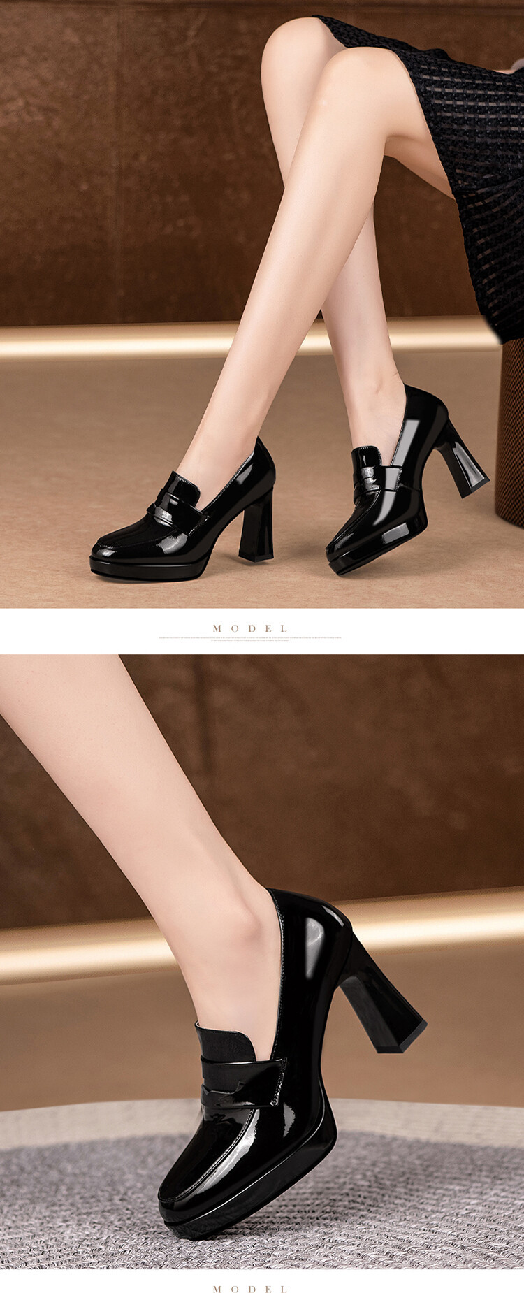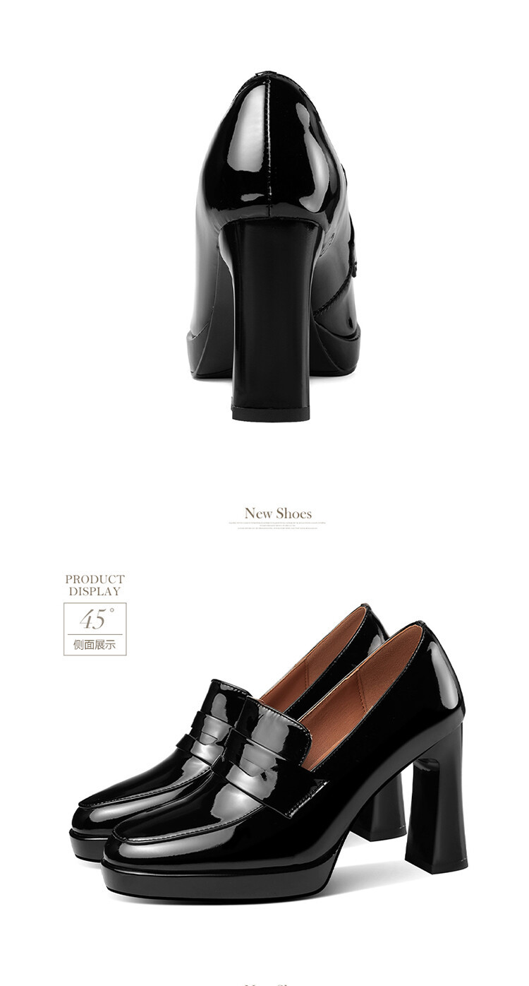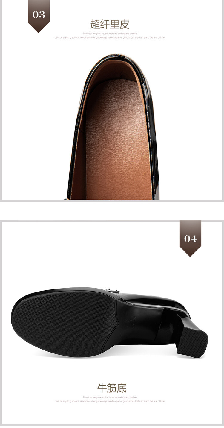 BZ95874粉红色圆头防水台高跟鞋女2025春秋季新款厚底中口粗跟单鞋漆皮潮
