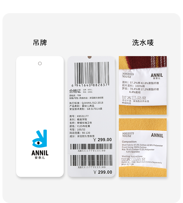【实体店同款】男童带帽长袖卫衣秋季新款安奈儿童装XB531177