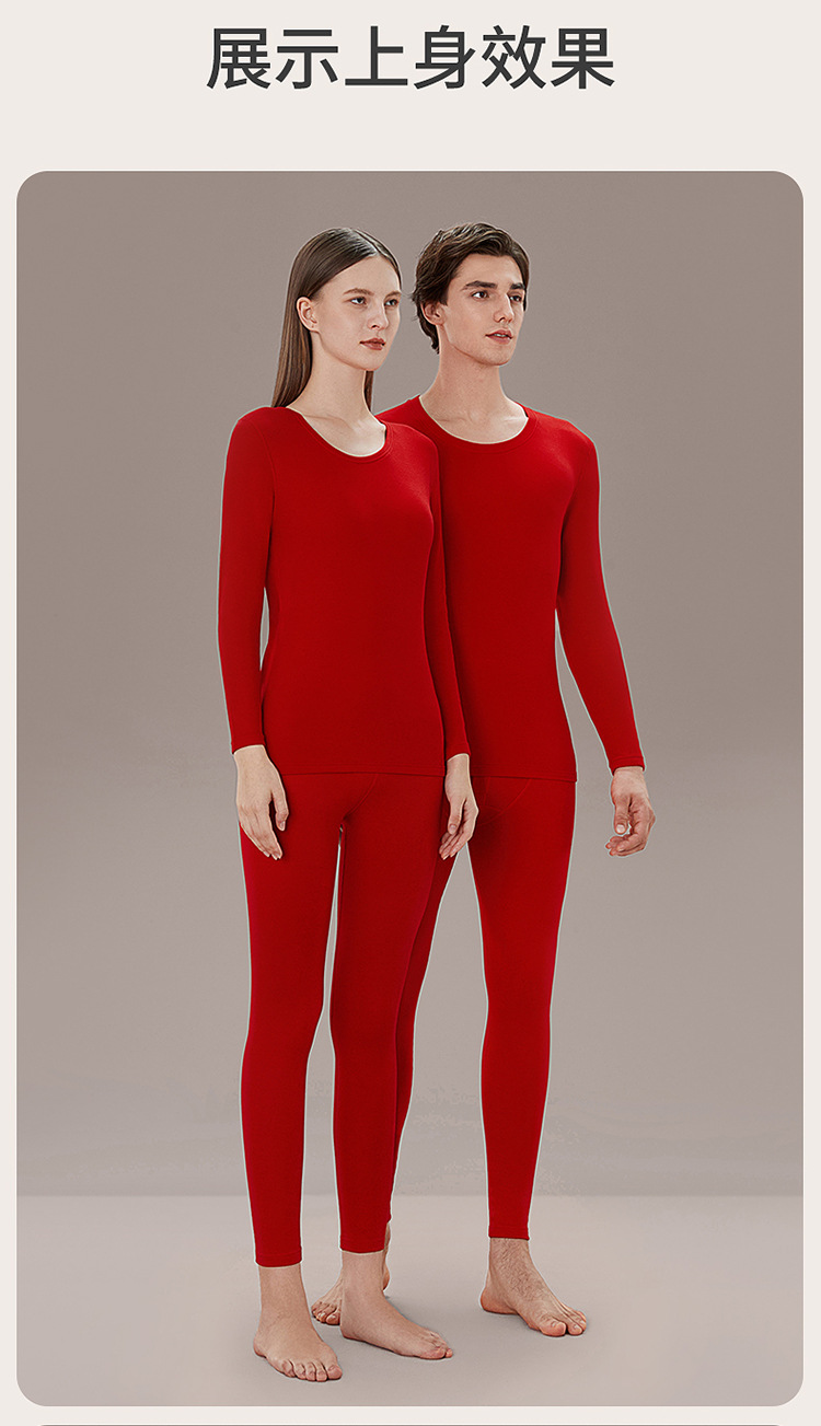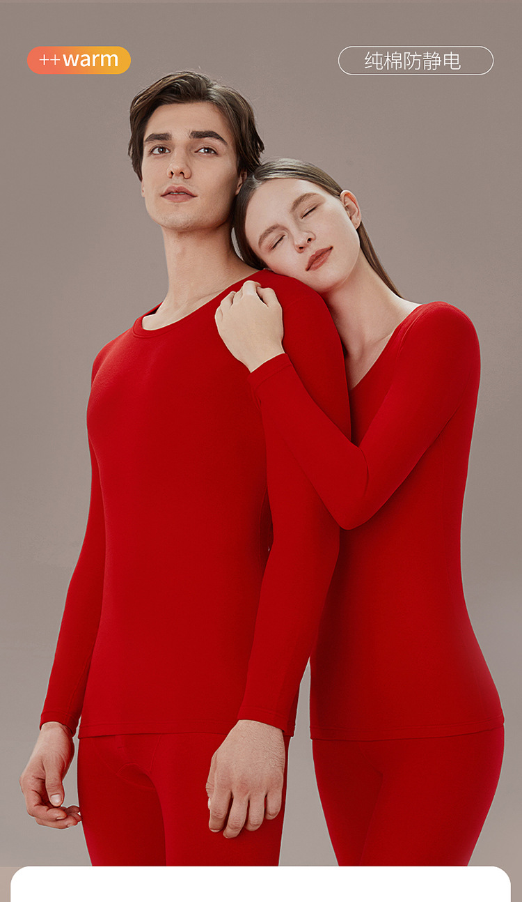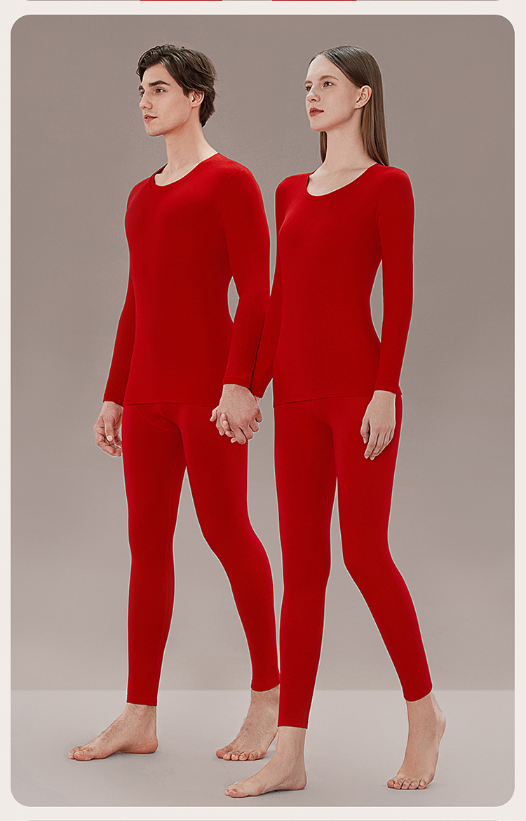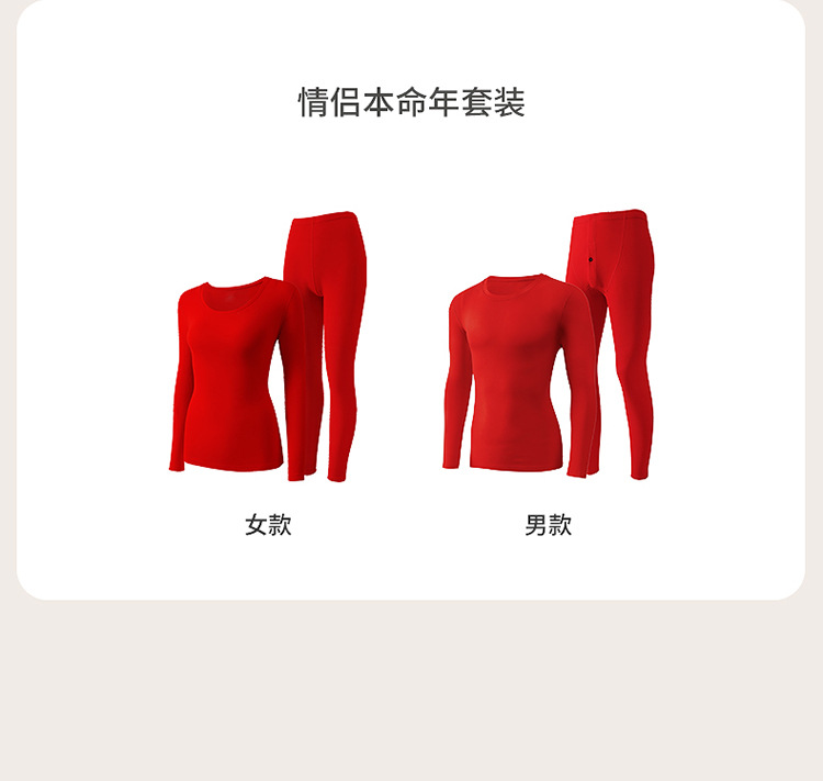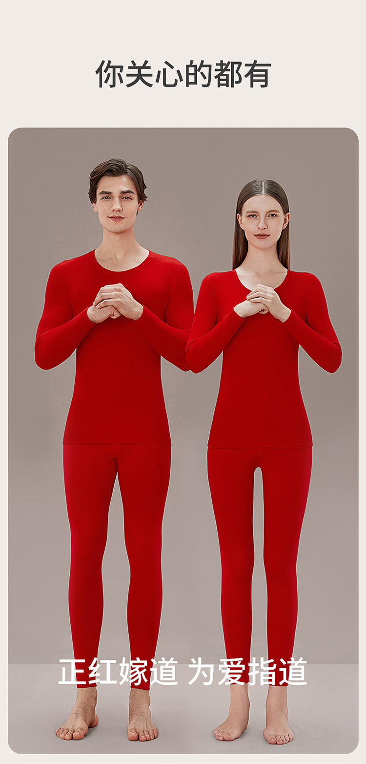 丁摩 品牌同款大红色本命年保暖内衣男女秋冬保暖套装纯棉秋衣秋裤盒装4ZF-123008