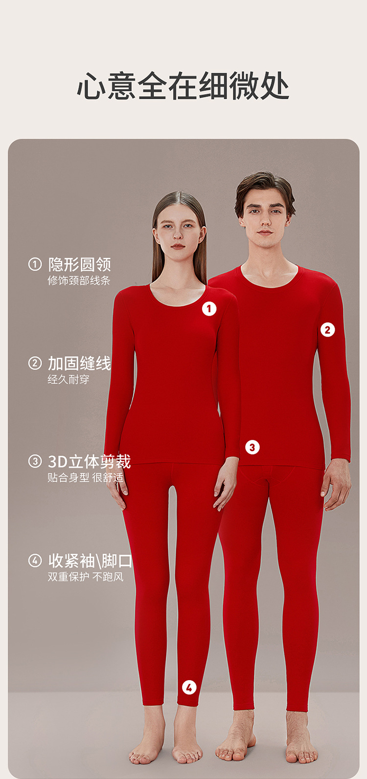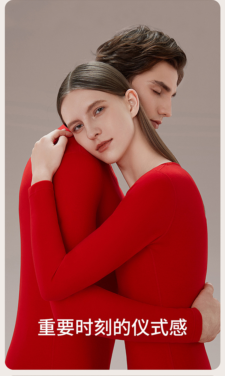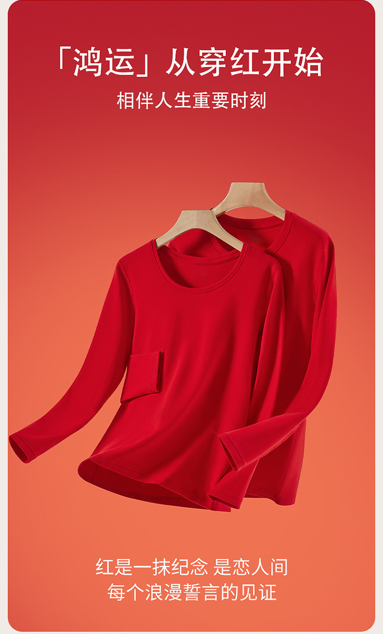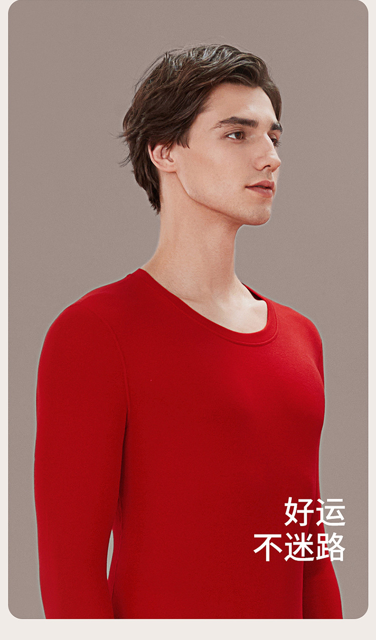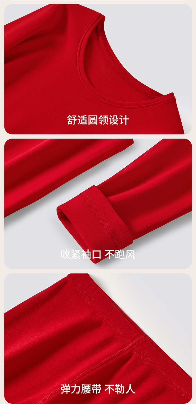 丁摩 品牌同款大红色本命年保暖内衣男女秋冬保暖套装纯棉秋衣秋裤盒装4ZF-123008