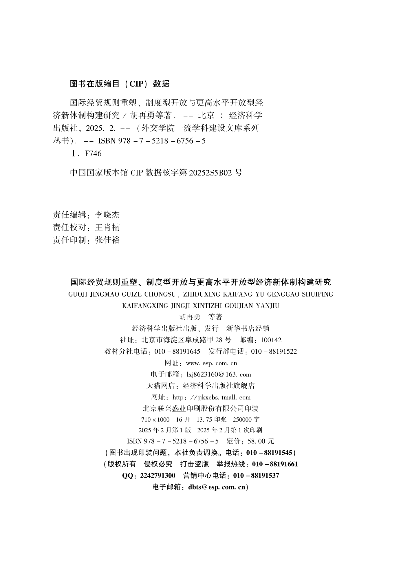 国际经贸规则重塑、制度型开放与更高水平开放型经济新体制构建研究