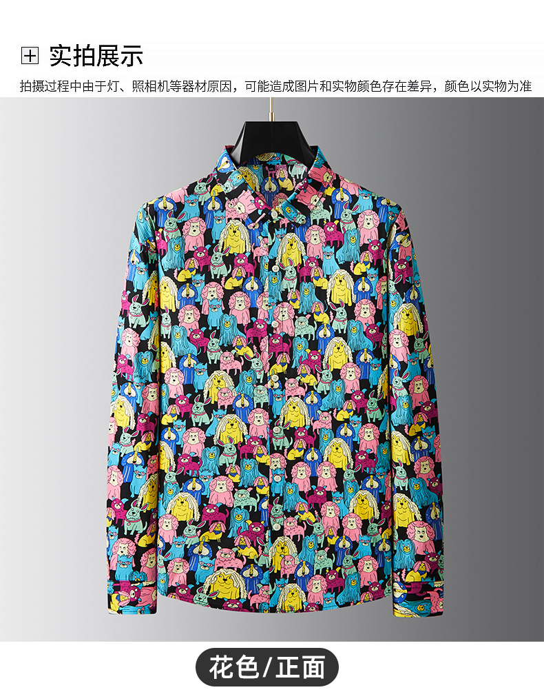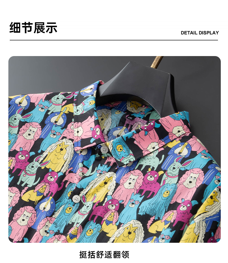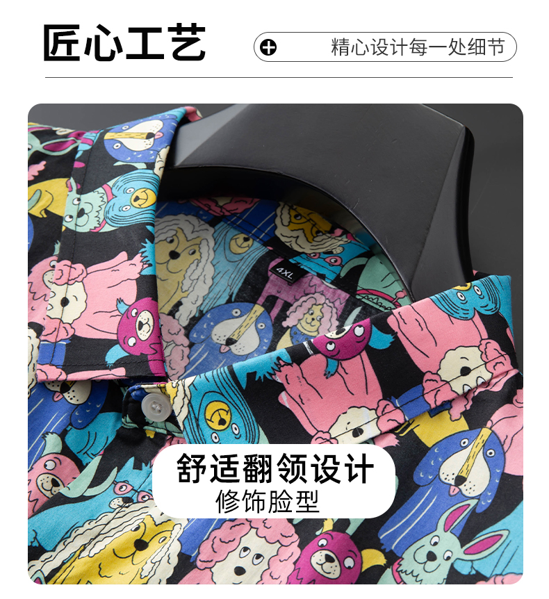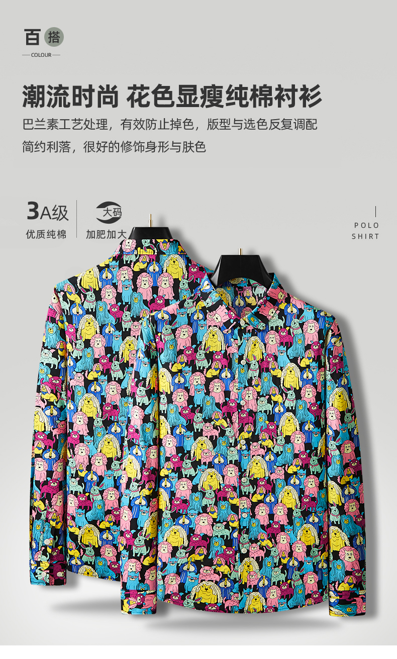 【100%棉】【新款DDA】大依优型大码花衬衫长袖衬衫翻领加肥加大肥佬休闲商务宽松透气上衣