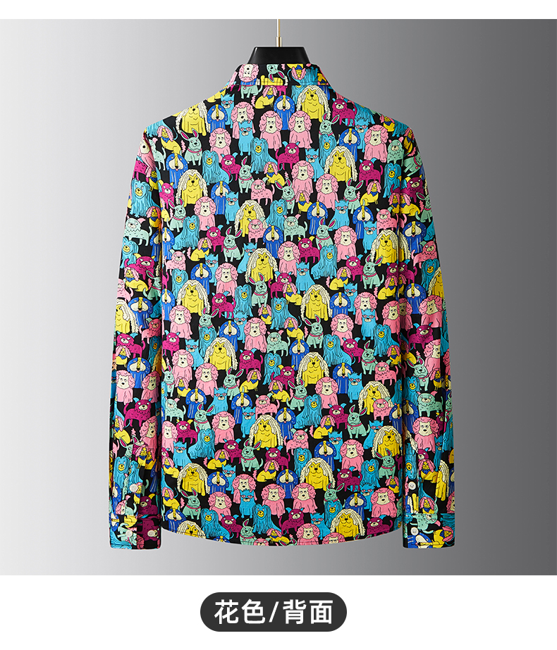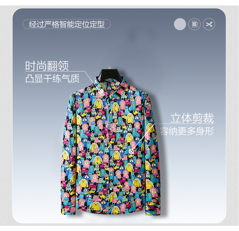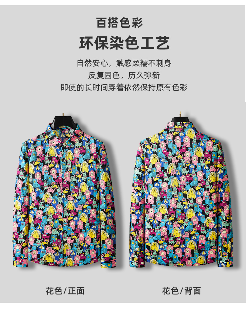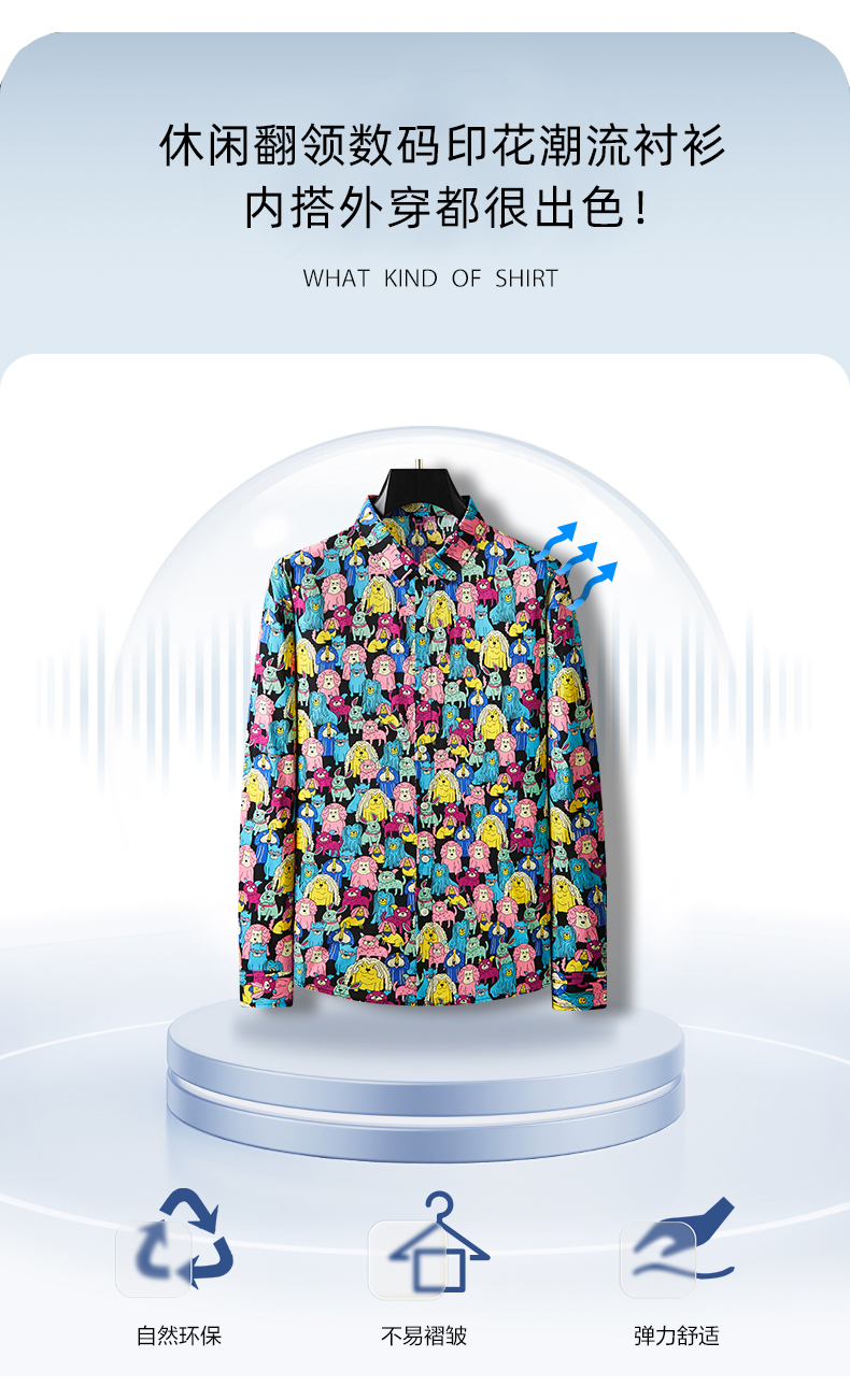 【100%棉】【新款DDA】大依优型大码花衬衫长袖衬衫翻领加肥加大肥佬休闲商务宽松透气上衣