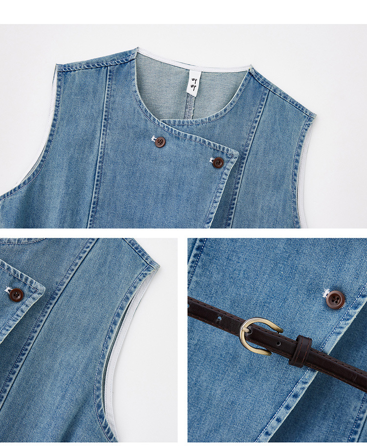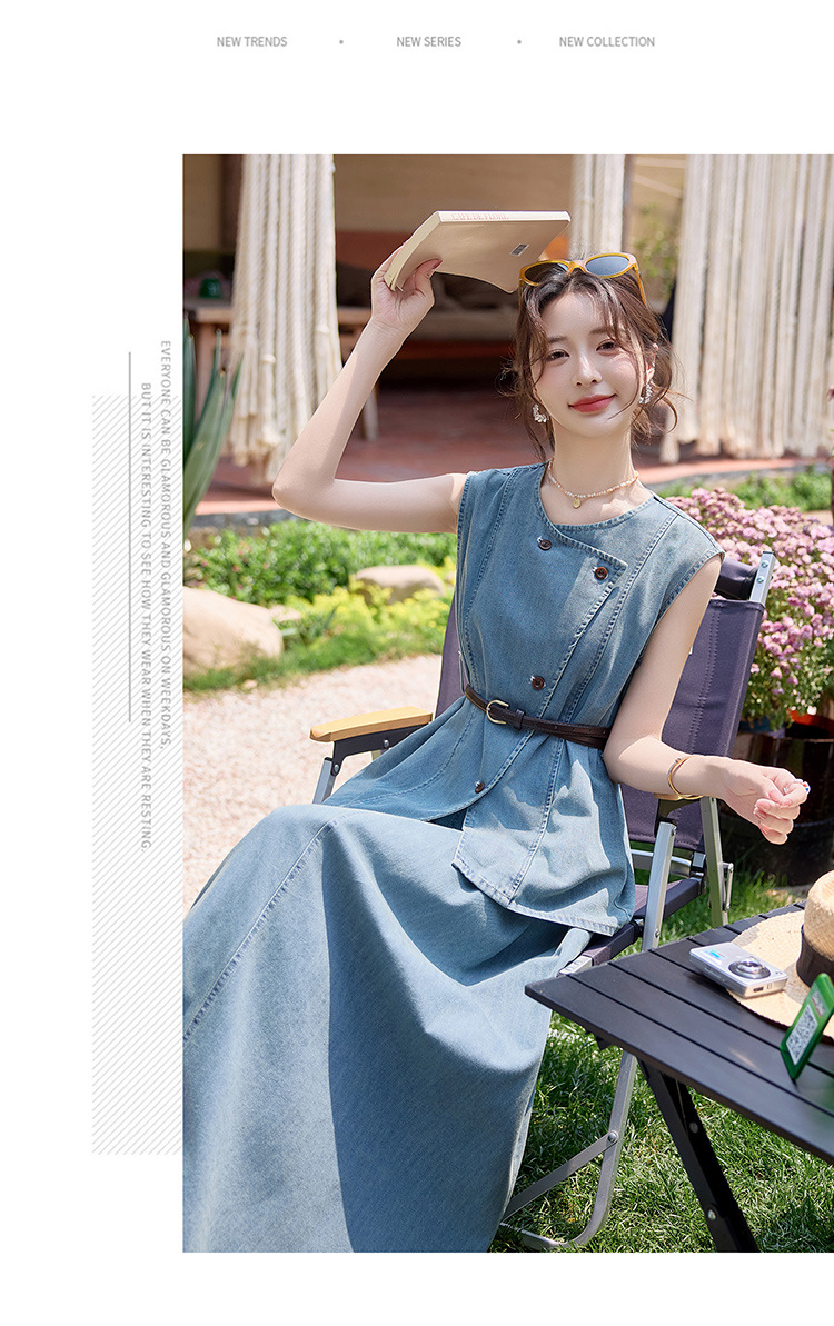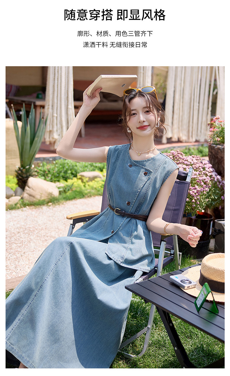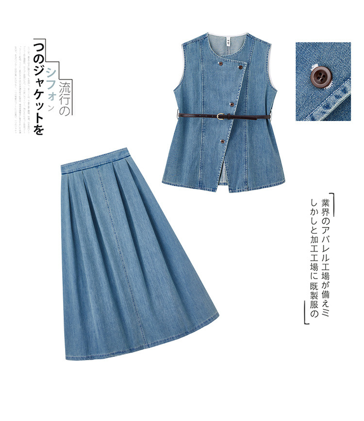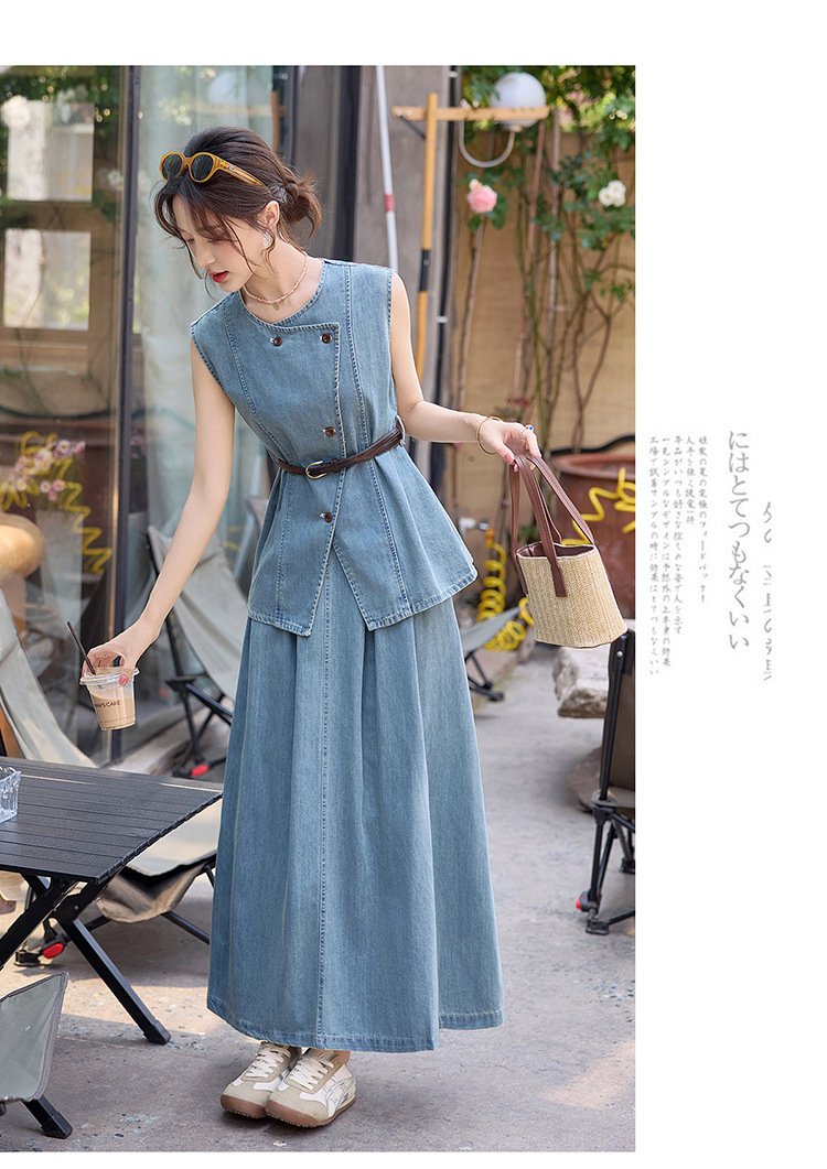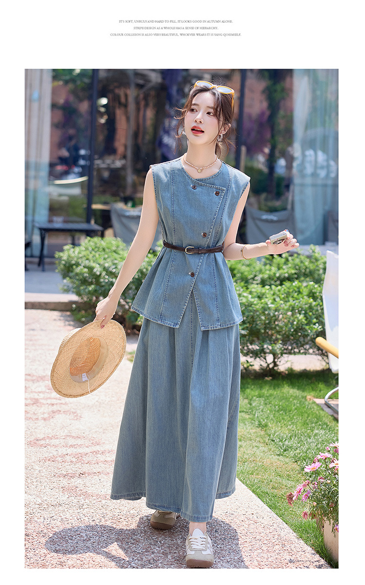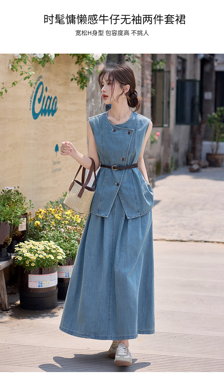 牛仔无袖上衣半身裙两件套,气质修身牛仔套装HR-YLFS9003