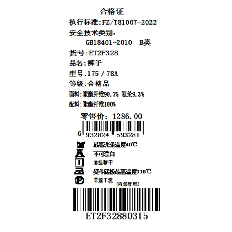 乔万尼修身时尚通勤直筒裤子ET2F328