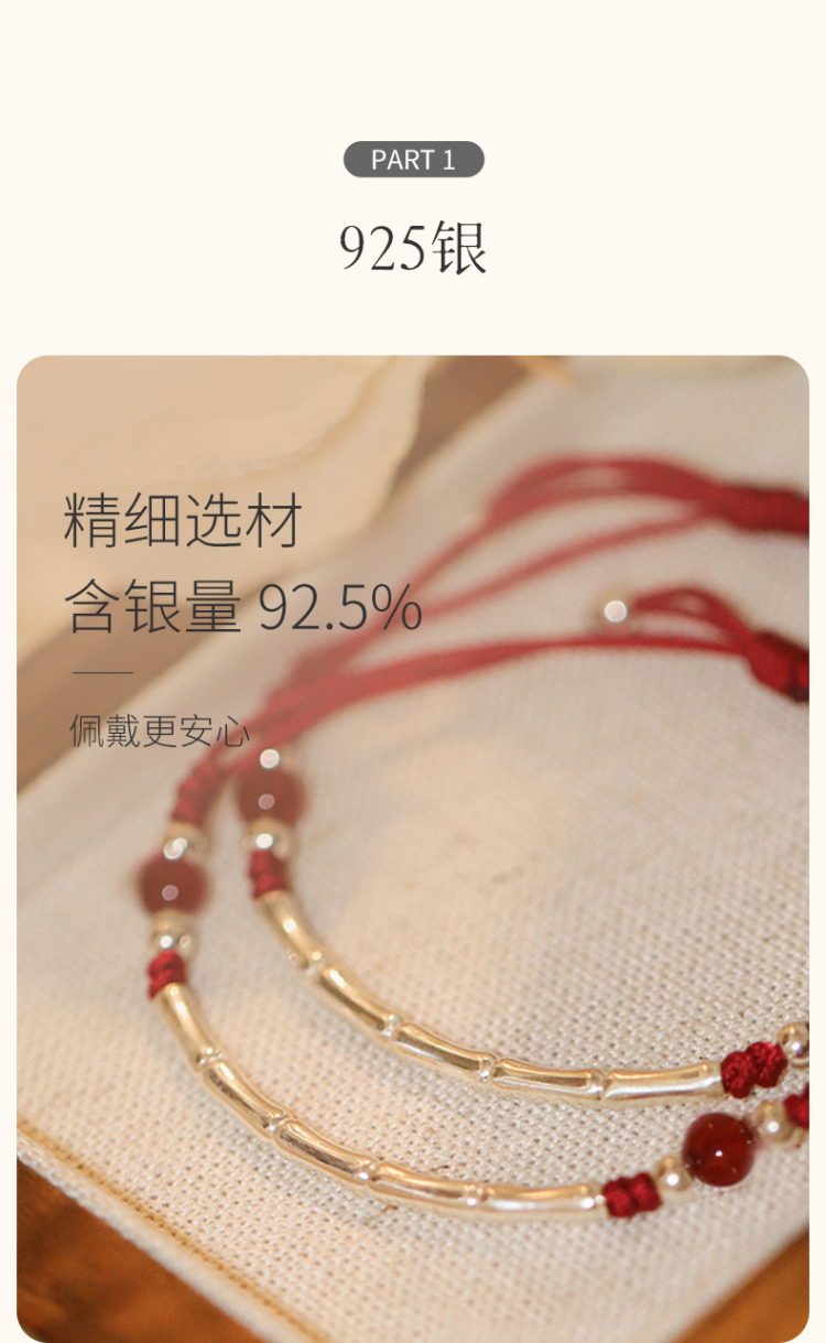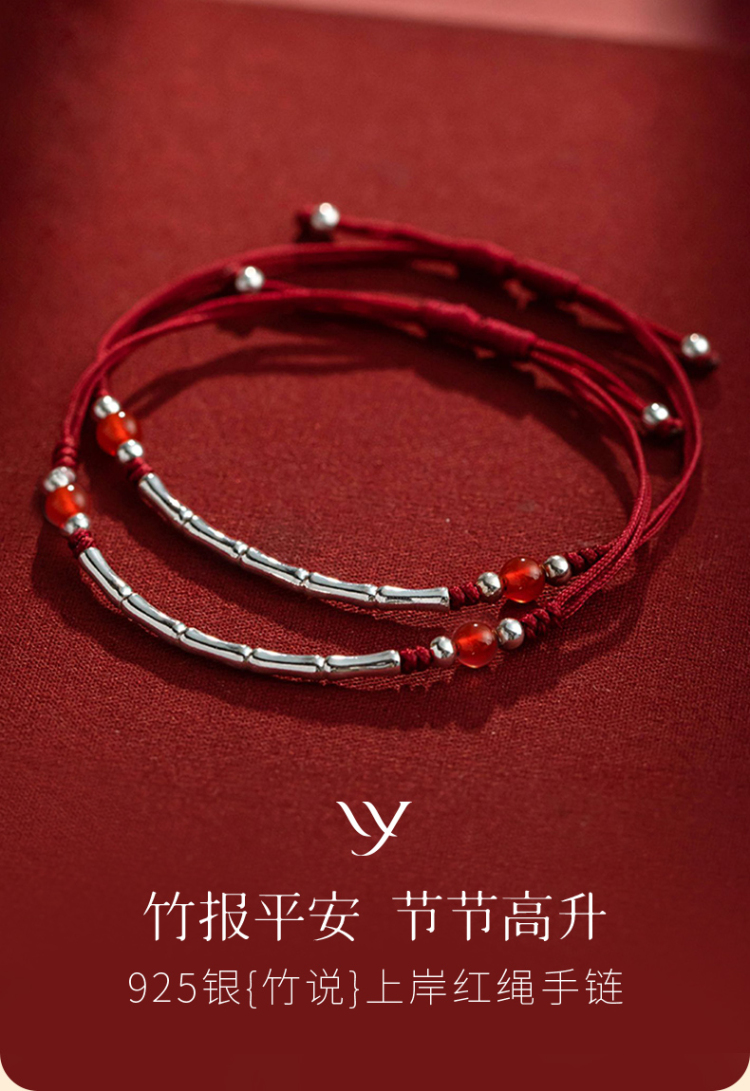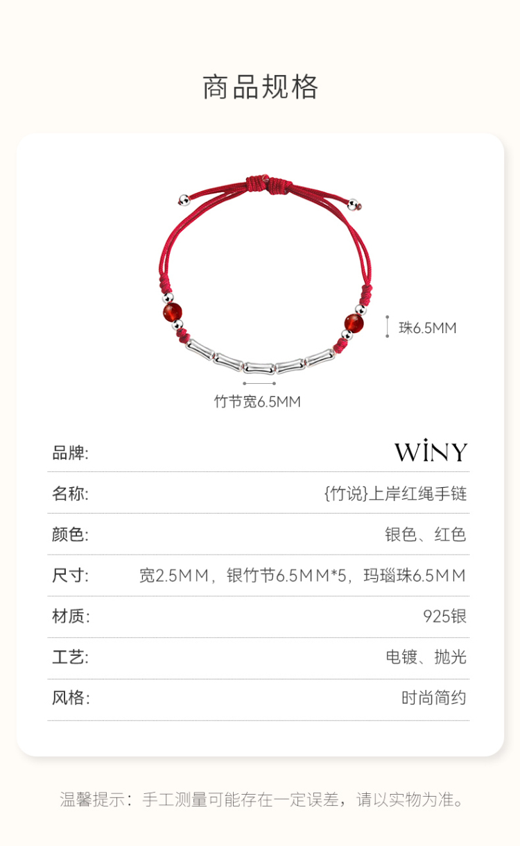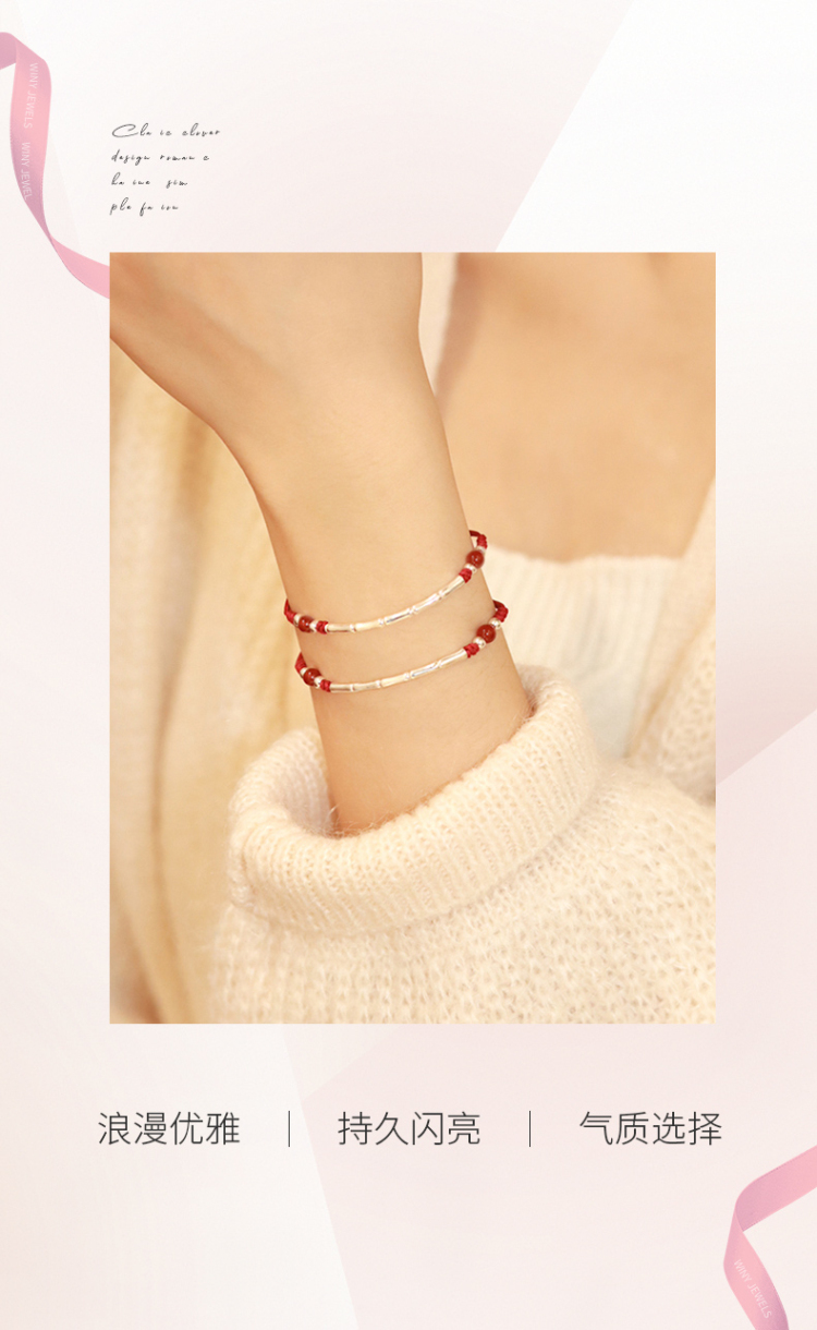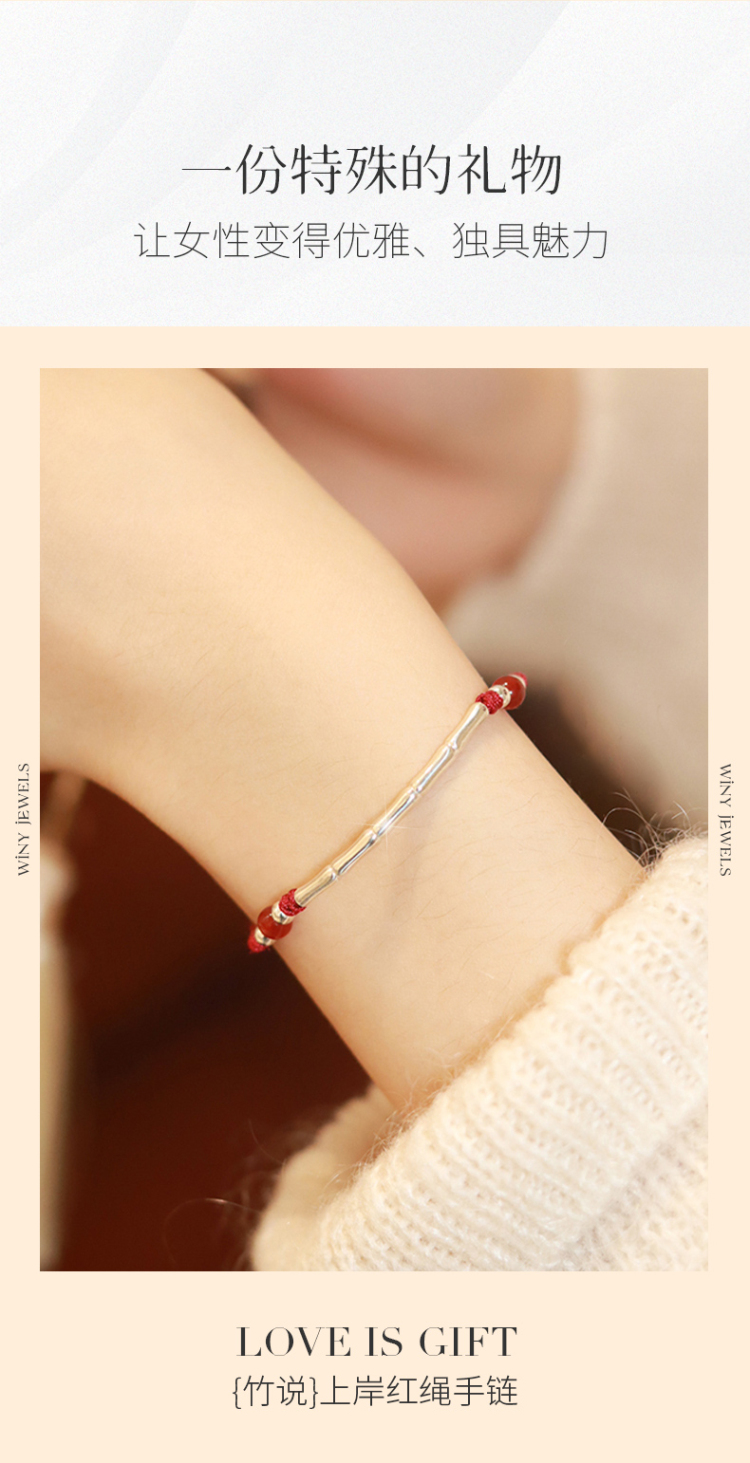 Winy925银节节高升竹节手链配证书送女友闺蜜节日礼物