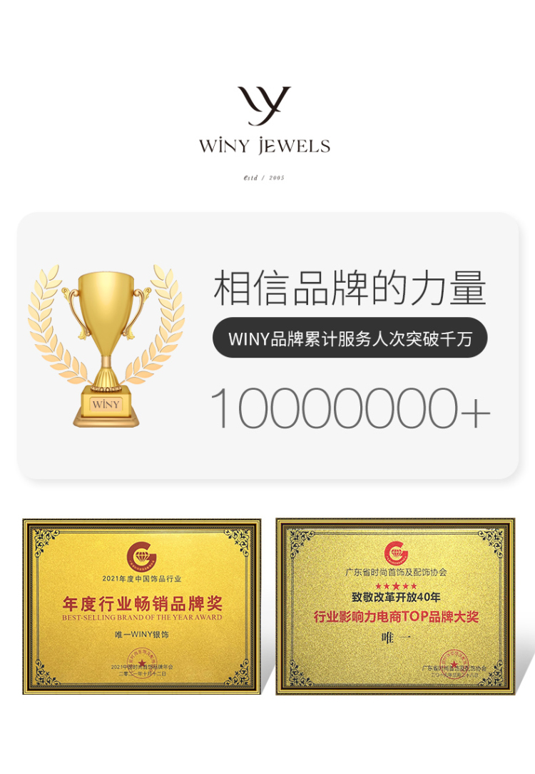 唯一winy是国内网络饰品品牌的先行者。 创立初衷源于对亲情、爱情、友情的珍惜唯一,用心做好每一件饰品为您守护人生中如珠宝般珍贵动人的那些时刻那怕岁月流转,唯爱始终如一。