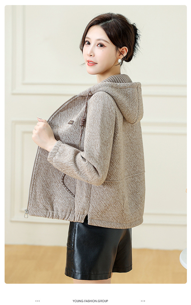 QYM 7258028-Y时尚连帽外套休闲宽松拉链开衫衣 商品图3