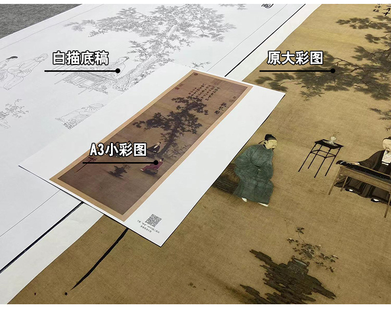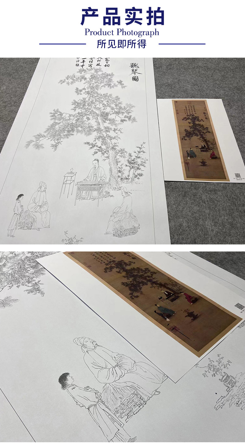 【大彩图】赵佶工笔画白描底稿《听琴图》临摹勾线高清打印稿A654