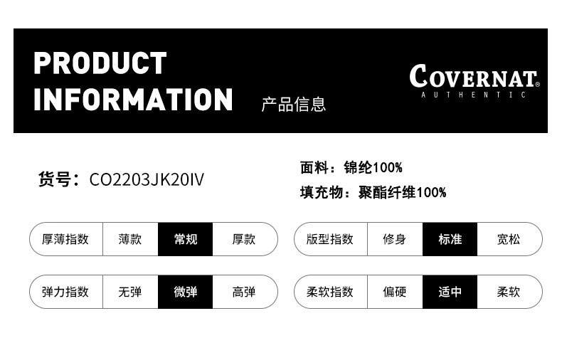 COVERNAT男女同款短款绗缝夹克时尚百搭CO2203JK20