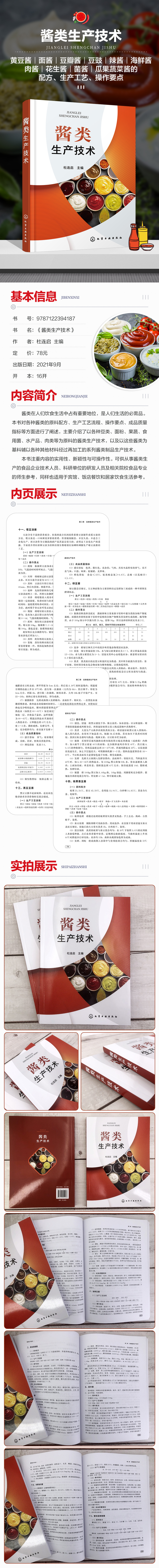 酱类生产技术 新型酱类原料配方 生产工艺流程 操作要点 成品质量指标 酱类制品生产 黄豆酱面酱豆瓣酱豆豉海鲜酱等工艺制作书籍