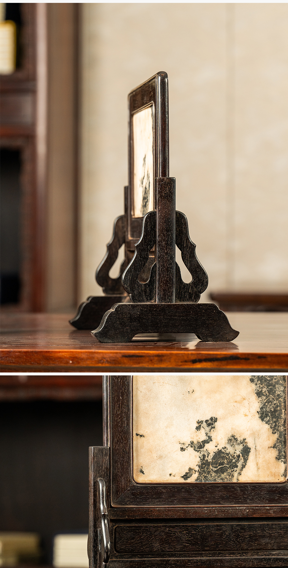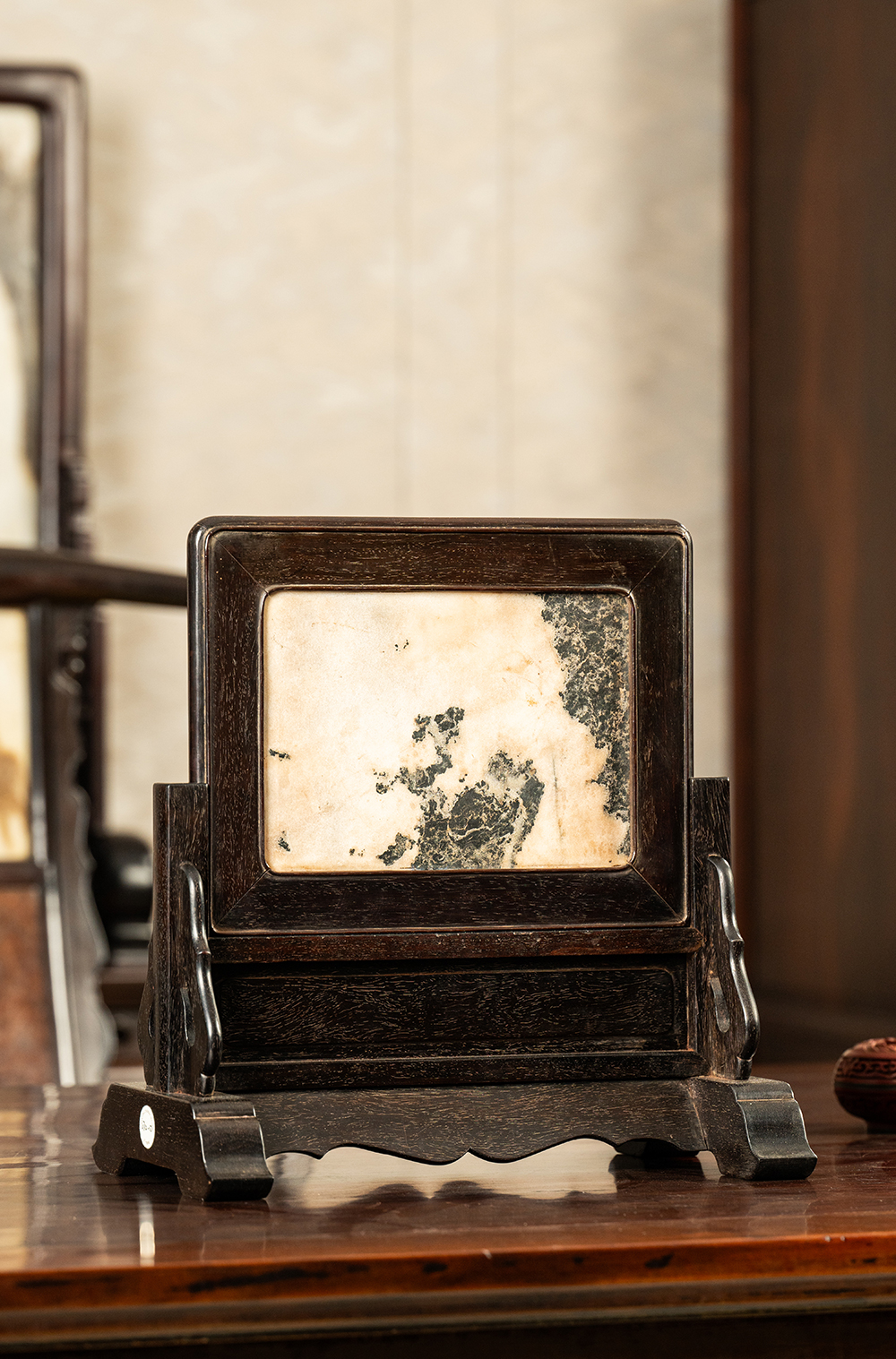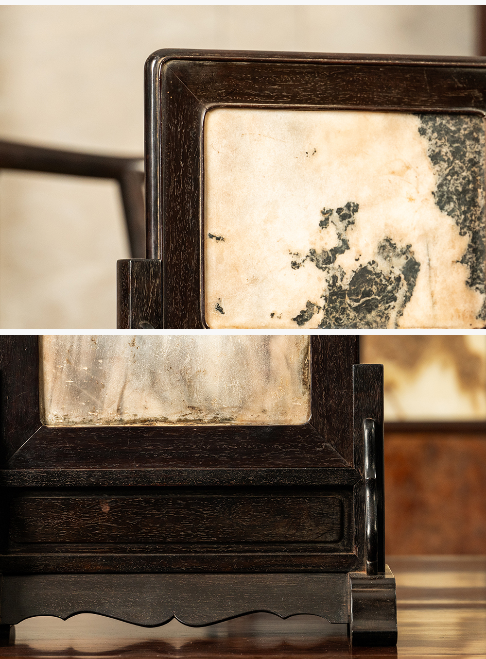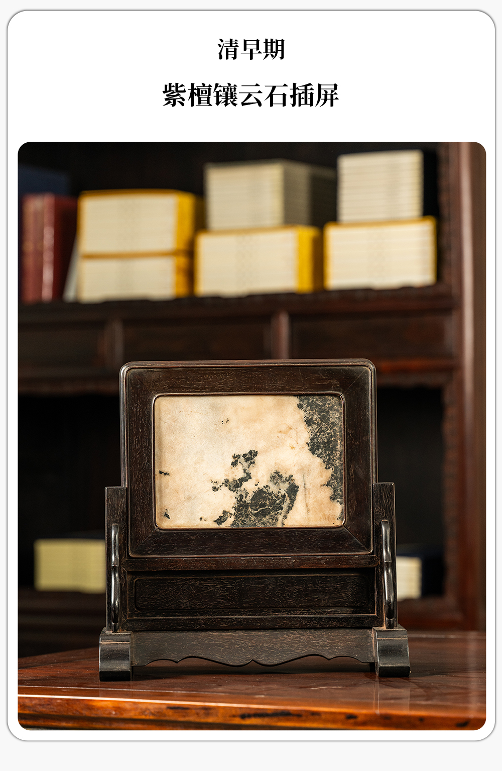 清早期 紫檀镶云石插屏
