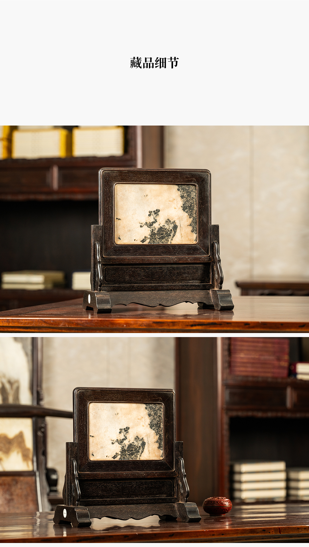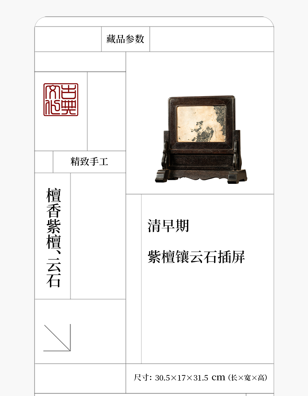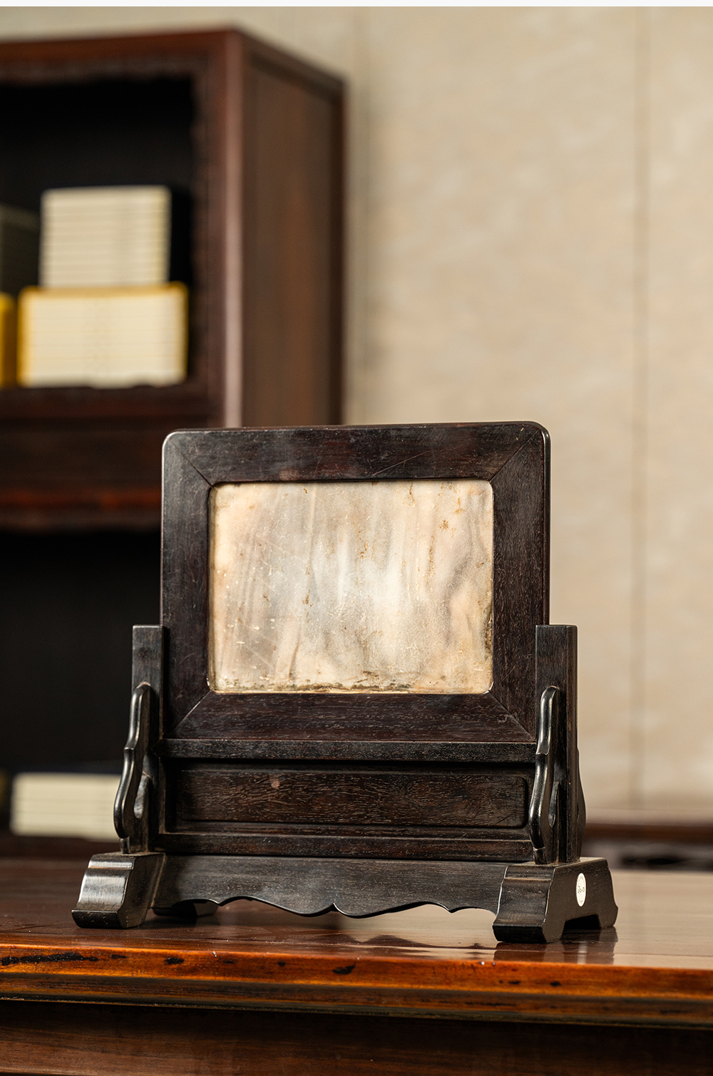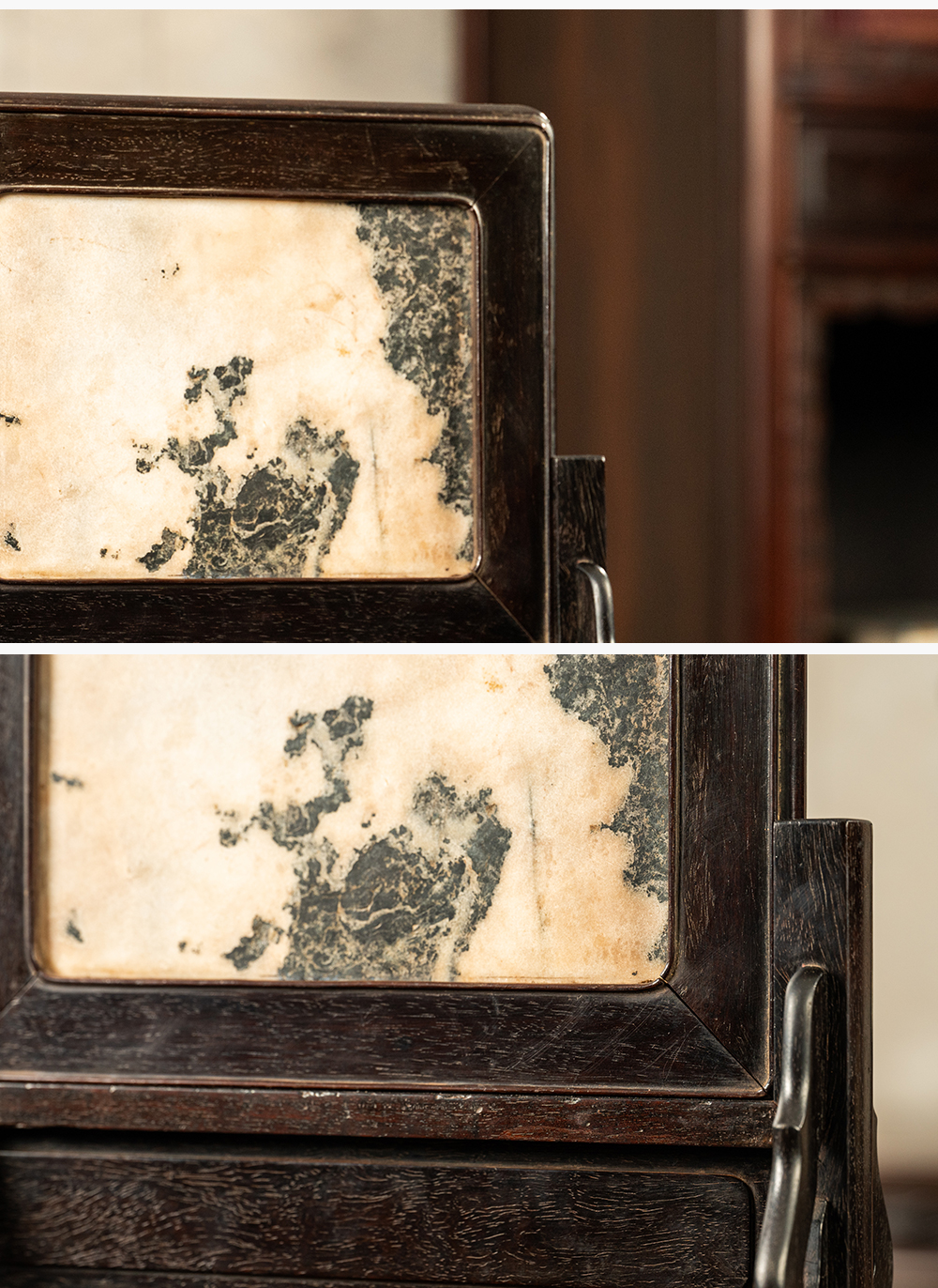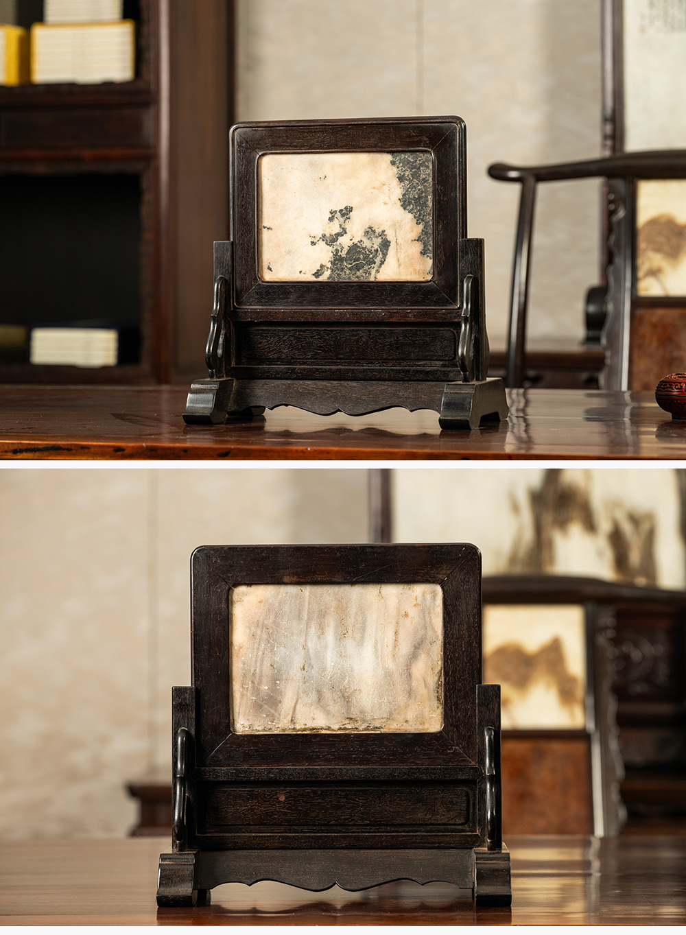 清早期 紫檀镶云石插屏