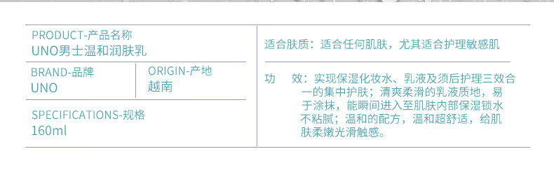 日本本土版 UNO男士乳液160ml 保湿调理乳 资生堂旗下男士品牌
