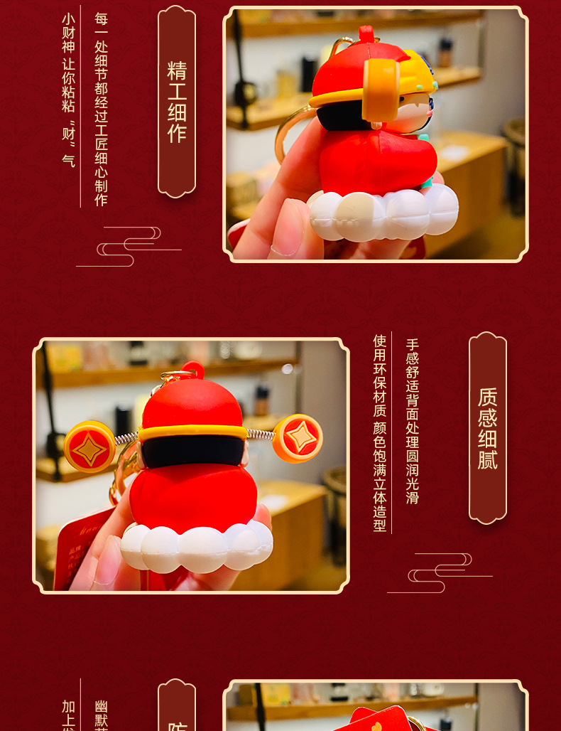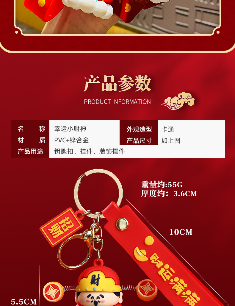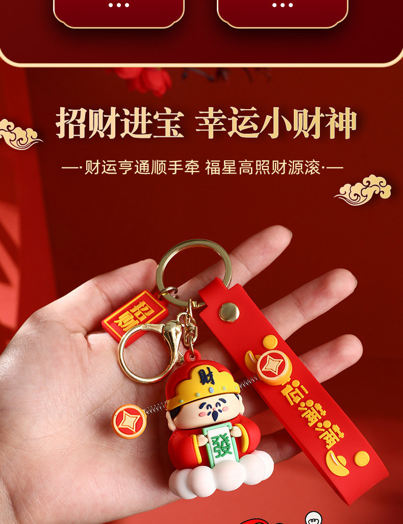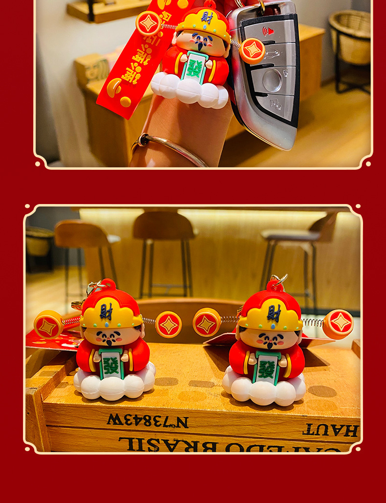 【财源滚滚来,财神关门把财开,钥匙扣挂件】创意卡通幸运小财神钥匙扣 喜庆汽车链公仔书包挂件 情侣小礼品-QQ