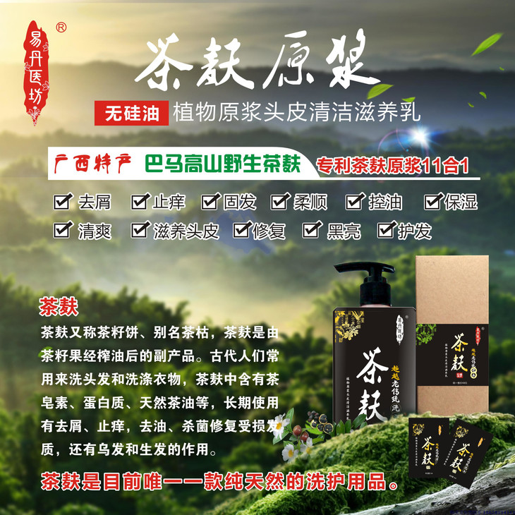 茶麸植物原浆头皮清洁滋养乳,源于瑶族古方,利用现代先进技术,提炼野生茶籽茶油精华,含有茶皂素、蛋白质、天然茶籽油等天然营养成分,有营养滋润、深层清洁、清爽控油、去屑止痒、乌发黑发、防脱固发、损伤修复、柔顺护发之功效,适用各种发质,解决您头屑头痒、断发掉发脱发、头发干枯开叉毛糙、发质损伤等困扰和烦忧。