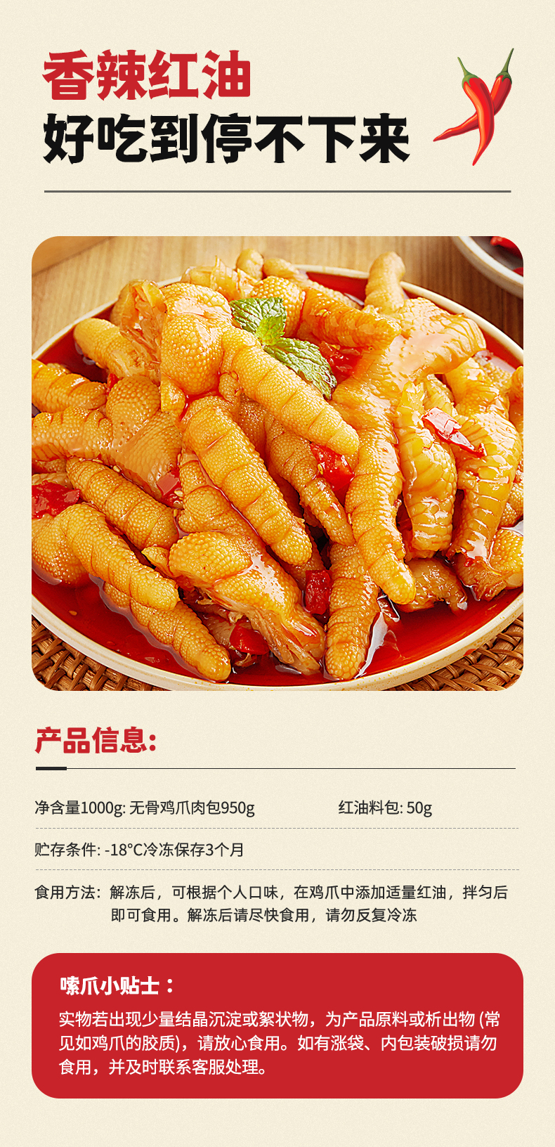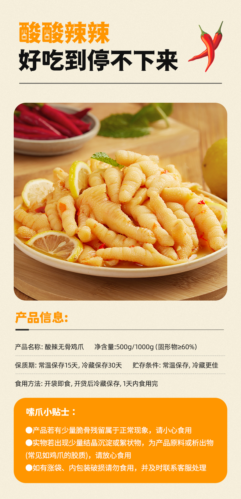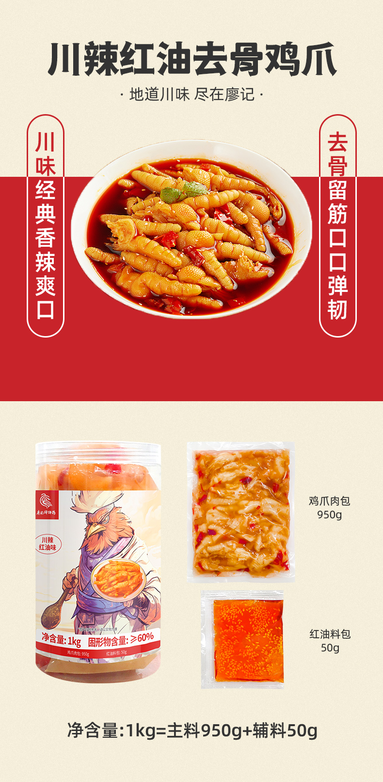 廖记棒棒鸡无骨鸡爪红油川辣柠檬酸辣泡椒去骨凤爪2斤脱骨零食
