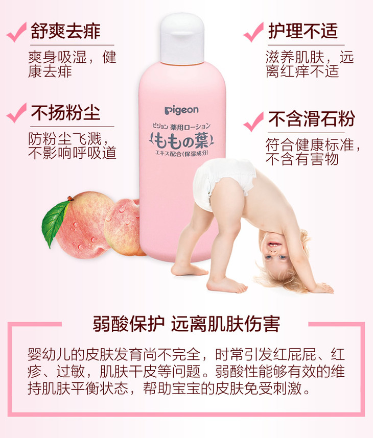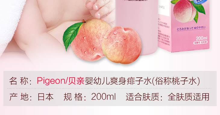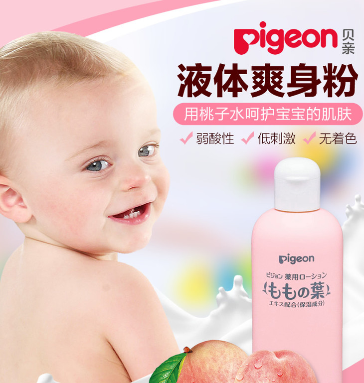 日本贝亲天然液体爽身粉 宝宝新生儿防痱子婴儿童桃子水爽身水200ml