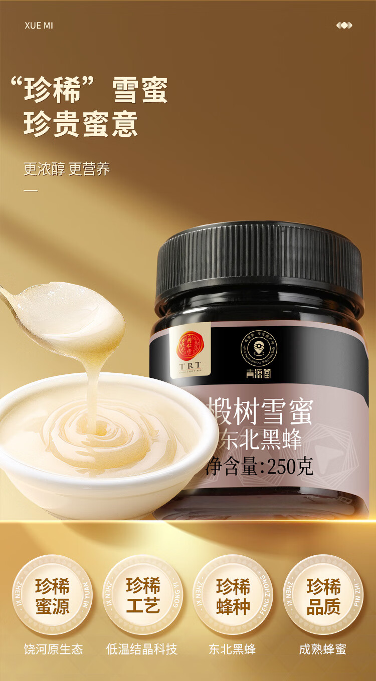 【正宗同仁堂品牌】北京同仁堂 青源堂 蜂蜜 椴树雪蜜250克 东北黑蜂 拒绝添加 低温结晶 如雪细腻SY
