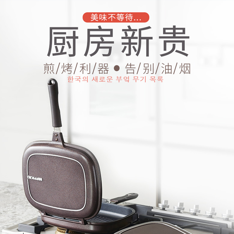 1、两面都是锅,防止了溅油,不必使用锅铲,只需轻松翻转锅子,使料理达到外焦里嫩的效果。
