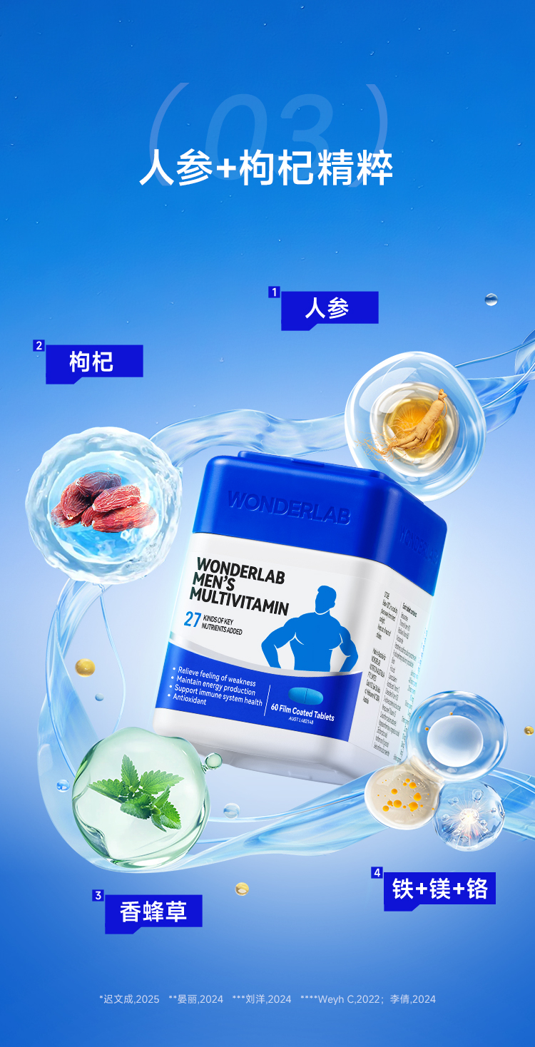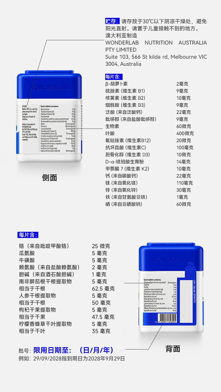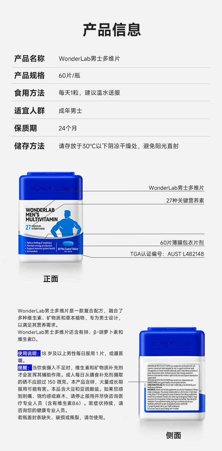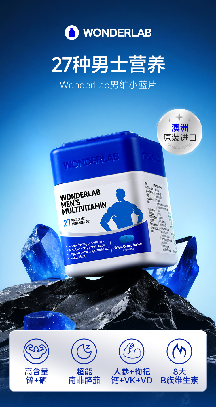 【宁波保税仓】万益蓝 WonderLab 男士复合维生素2.0 27种男士营养 舒压解疲精力爆棚