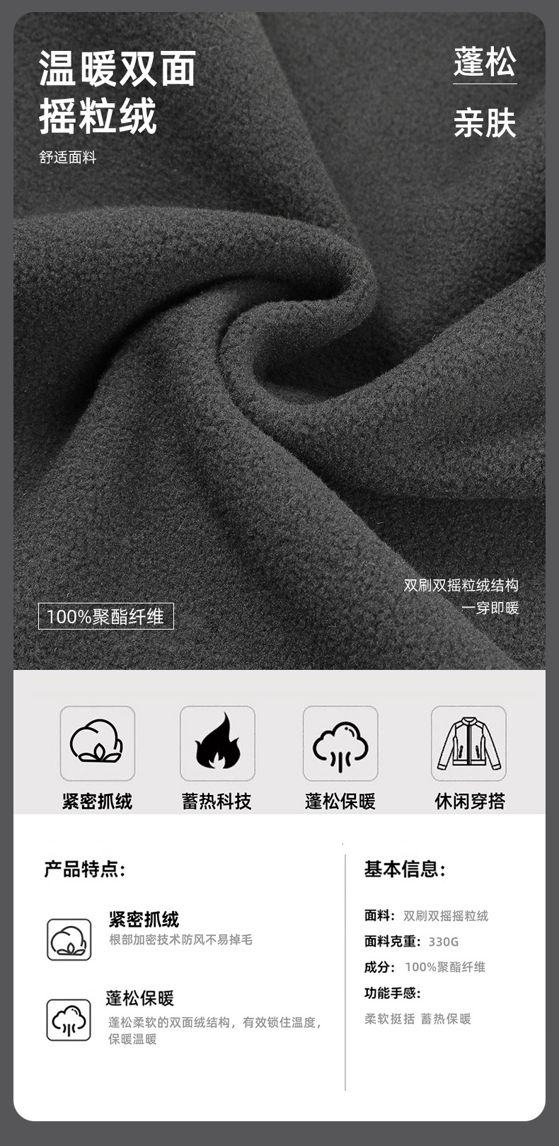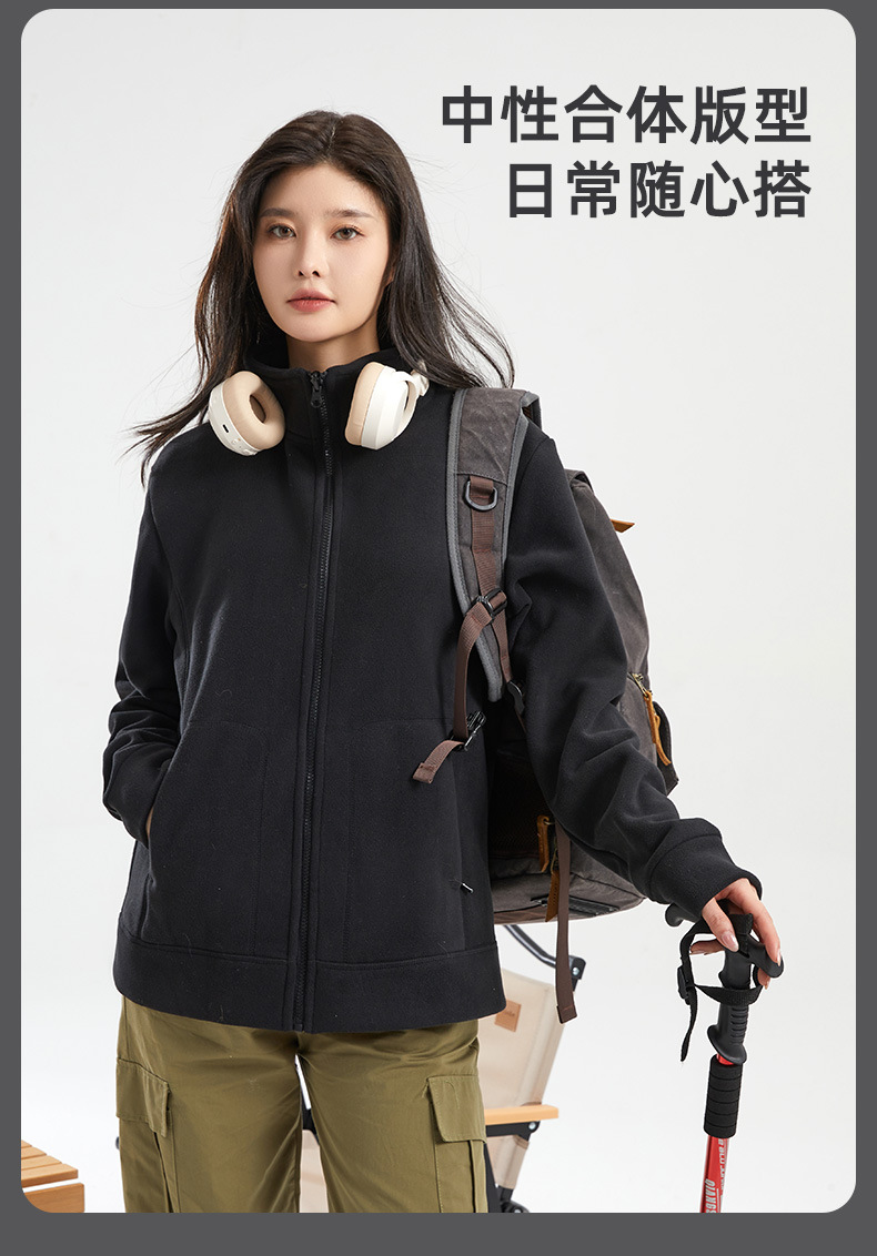丁摩摇粒绒外套男女同款秋冬加厚保暖立领双面运动户外抓绒上衣ALW330
