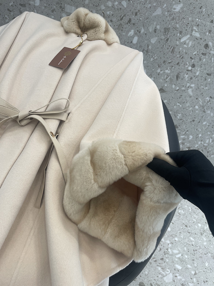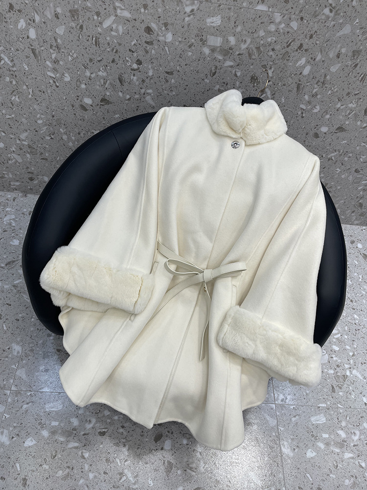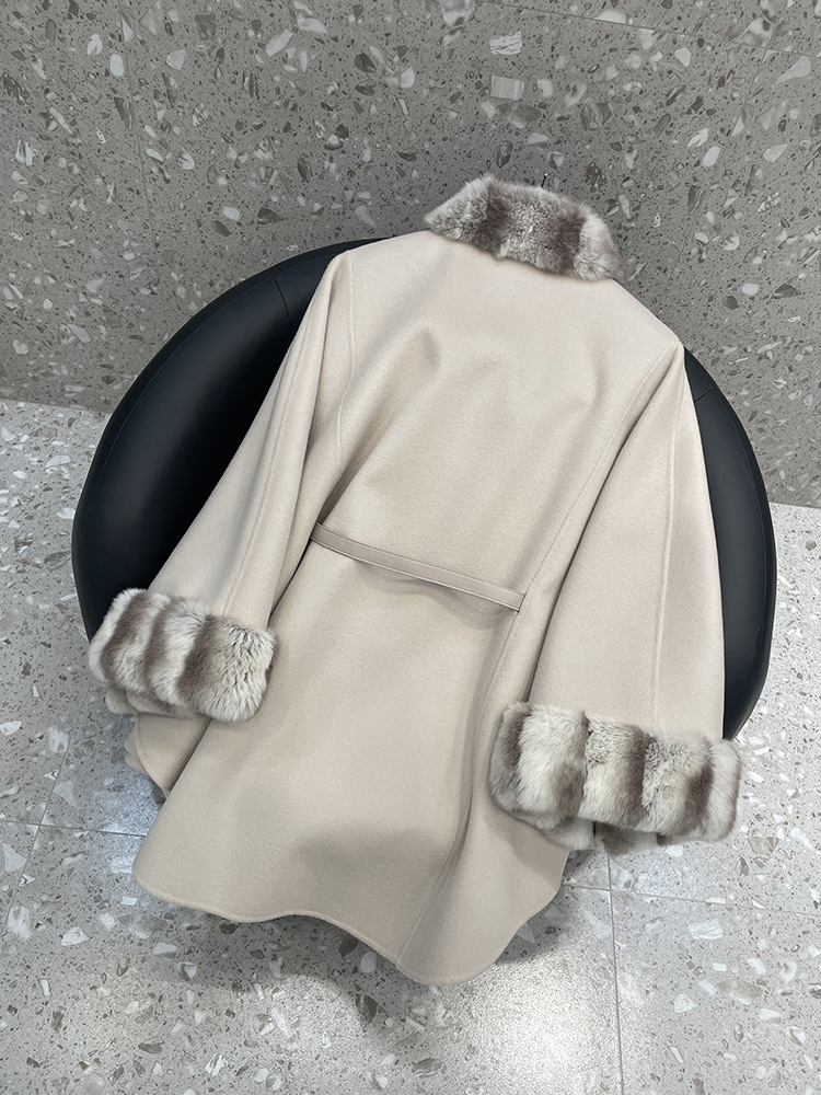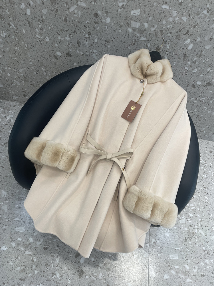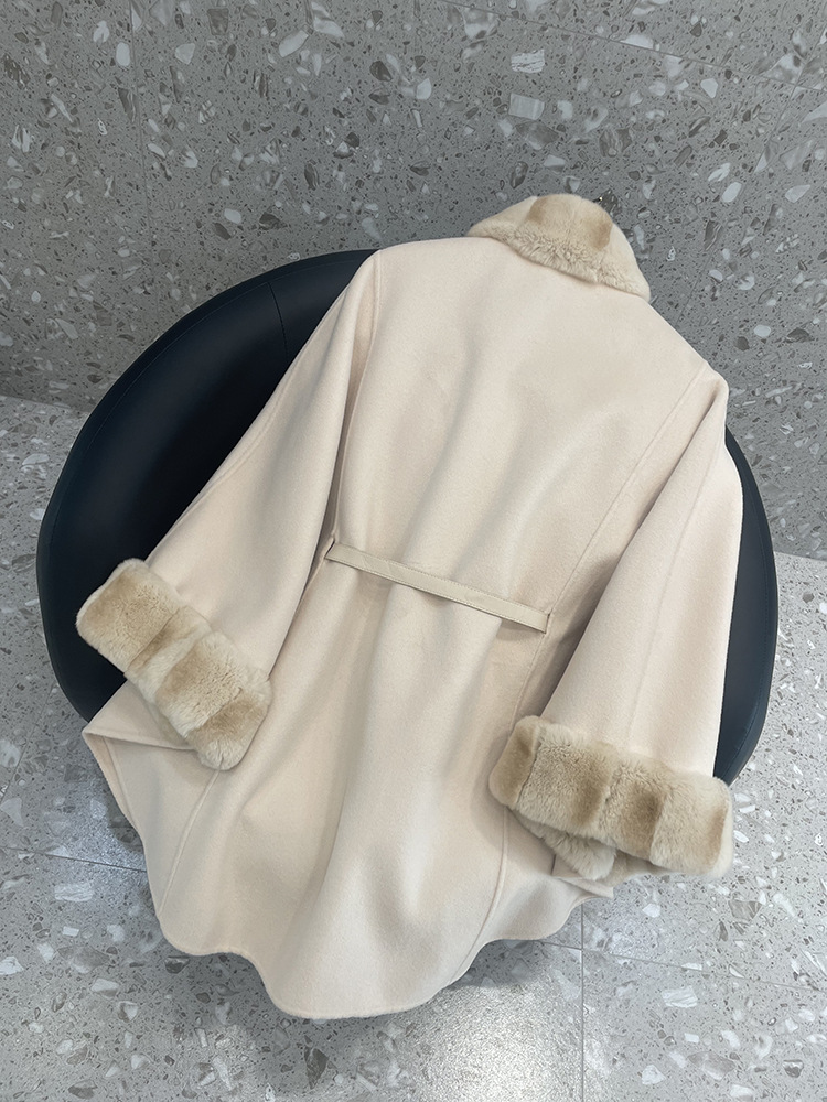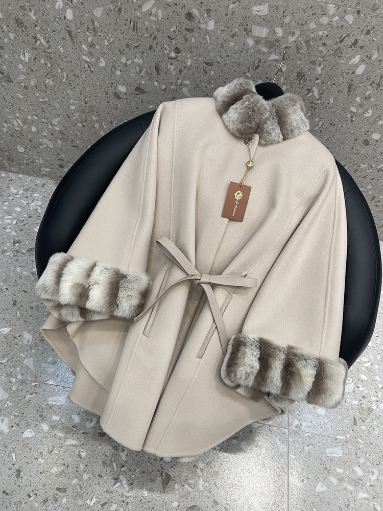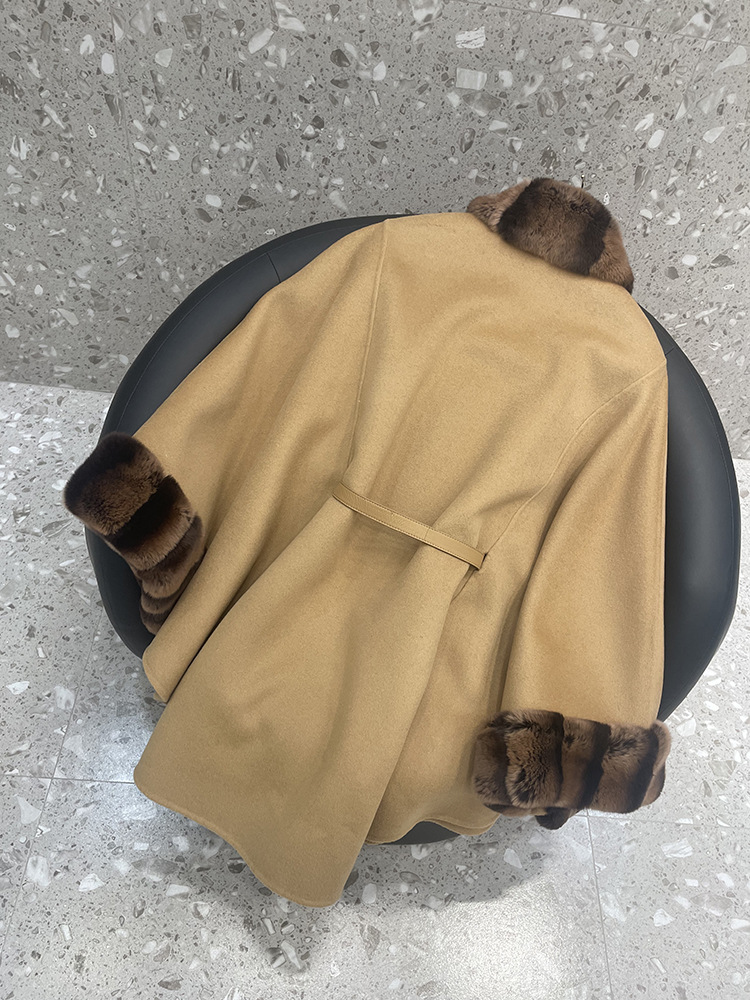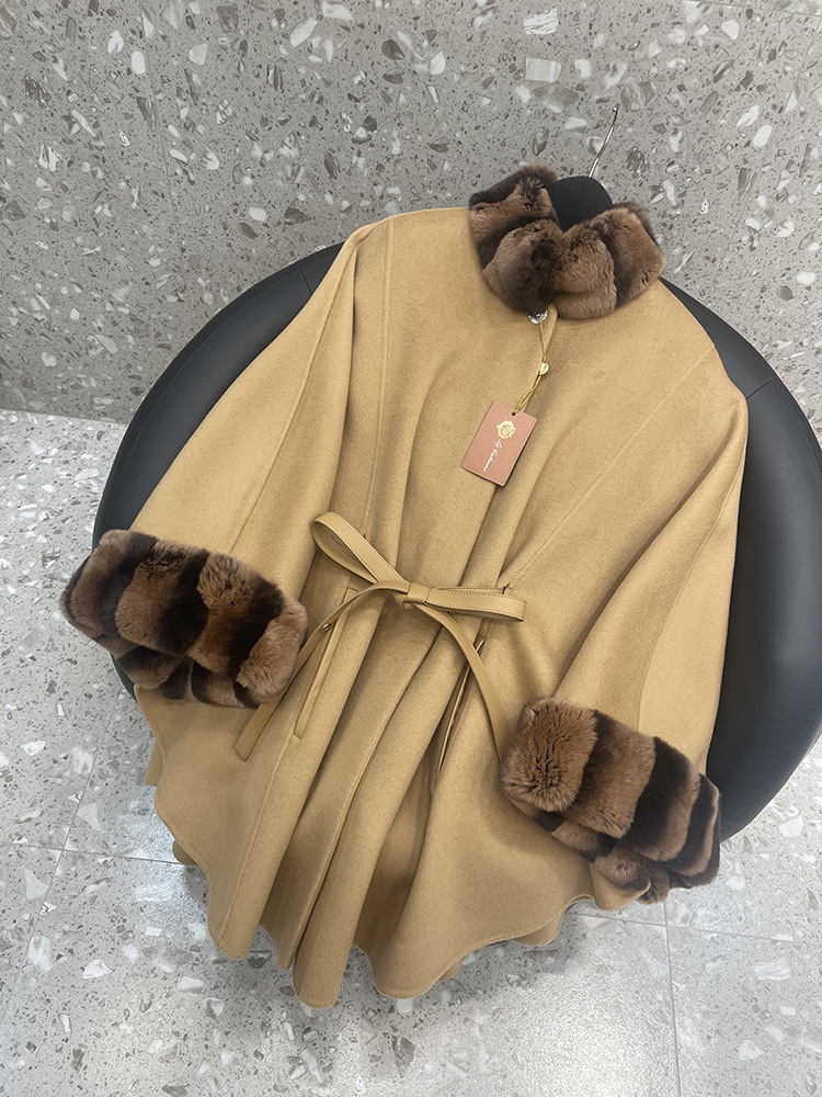 雀说LP同款赫本风鼻祖色山羊绒系带短款斗篷龙猫色秋冬大衣女外套ALW0810-1