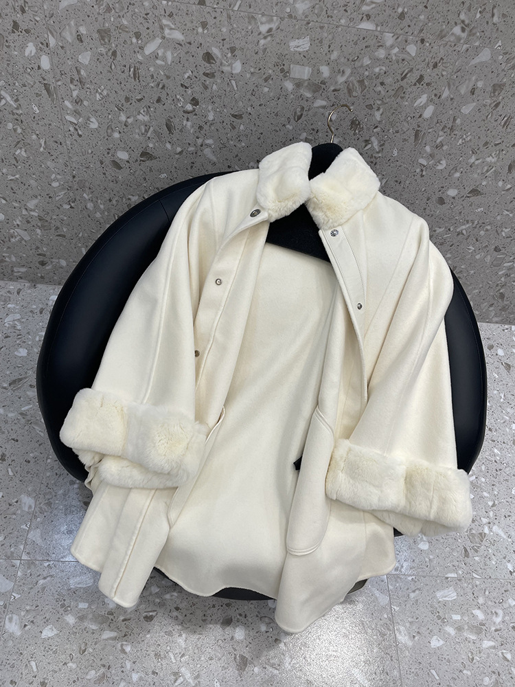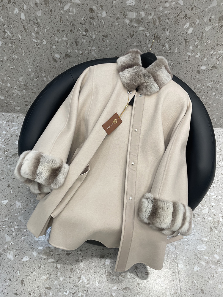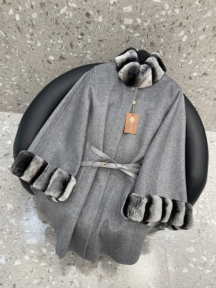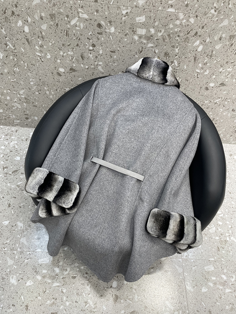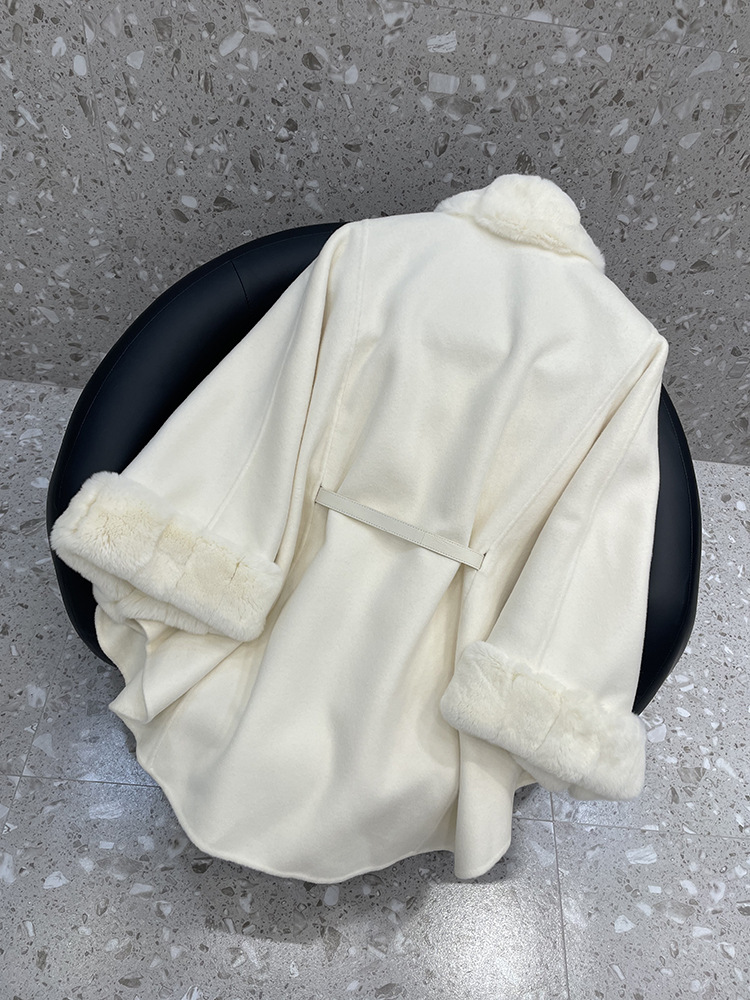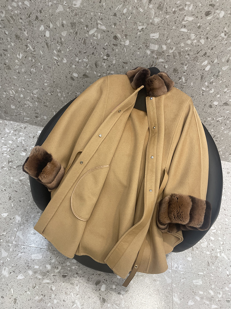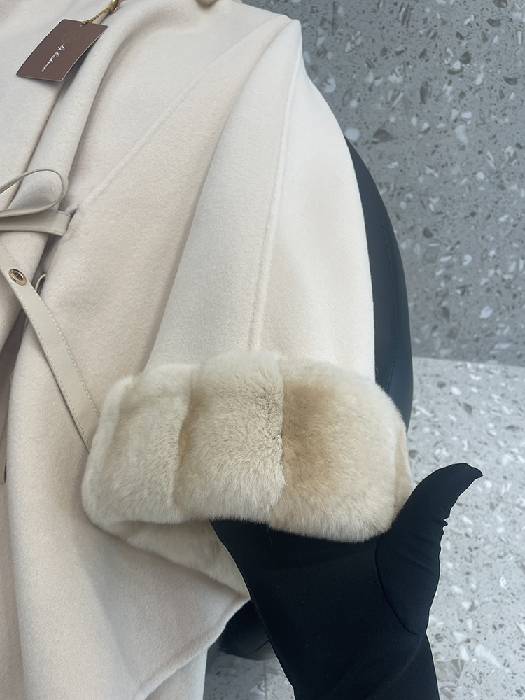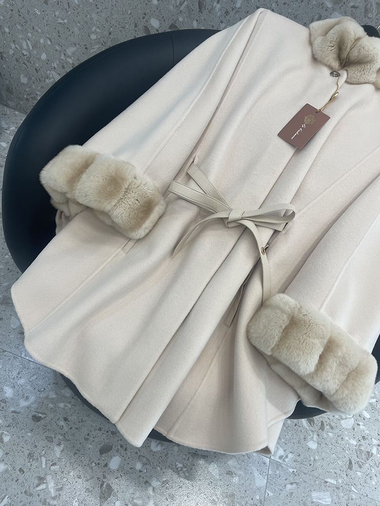 雀说LP同款赫本风鼻祖色山羊绒系带短款斗篷龙猫色秋冬大衣女外套ALW0810-1