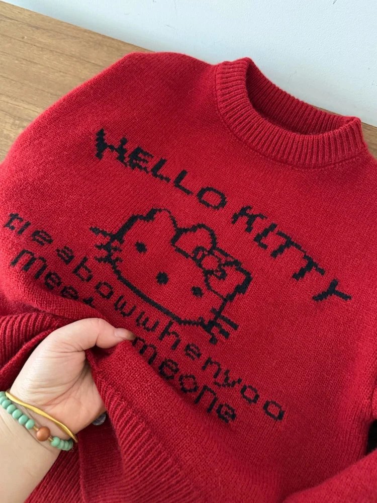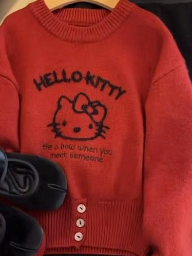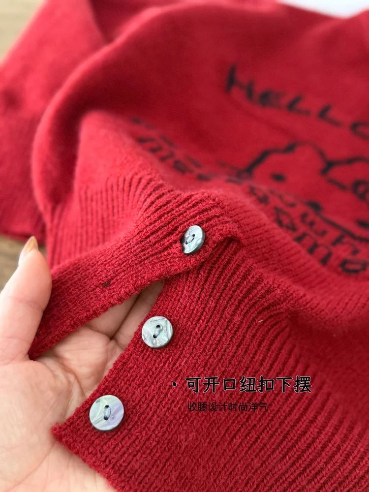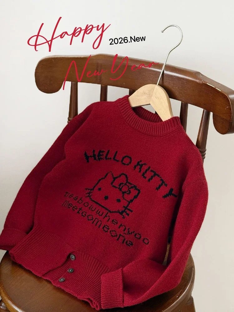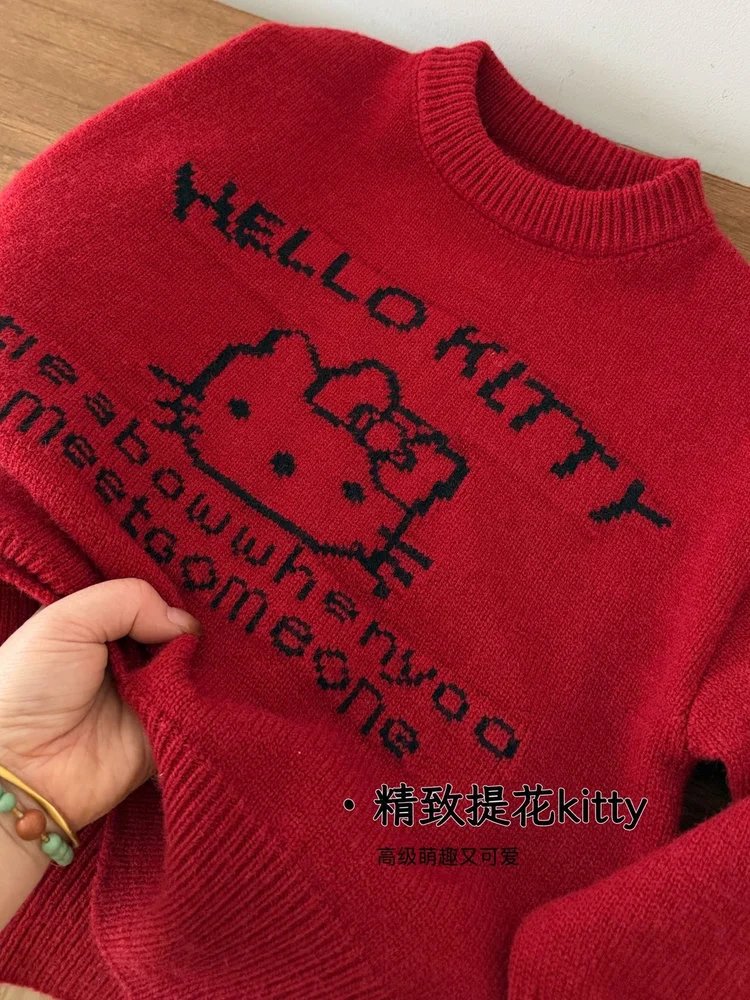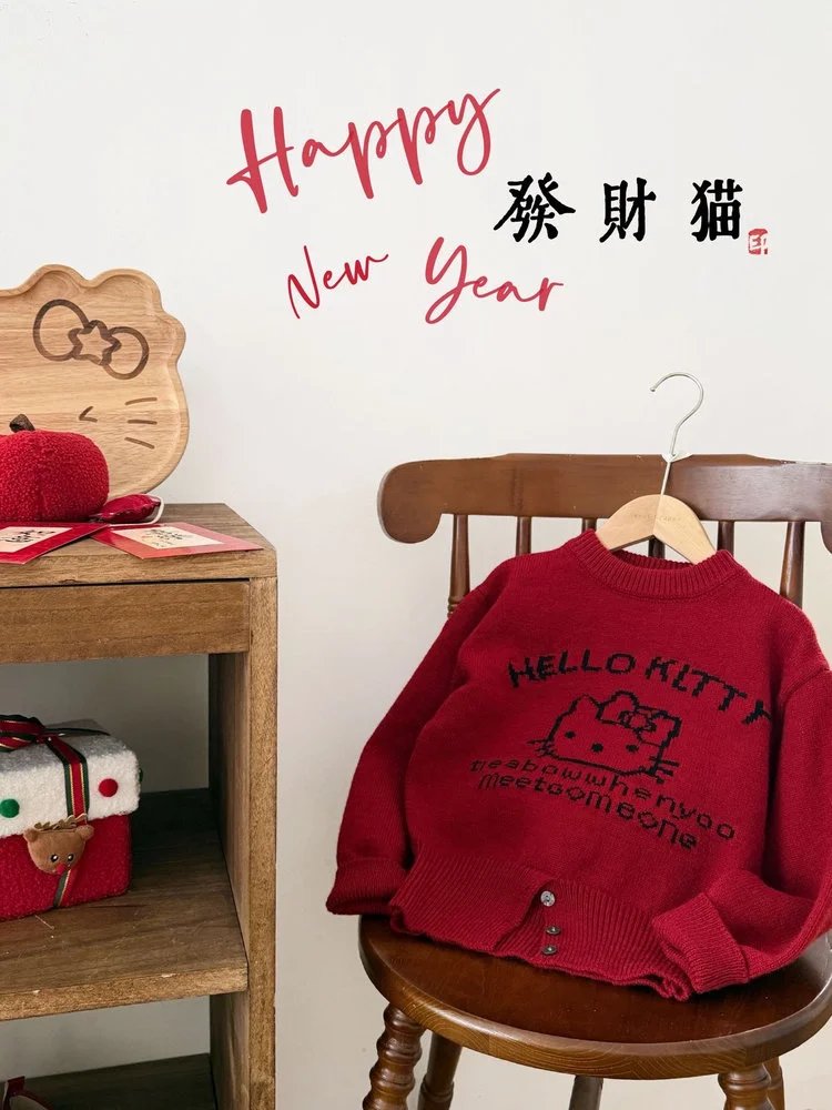 STT新年穿搭❗️【招cai猫】我的本命年限定新年氛围感毛衣❗️KT太懂少女心了,定制复古新年红,红色温柔又可爱,软糯亲肤,懒人穿搭