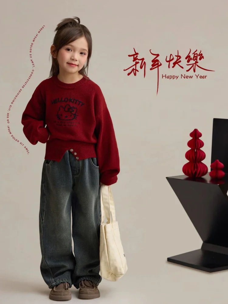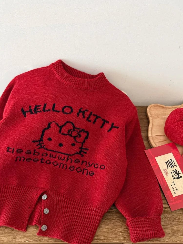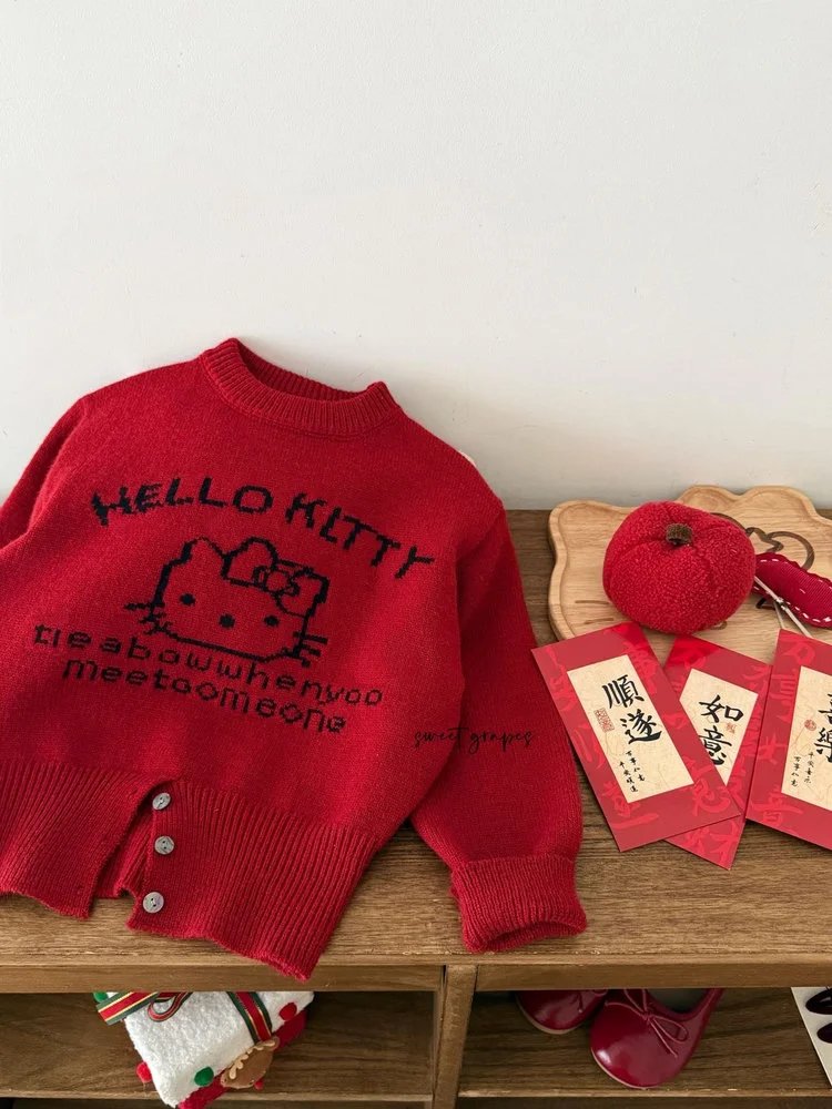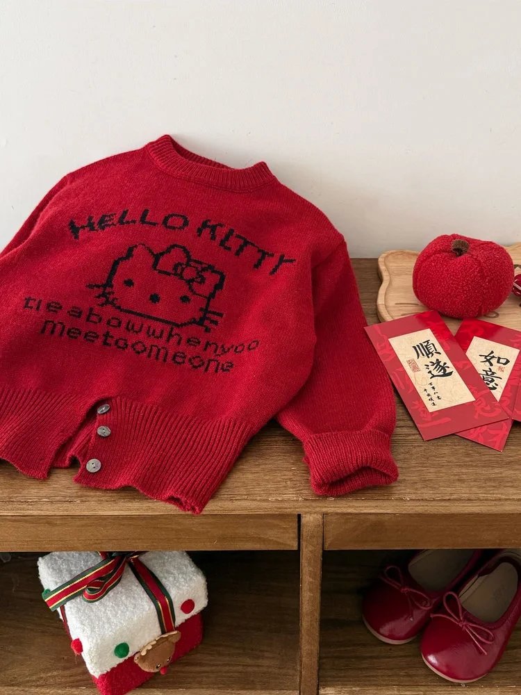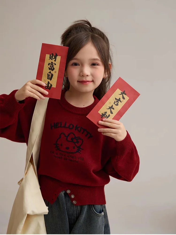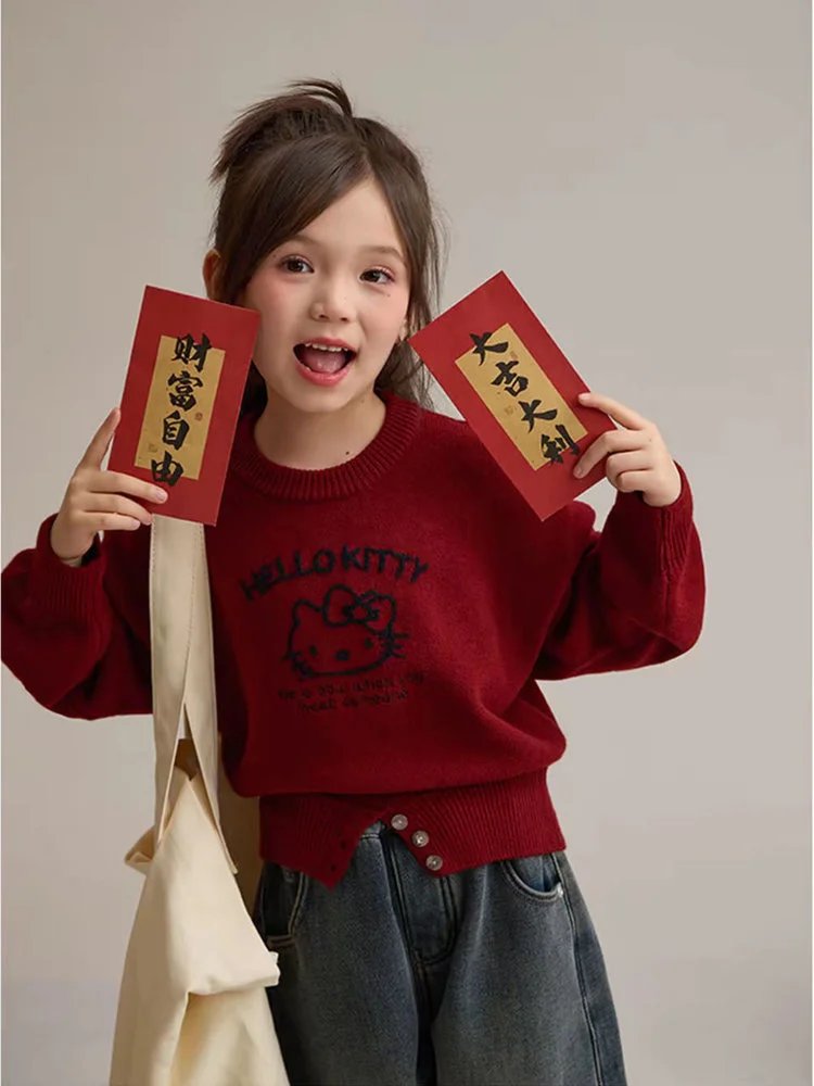 STT新年穿搭❗️【招cai猫】我的本命年限定新年氛围感毛衣❗️KT太懂少女心了,定制复古新年红,红色温柔又可爱,软糯亲肤,懒人穿搭