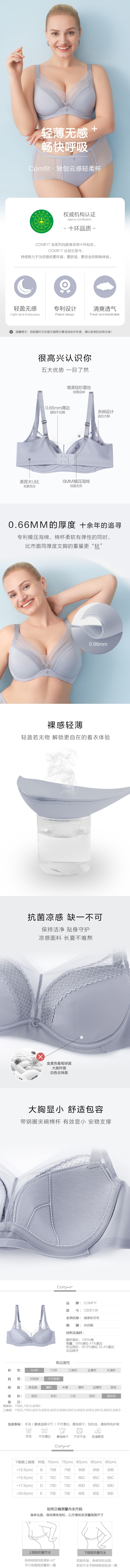 安莉芳Comfit有钢圈薄杯大胸显小纯棉杯里抑菌大码文胸罩CB00136