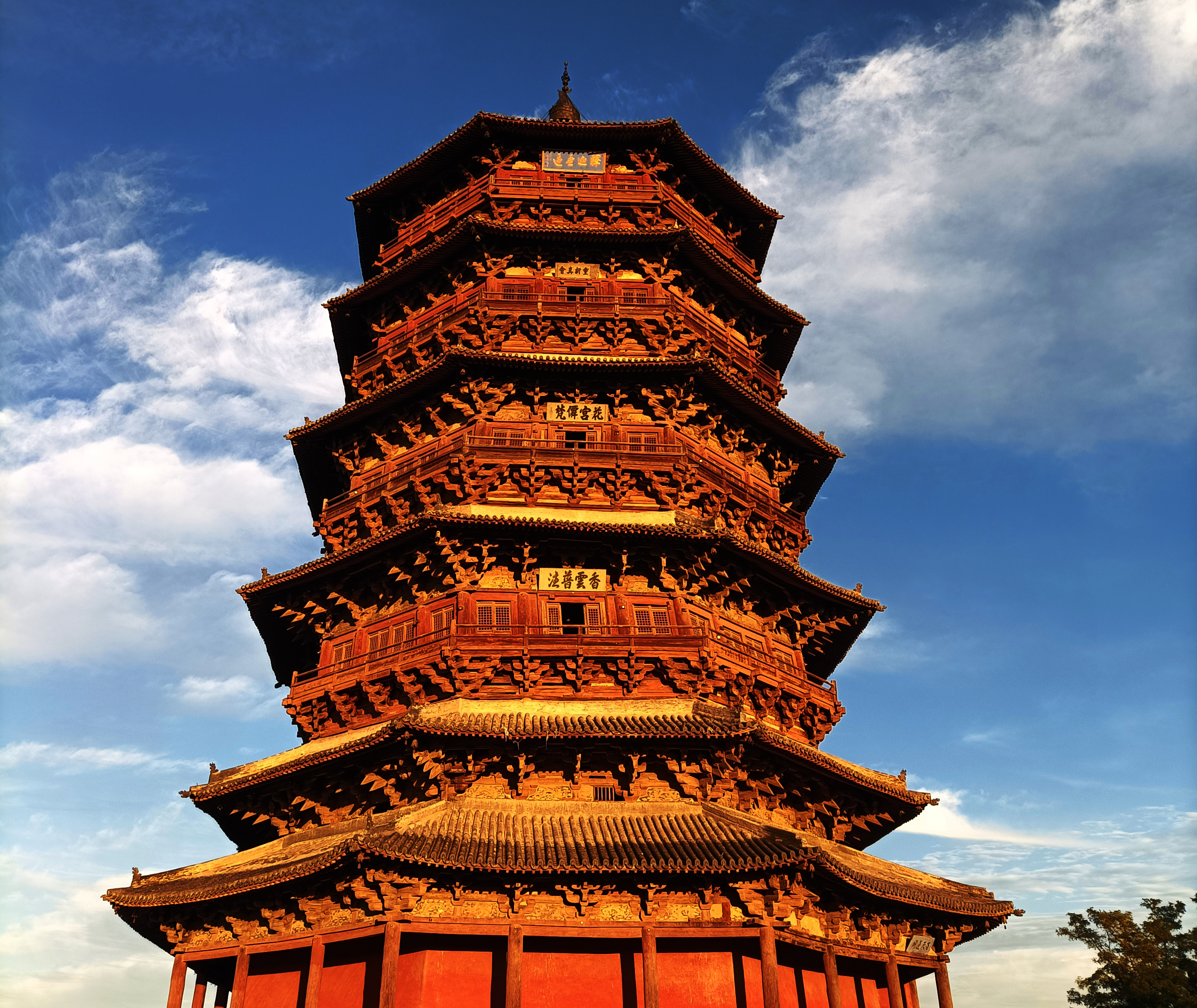 3.应县木塔:世界三大奇塔之一,纯木古建,结构光影绝佳。