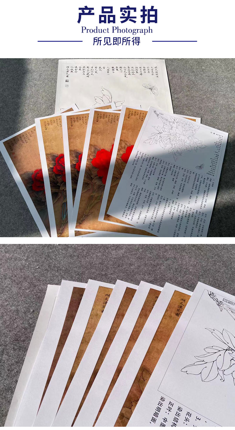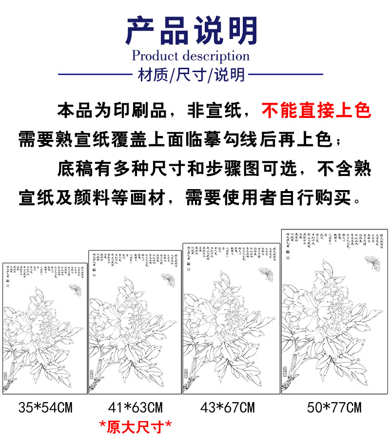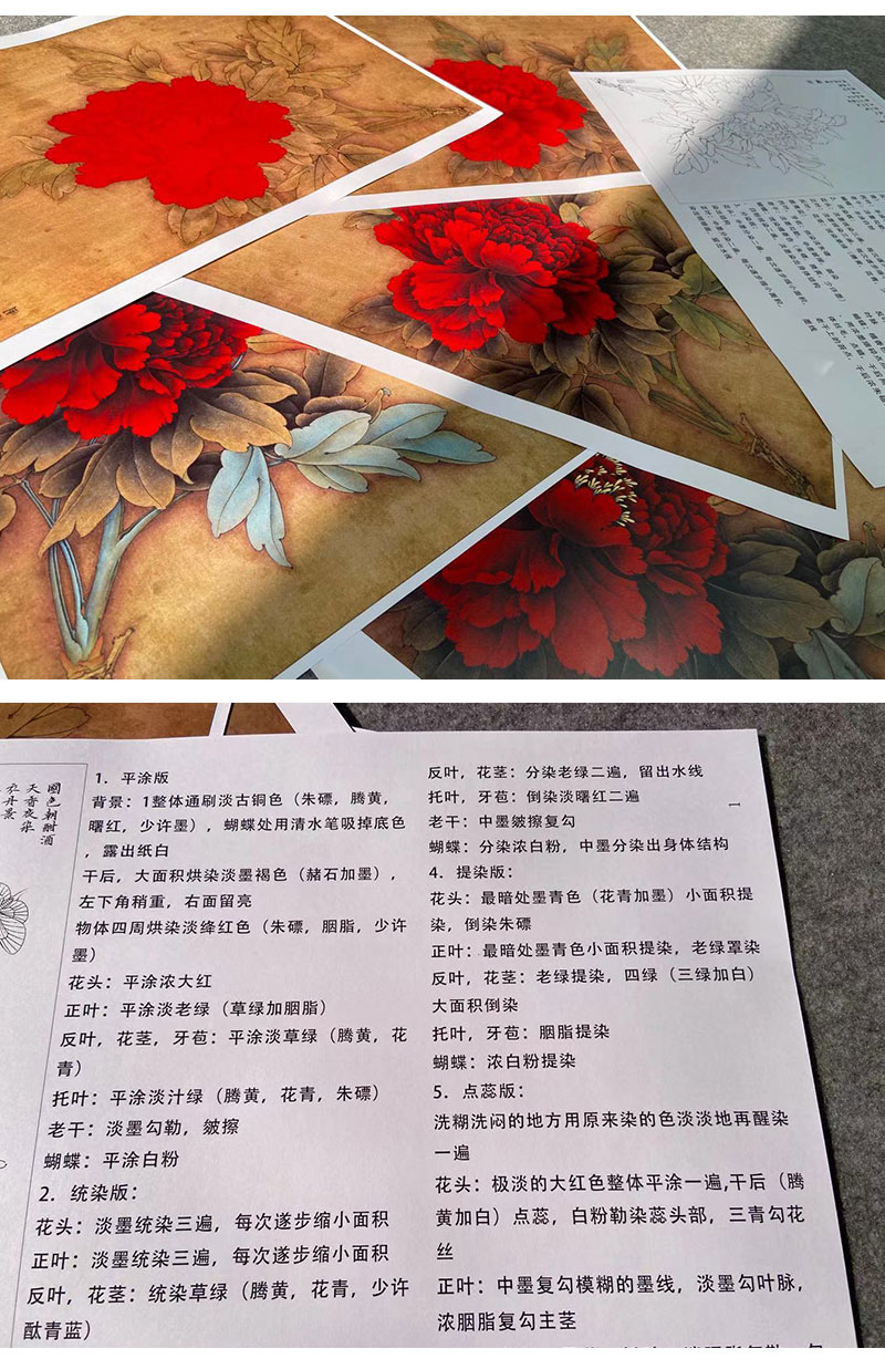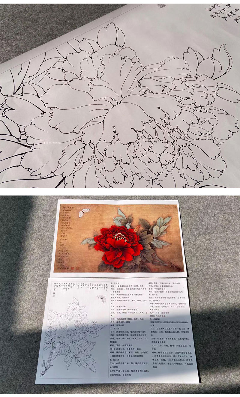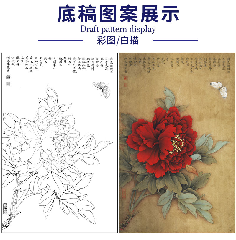 【有步骤、大彩图】李晓明工笔画白描底稿《王红白粉蝶》牡丹初学者临摹花鸟线稿KD18