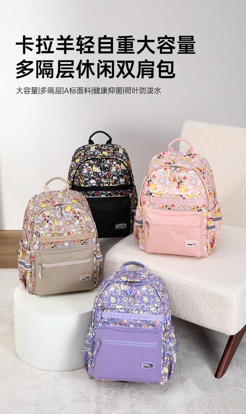卡拉羊轻便休闲大容量学生书包简约卡通小清新超轻双肩包羊羊乐园CX5546