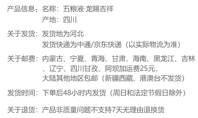 ②如遇酒水破损,请签收24小时内提供问题商品和快递面单高清照片,联系售后,根据酒水价格按比例赔付,严重破损补发;