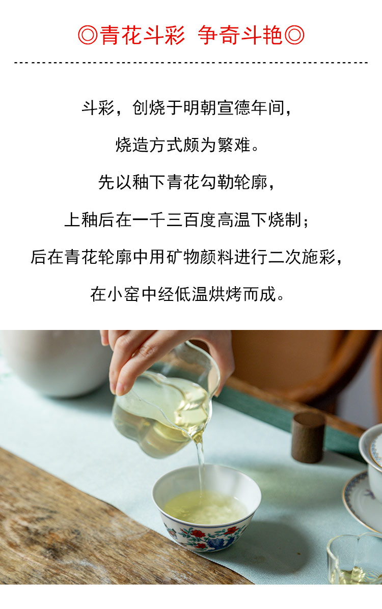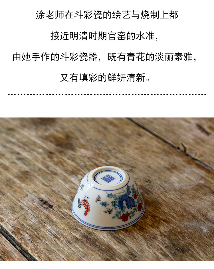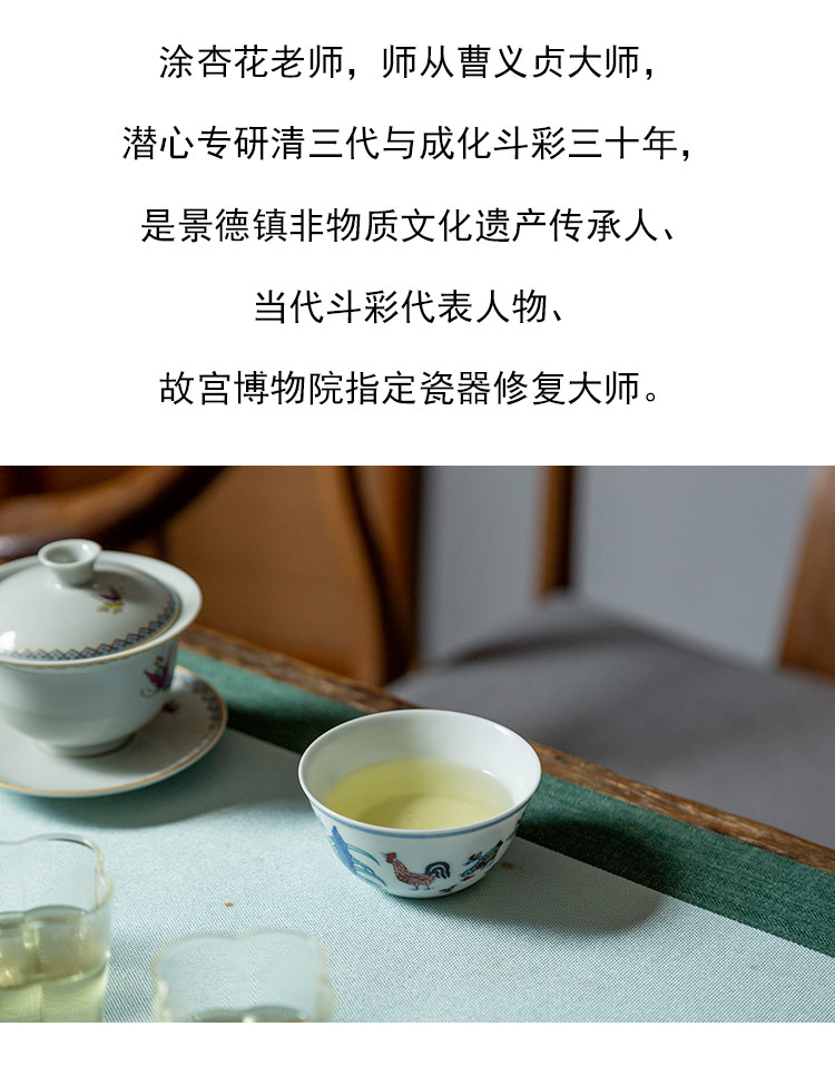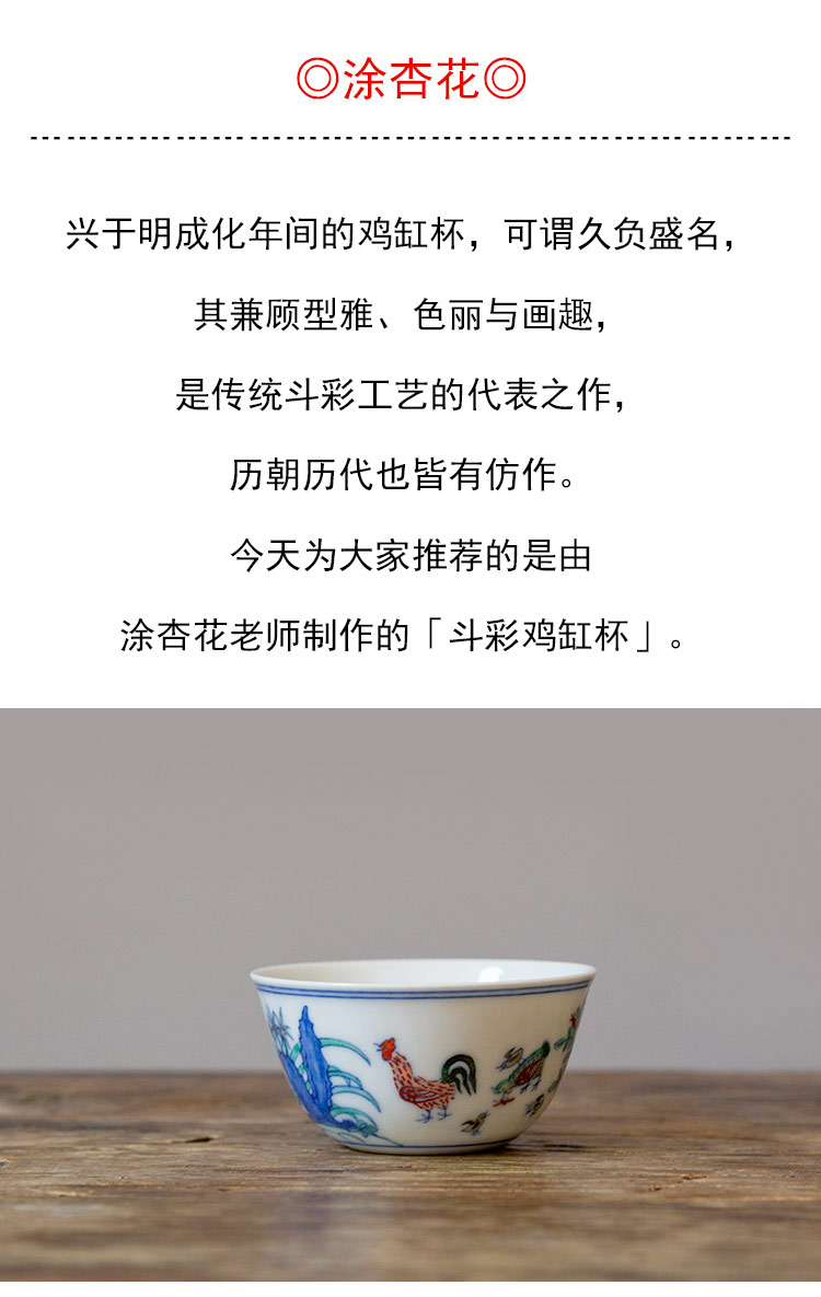 茶香记 涂杏花 斗彩鸡缸杯 经典杯型 青花斗彩 清丽淡雅 主人杯