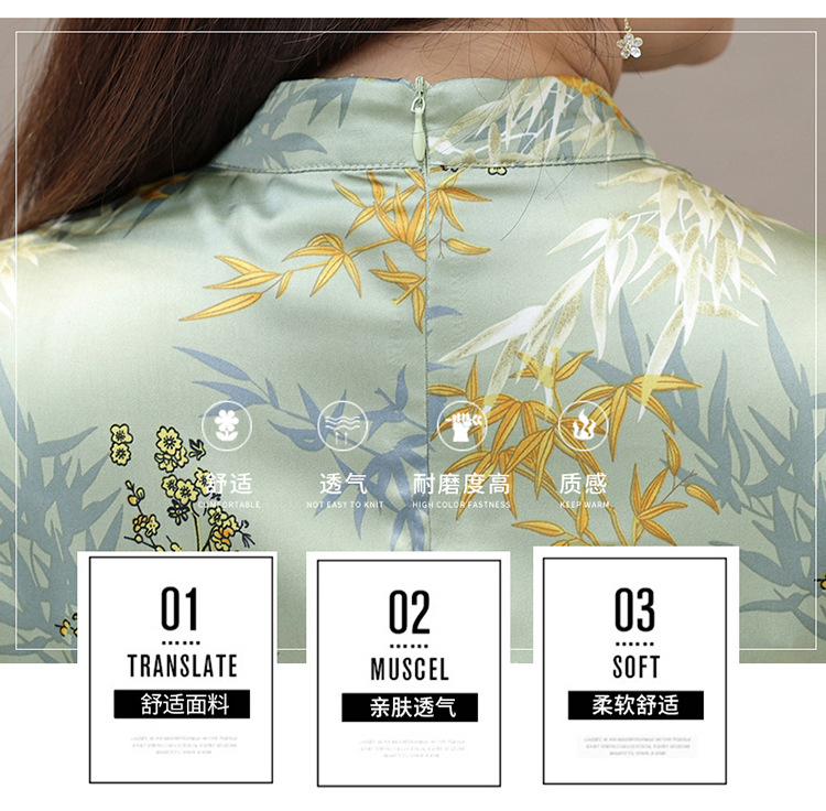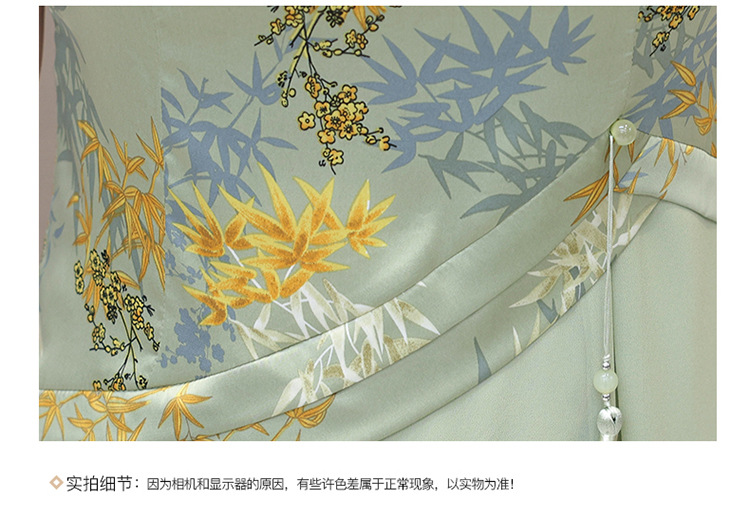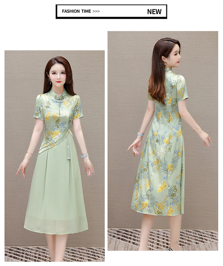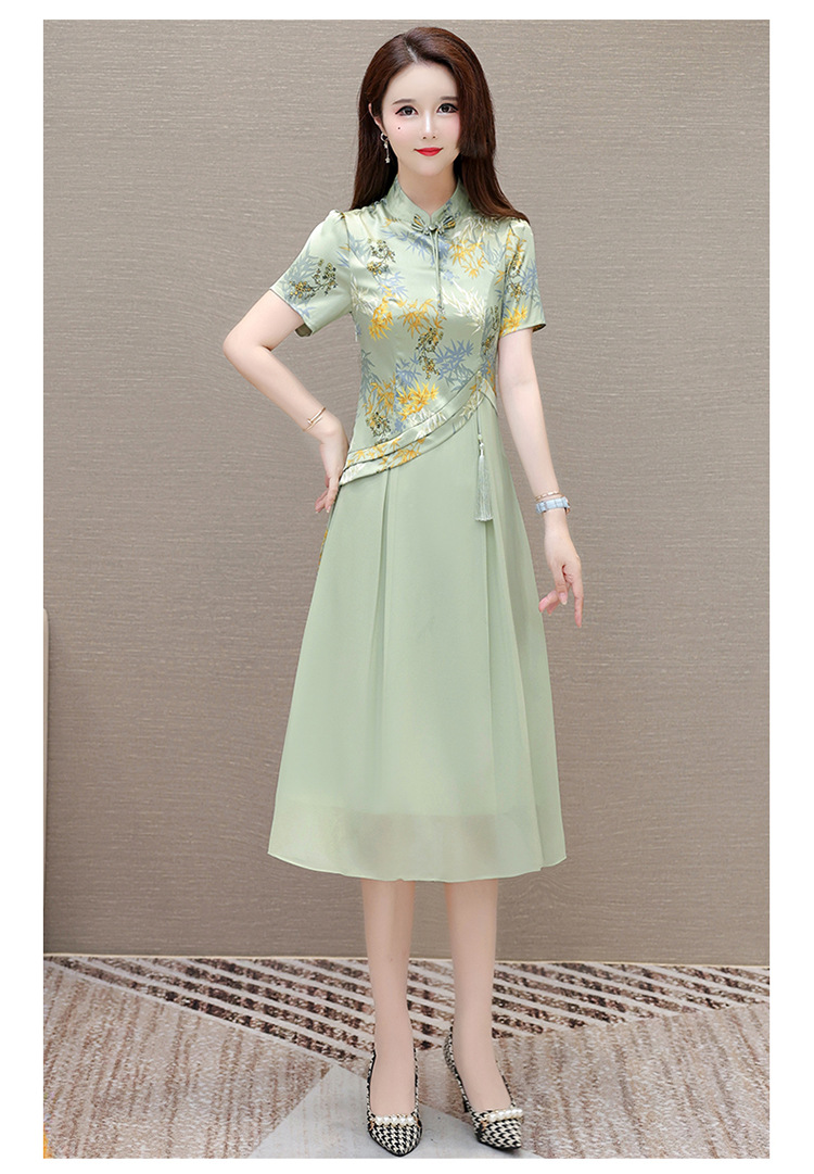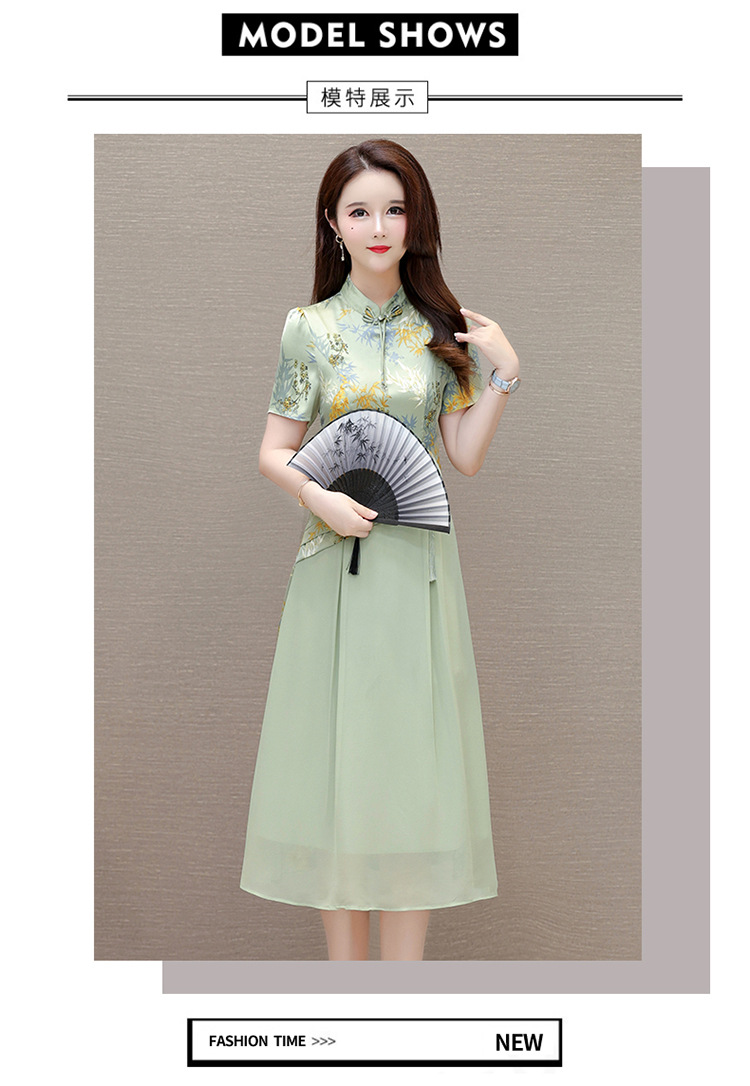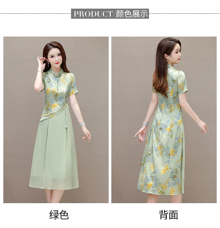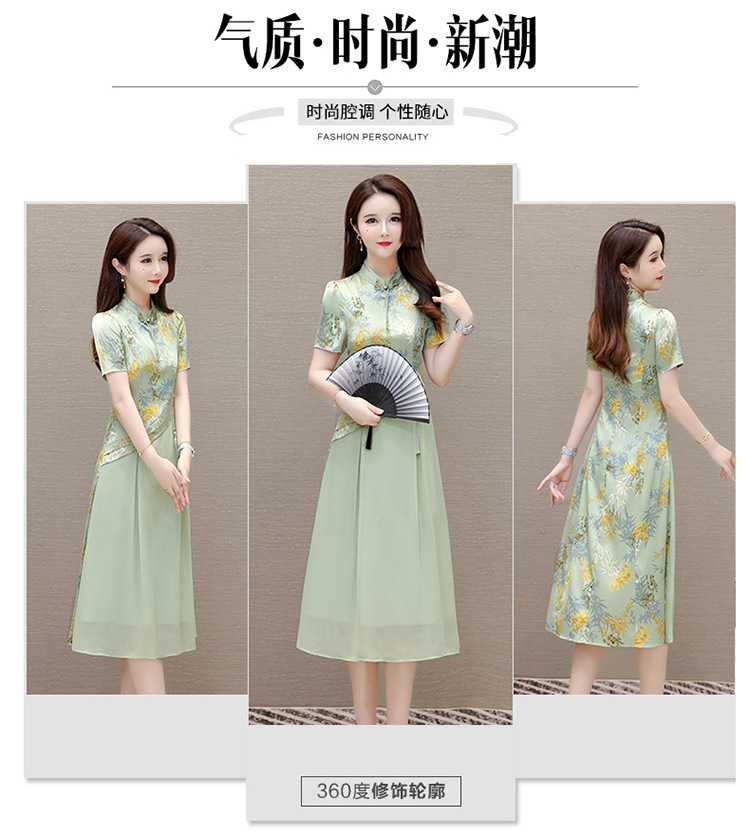 QYM SL28159中式连衣裙复古改良旗袍裙假两件拼结时尚印花裙