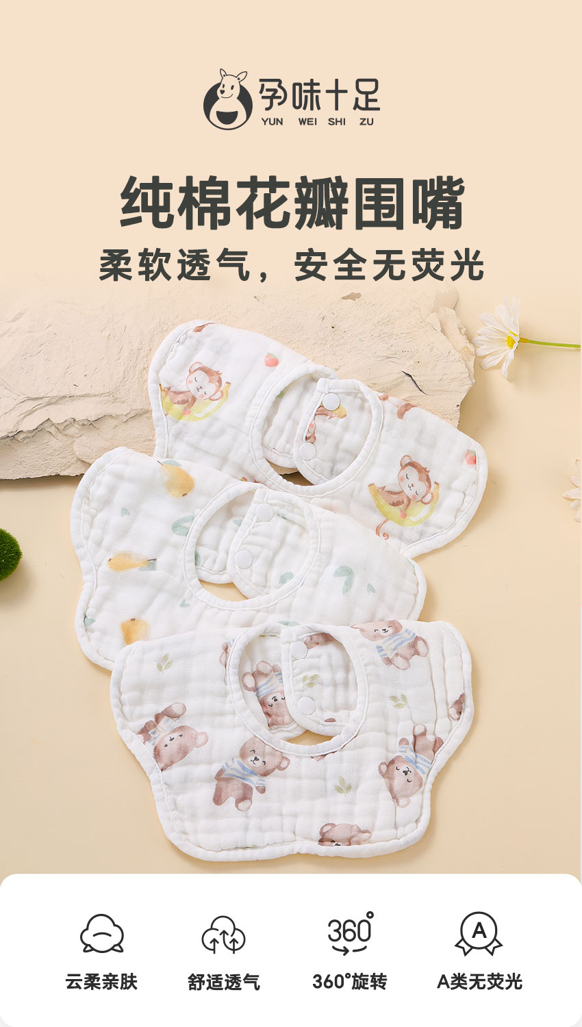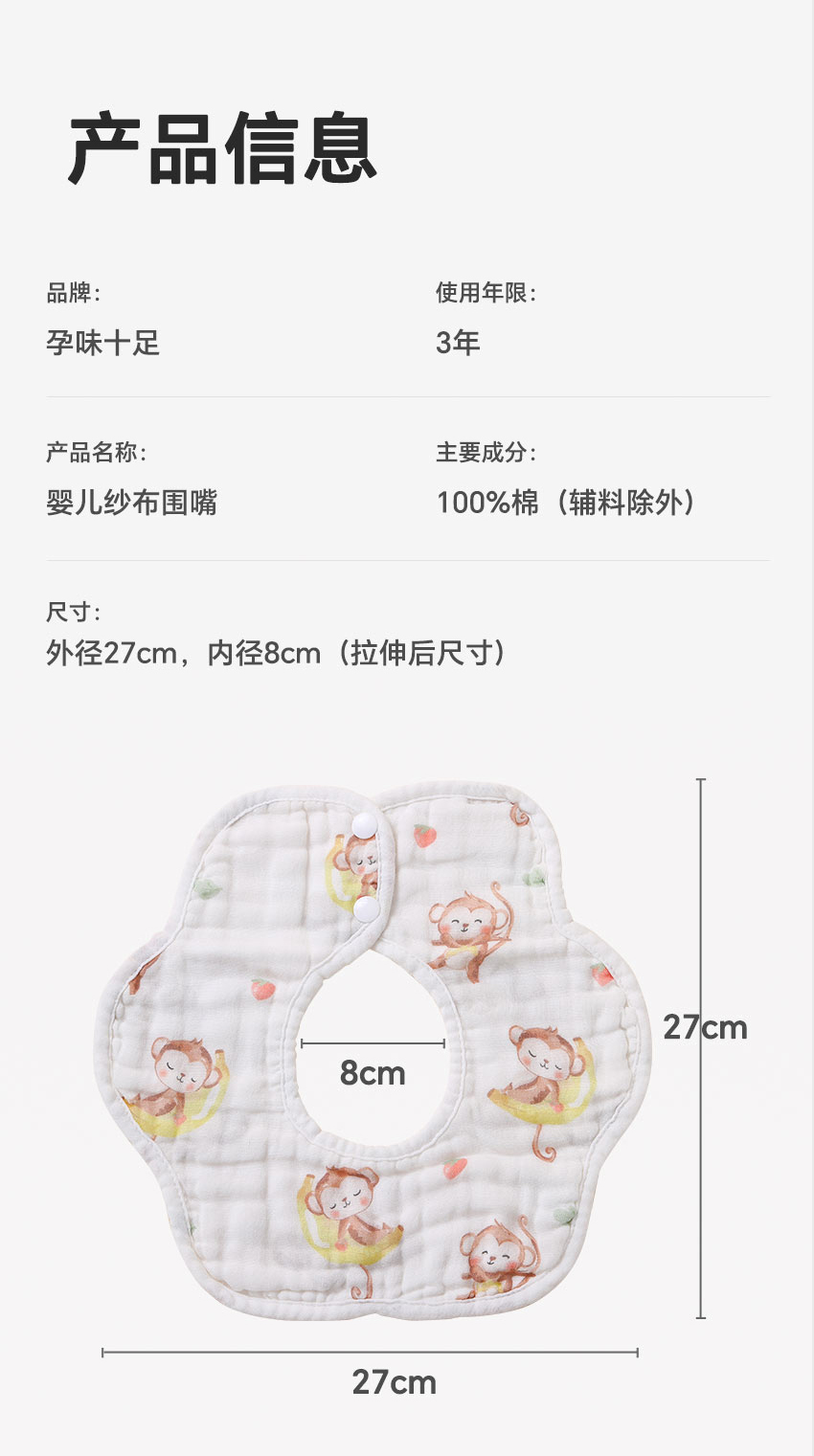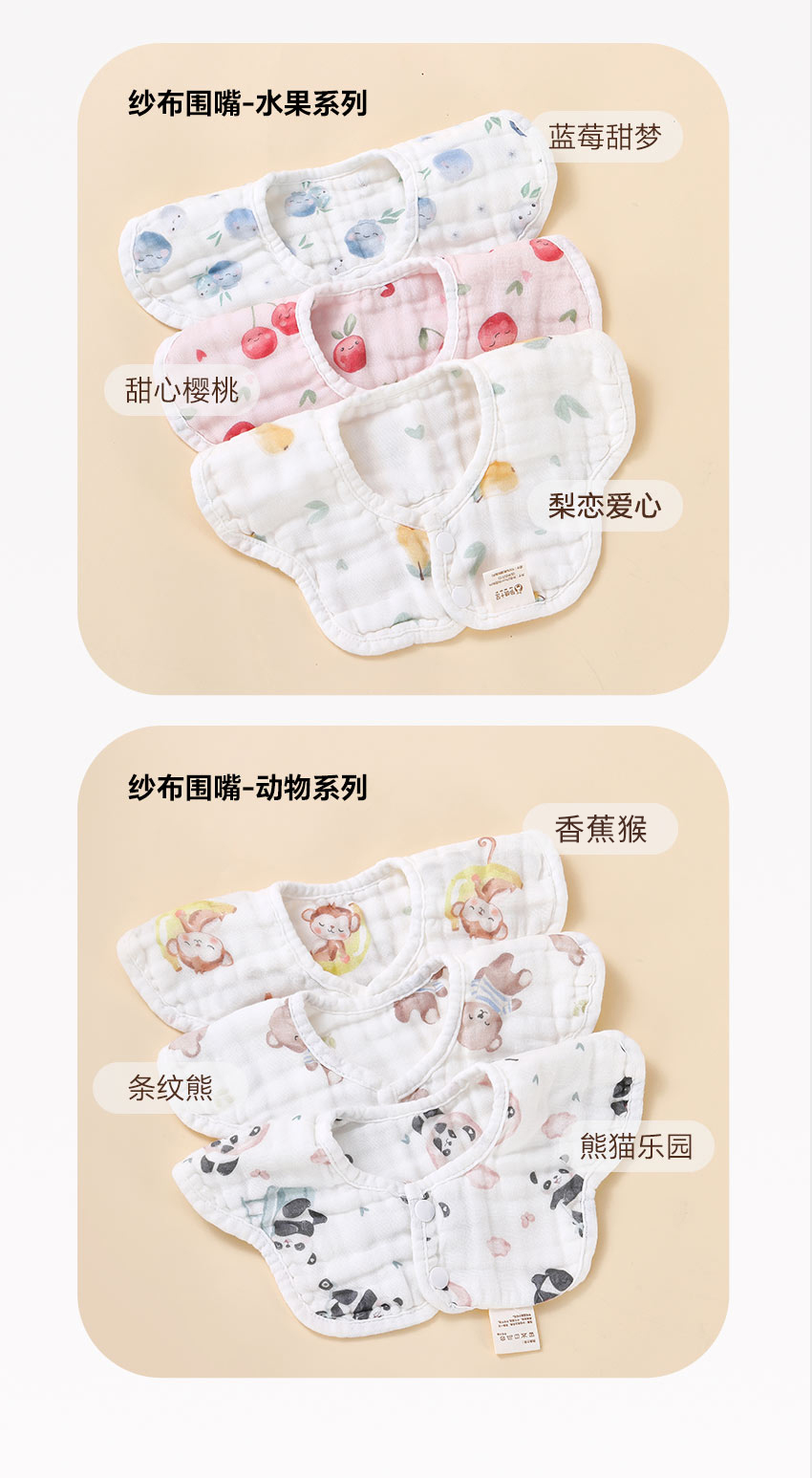 【品牌自营】孕味十足新生儿围嘴口水巾宝宝纱布防水围兜饭兜 0-3-6月1-2岁