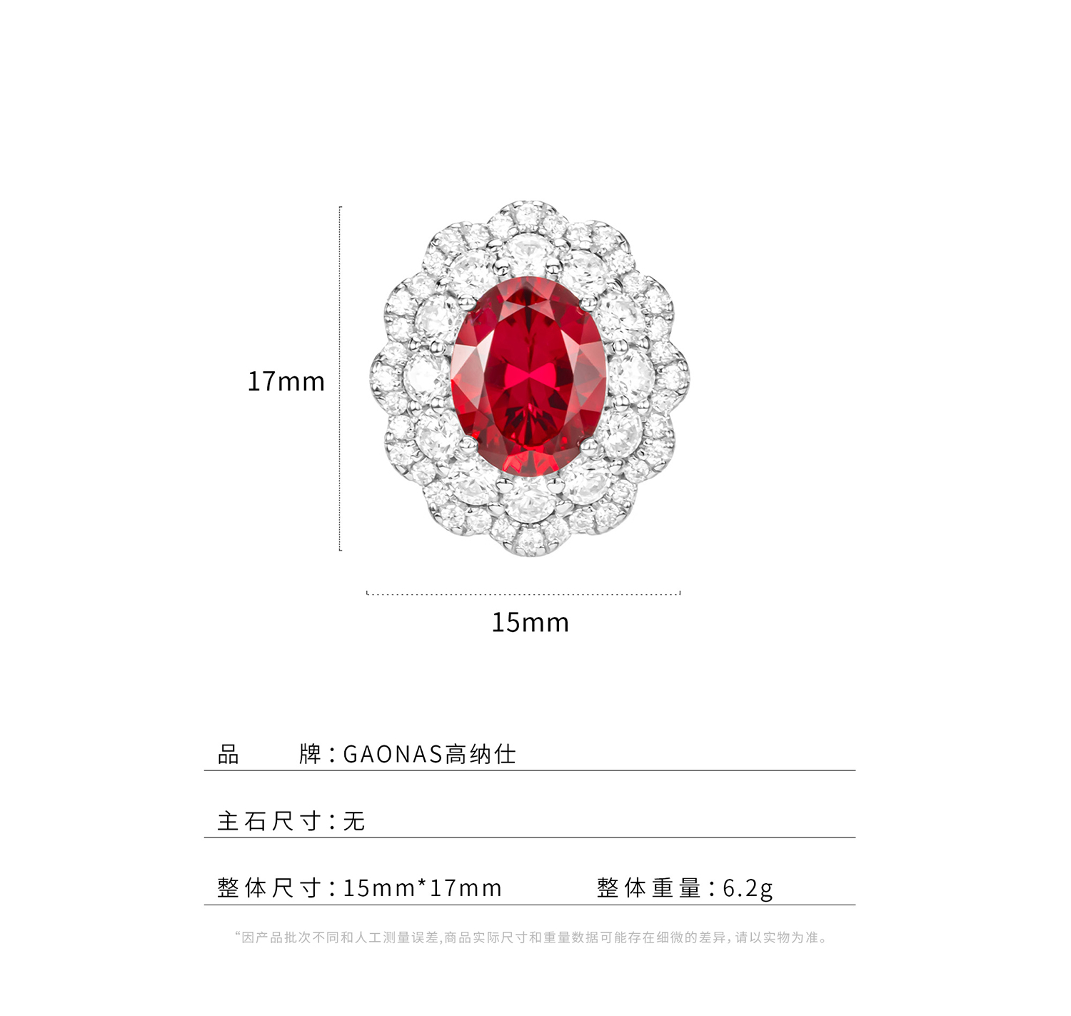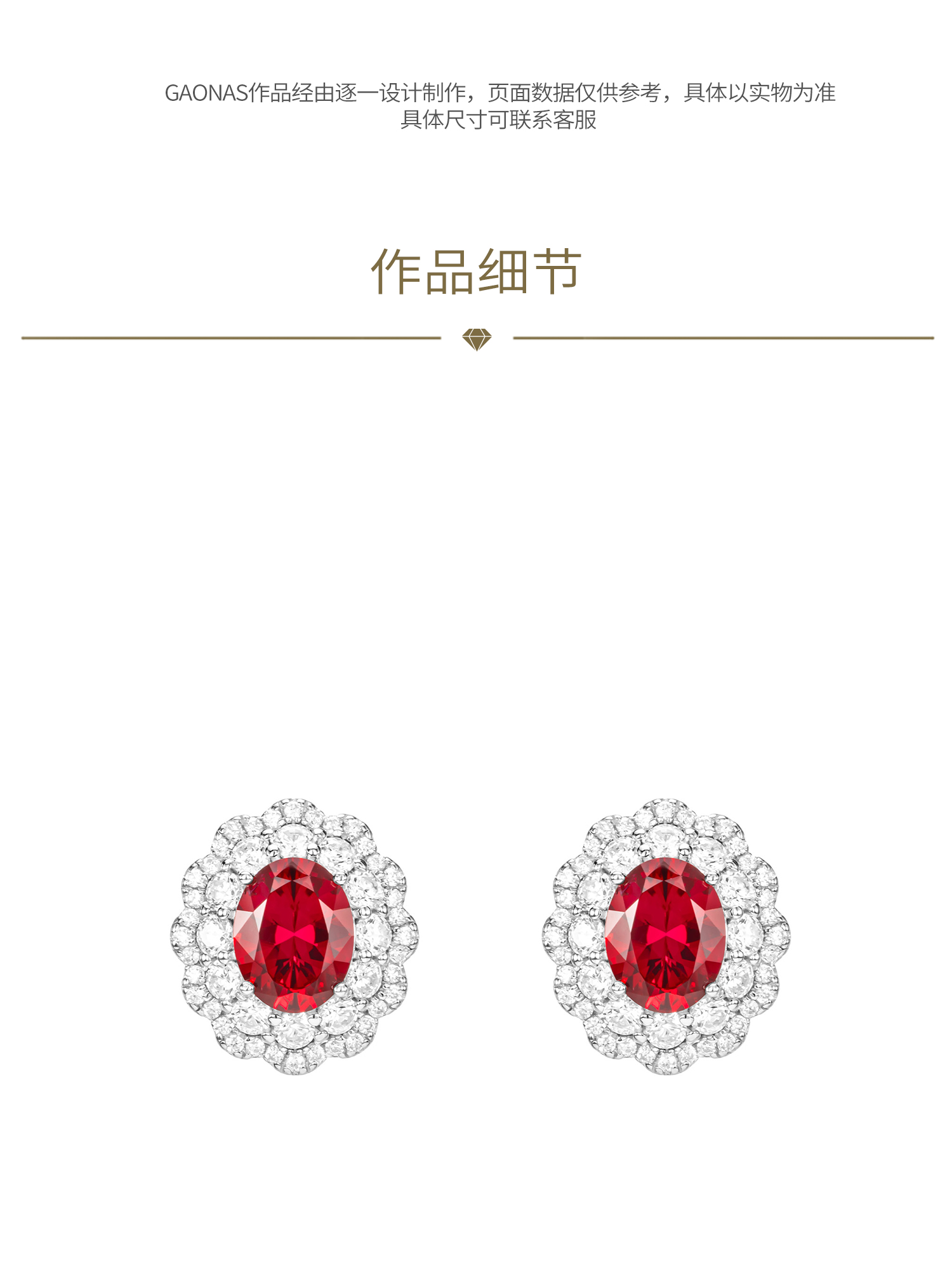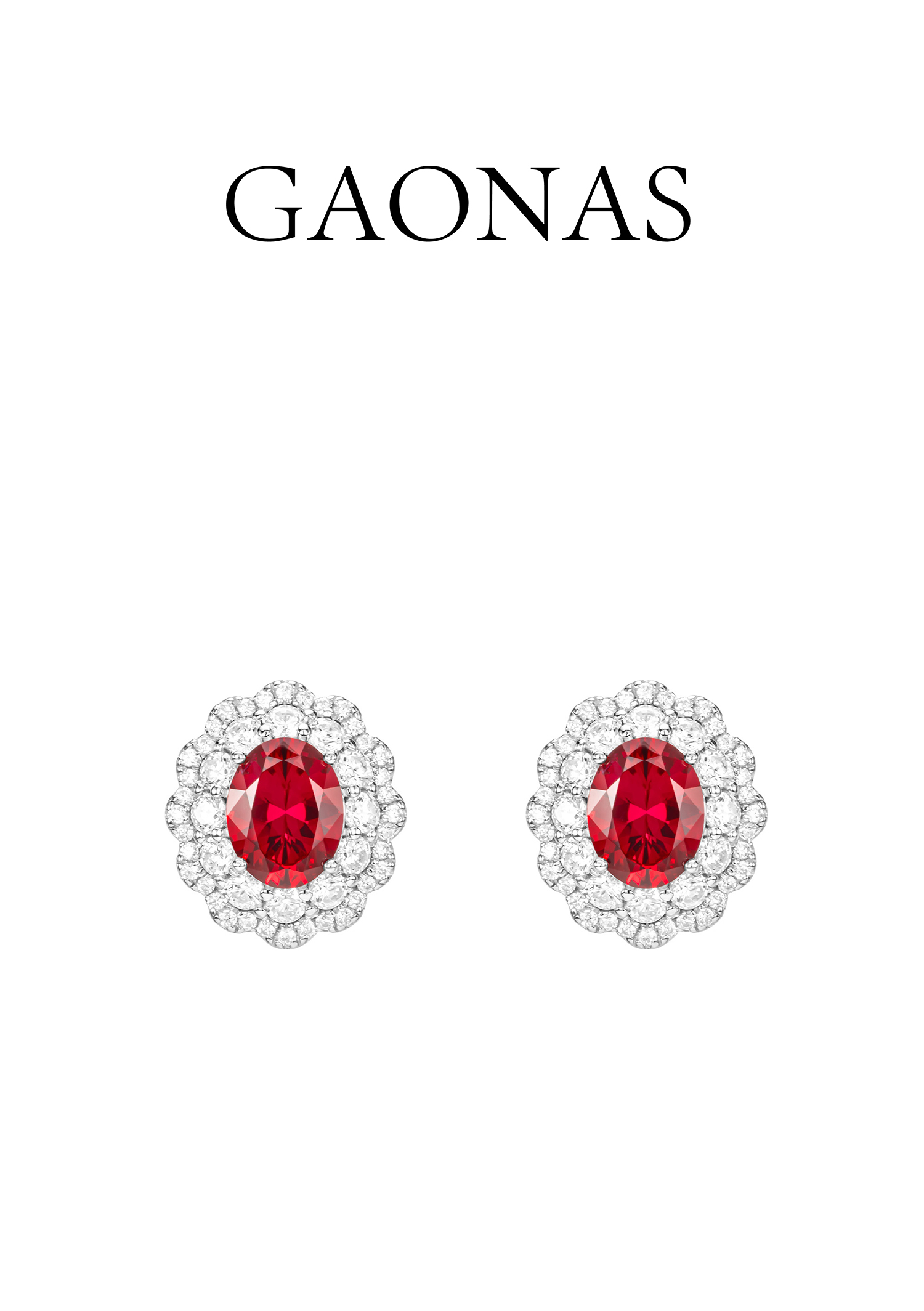 GAONAS 贵气经典红色双环花耳钉11802ER