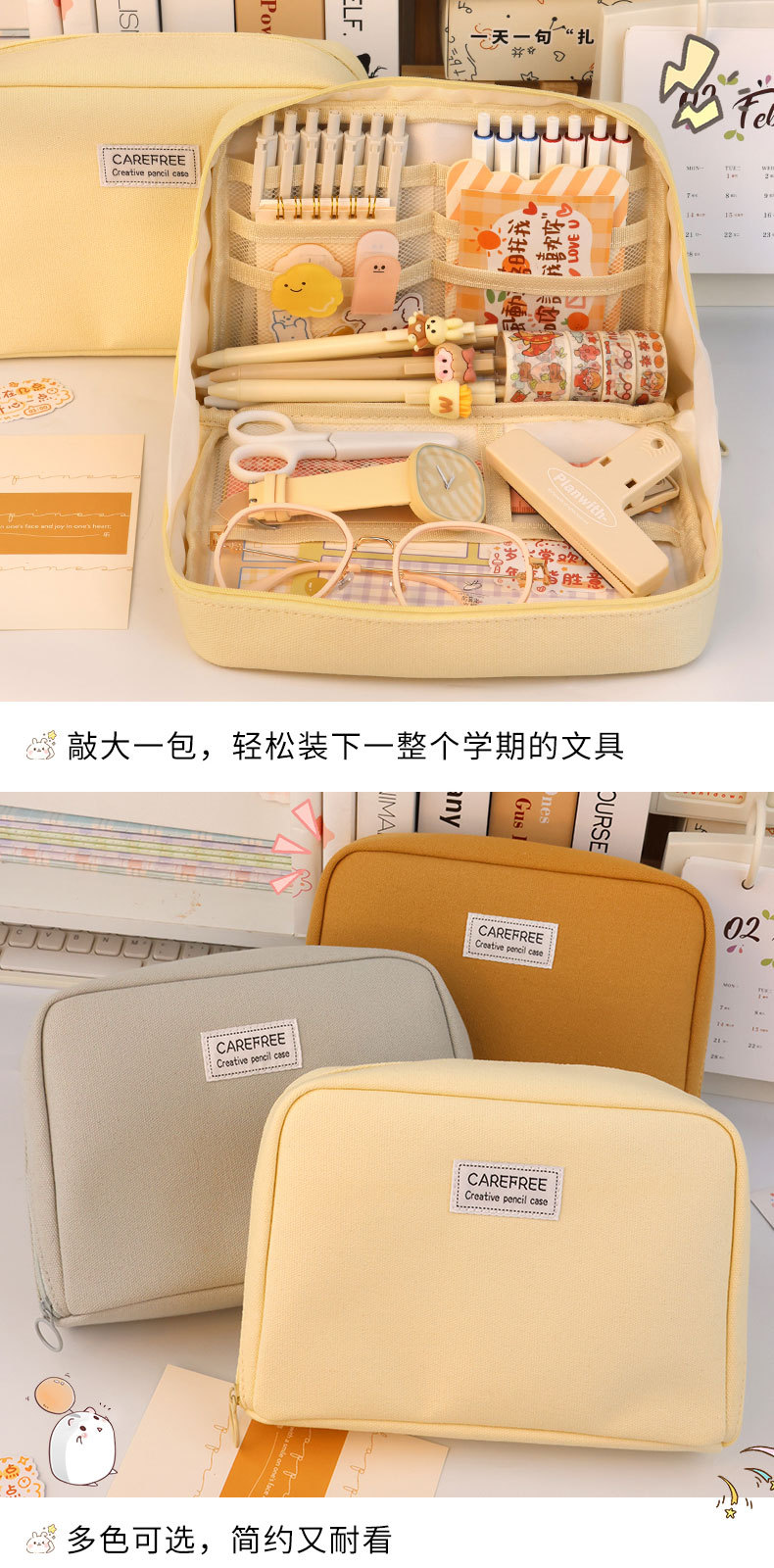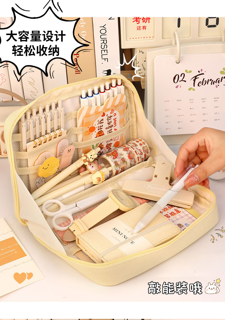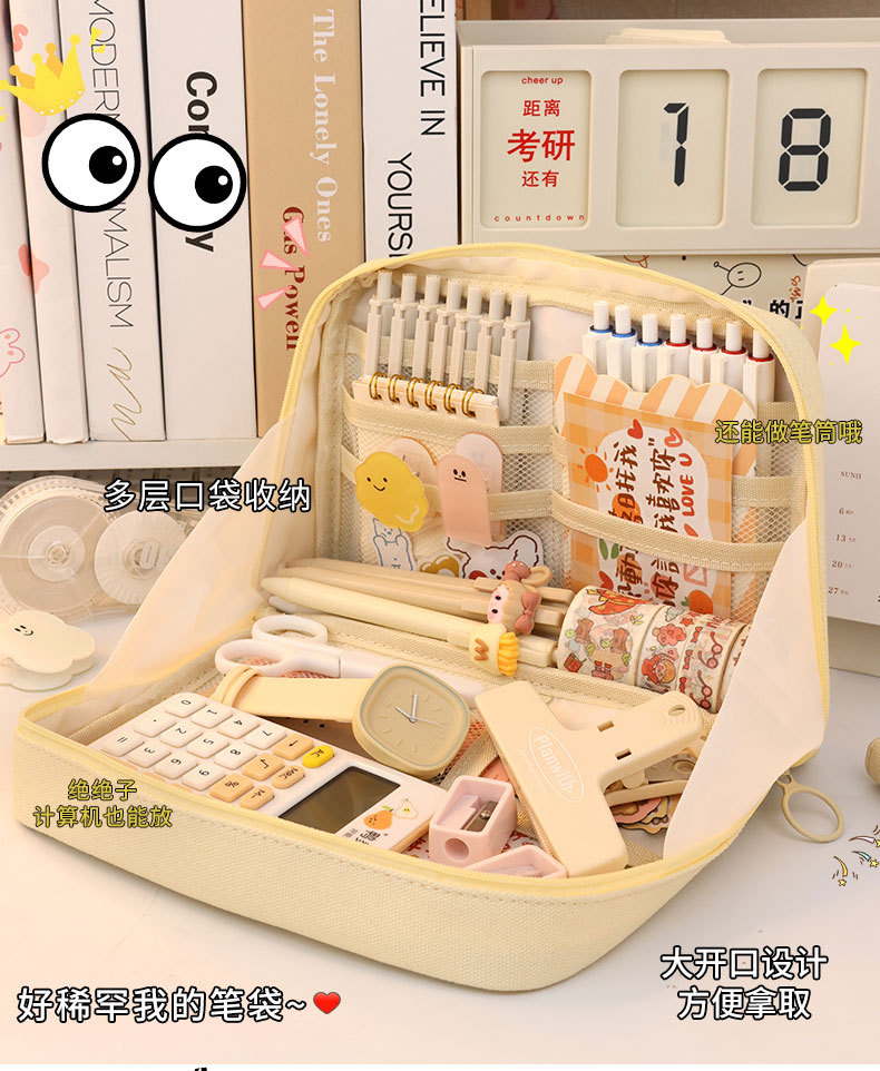 【升级大容量笔袋❗轻松收纳】笔袋大容量耐脏高颜值帆布大容量简约透明文具袋学生小众铅笔盒。rg