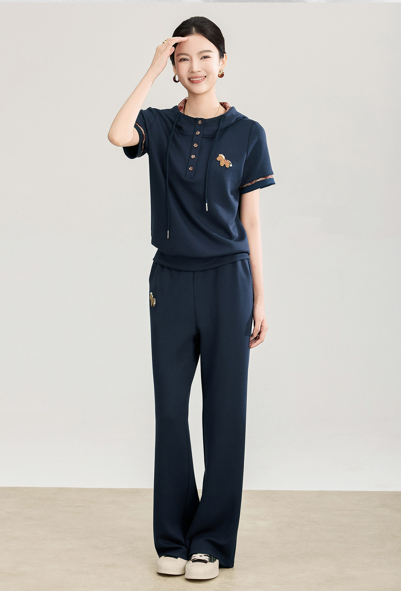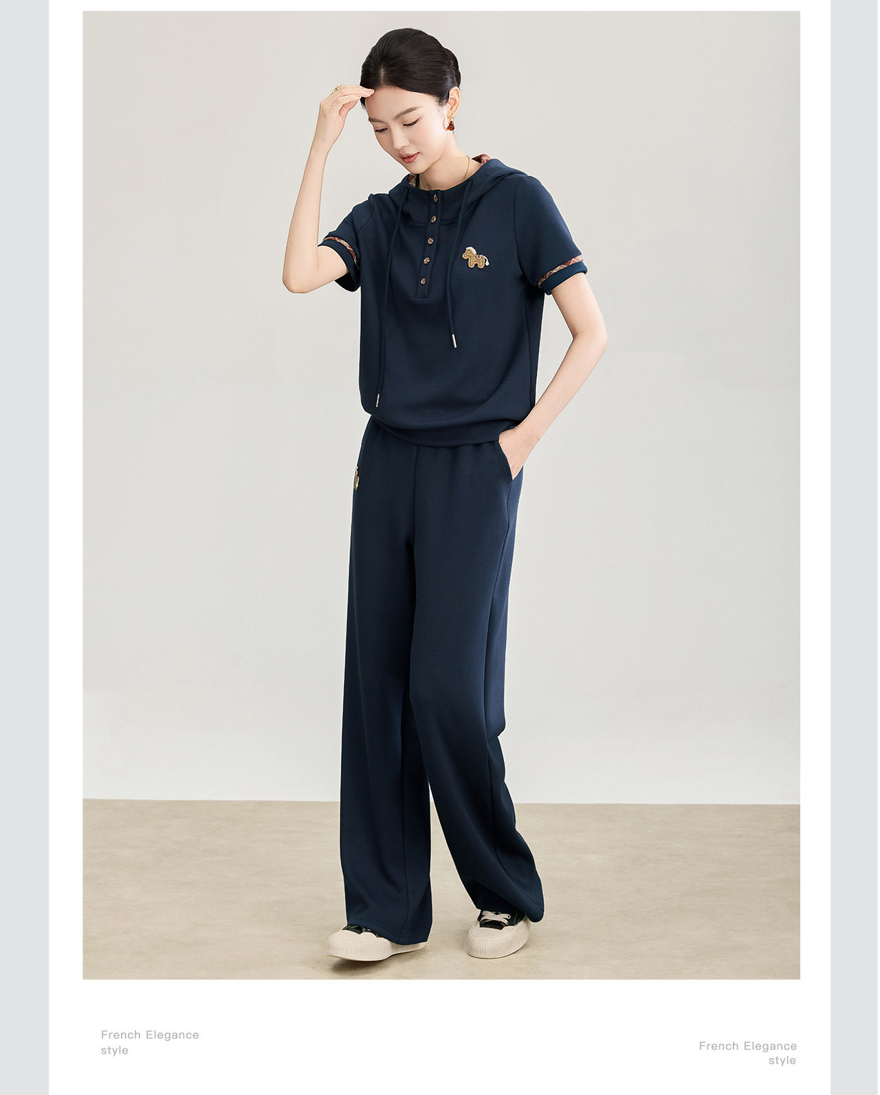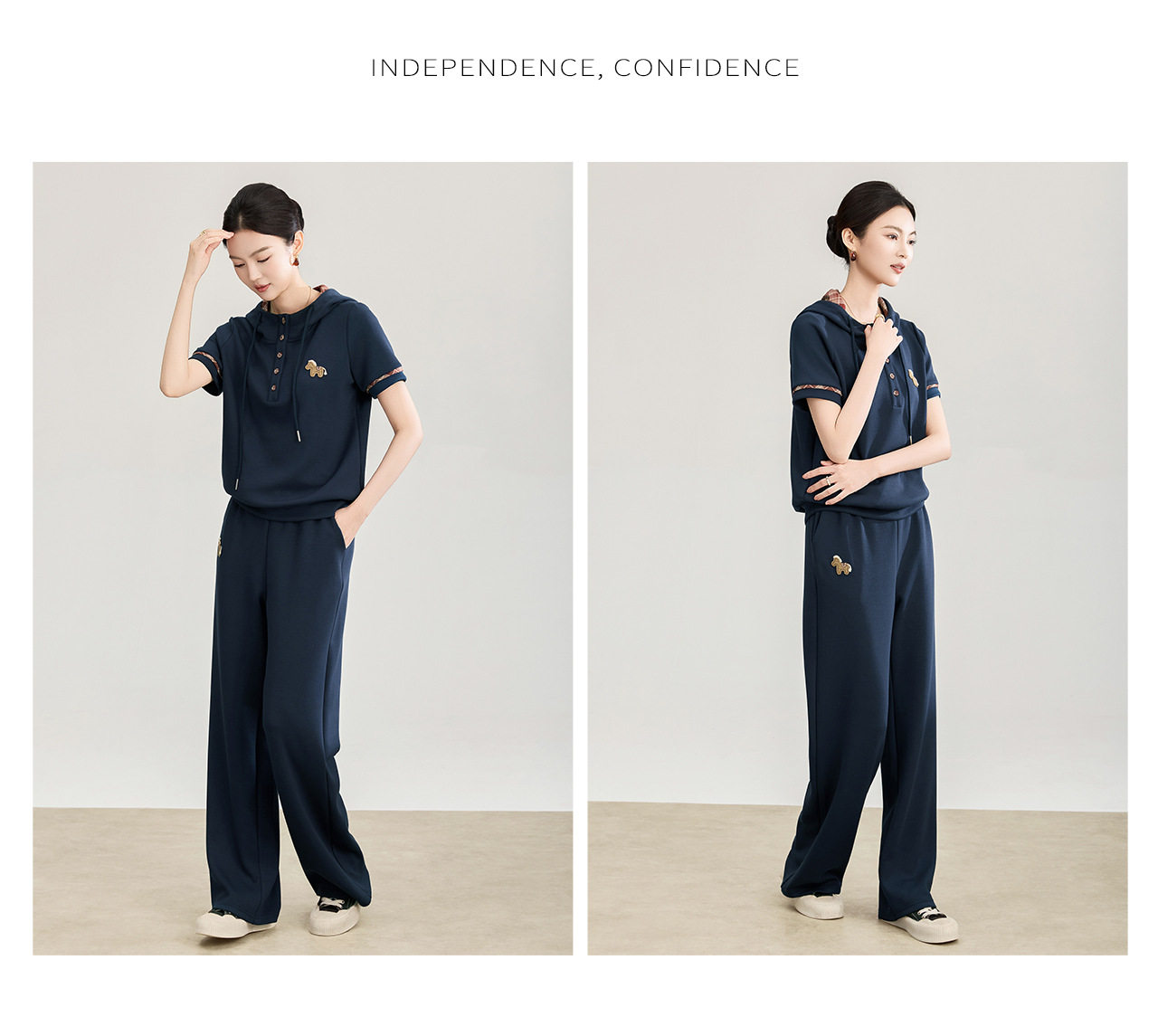 「高货wl」全新升级【铂金会员321/天猫429/差价108】(99125)洛诗琳2026春季气质连帽小马刺绣卫衣直筒休闲裤两件套