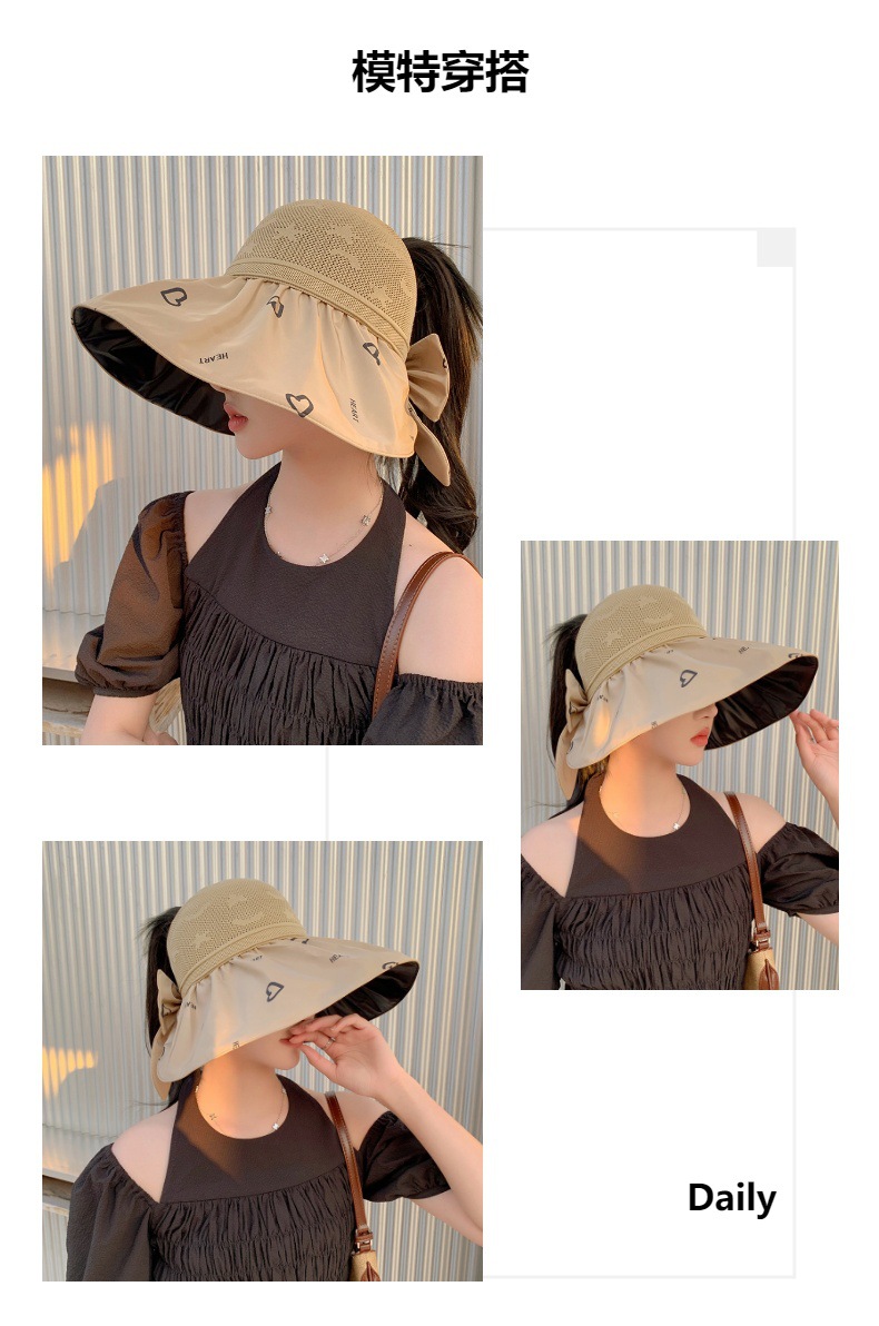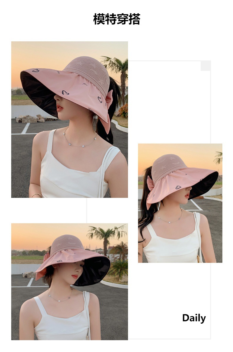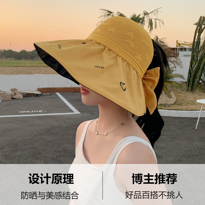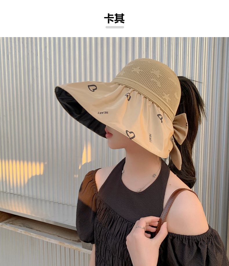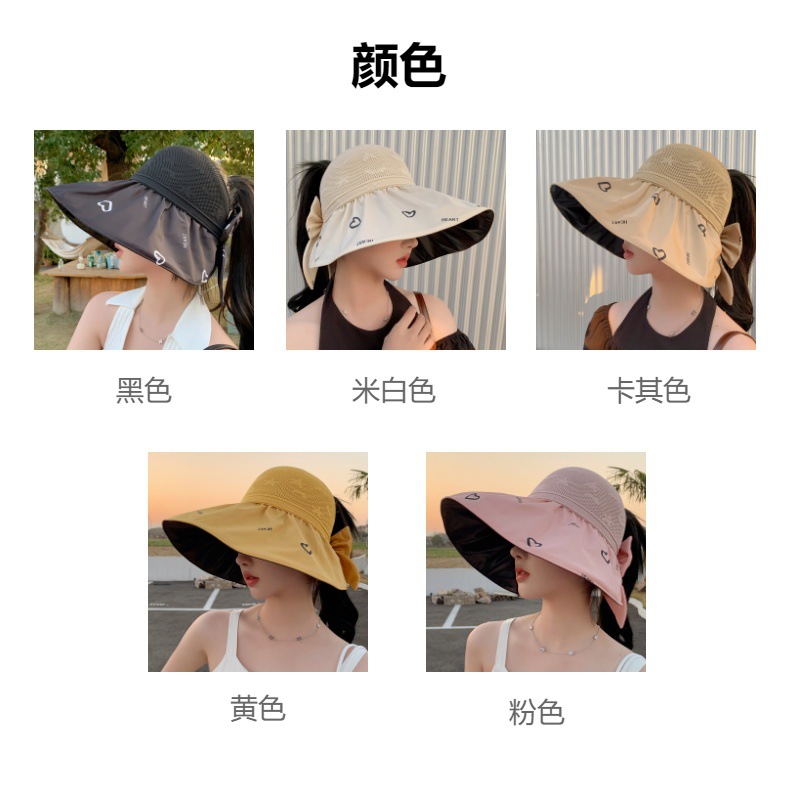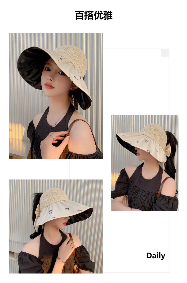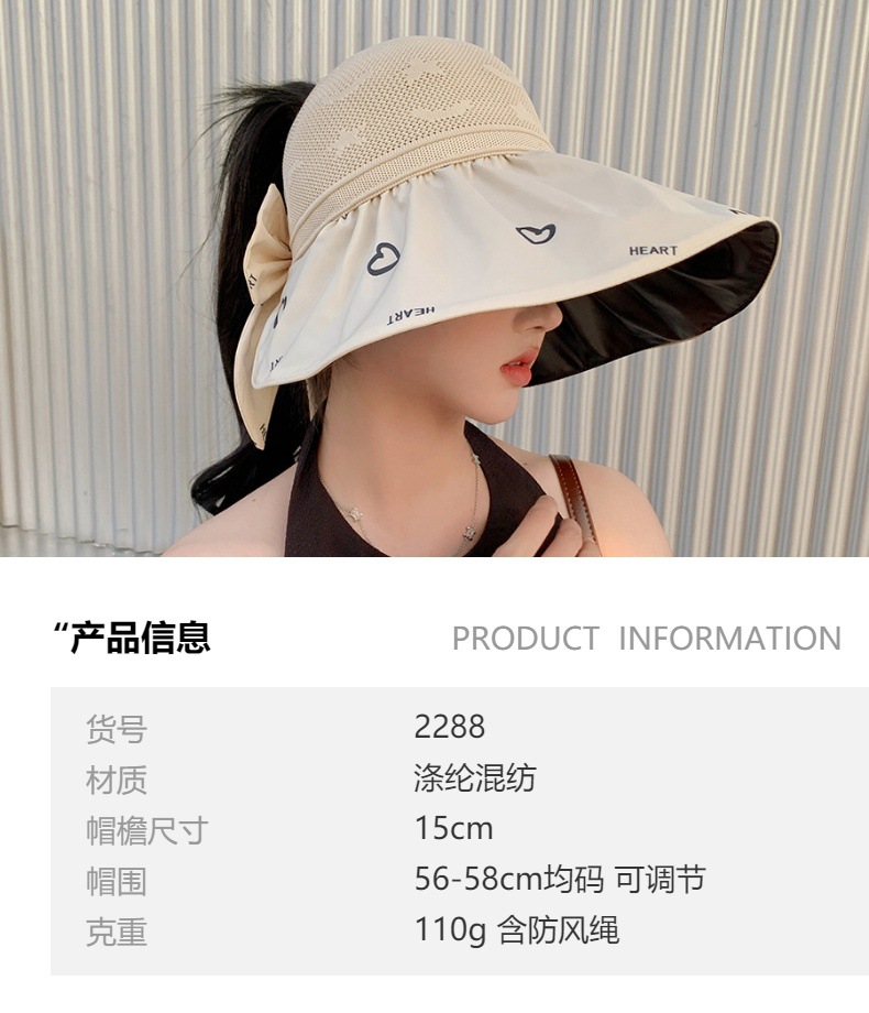 ZQ-M1-M2288夏季黑胶空顶遮阳帽甜美蝴蝶结帽女大沿爱心太阳帽子