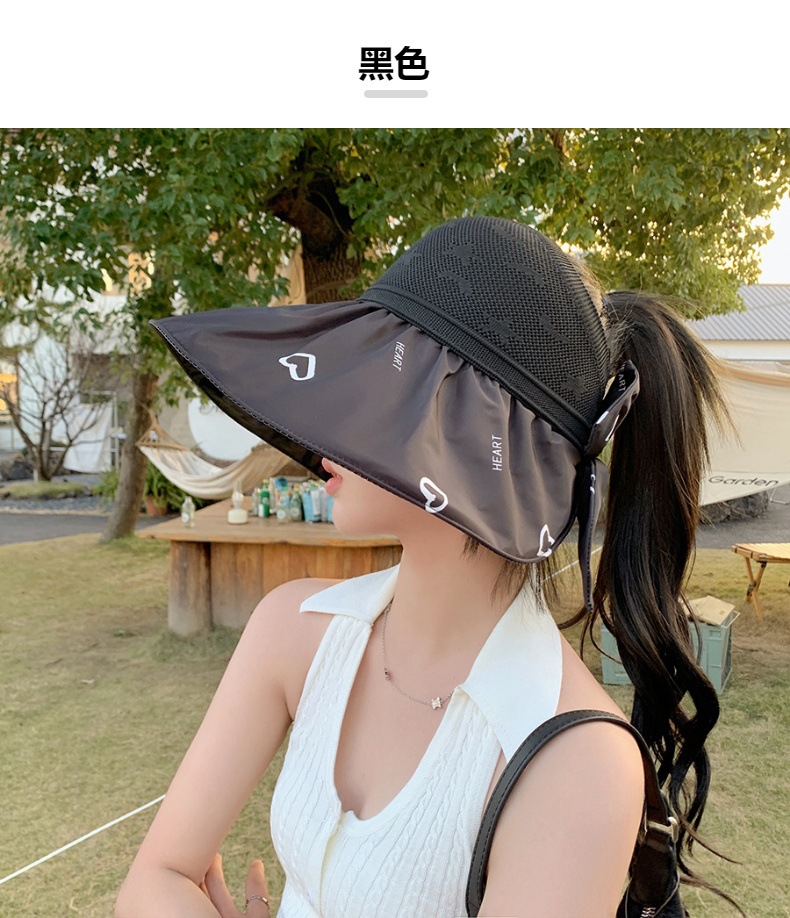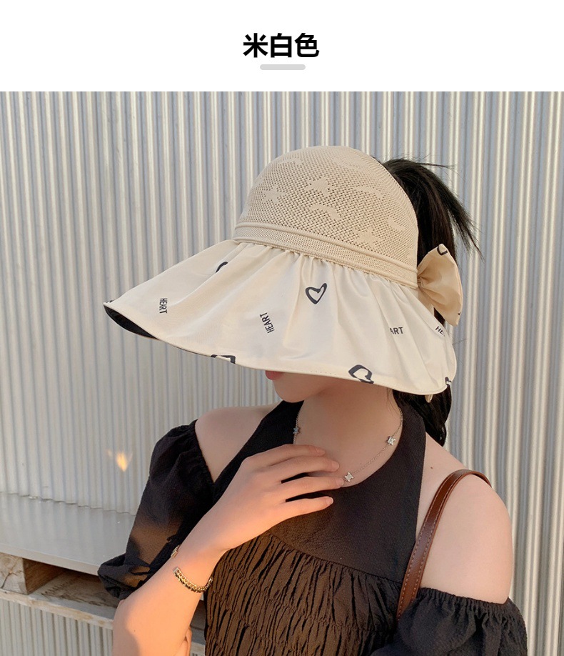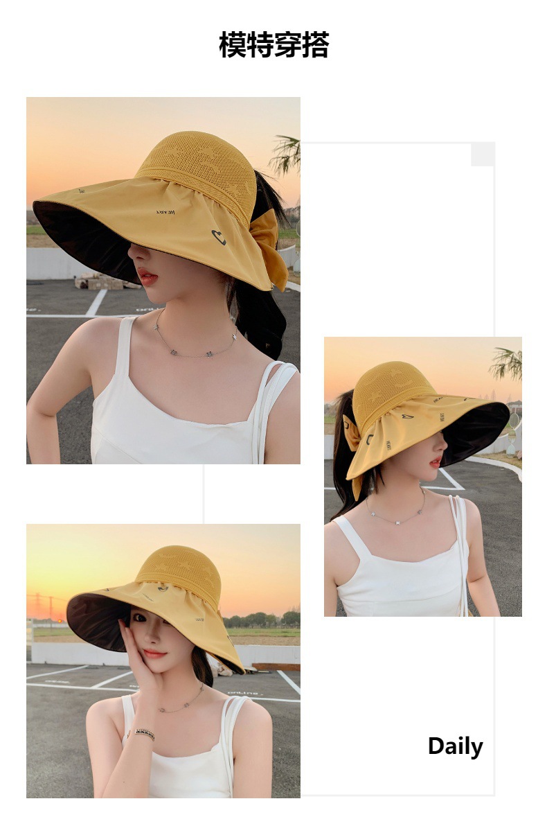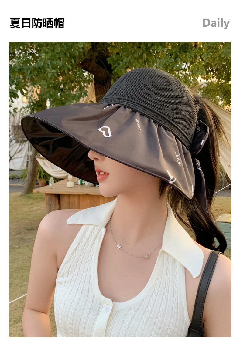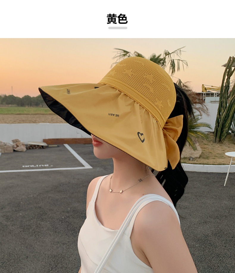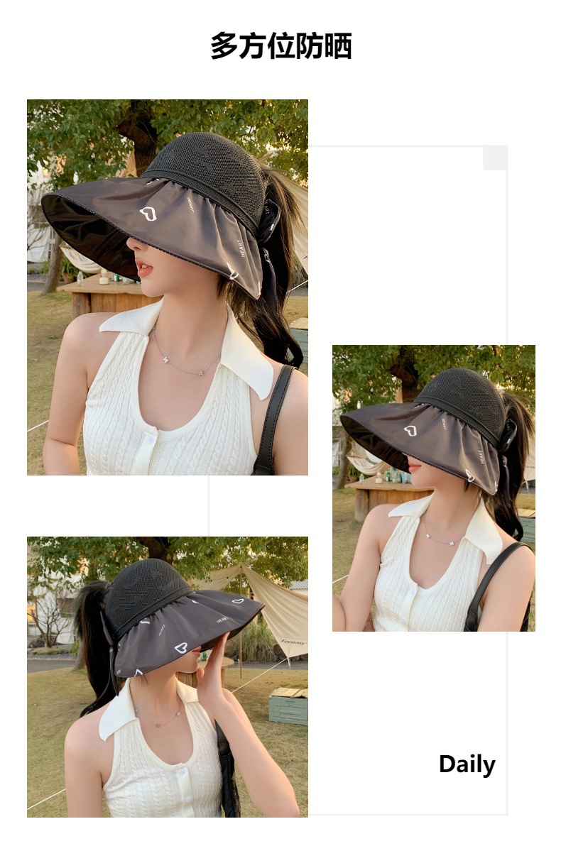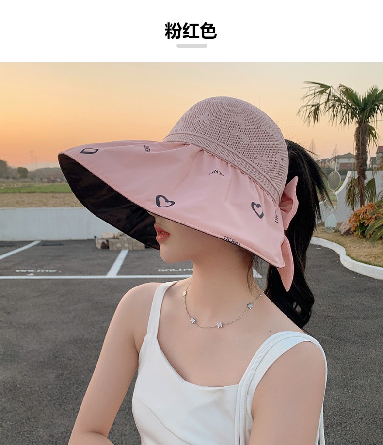 ZQ-M1-M2288夏季黑胶空顶遮阳帽甜美蝴蝶结帽女大沿爱心太阳帽子