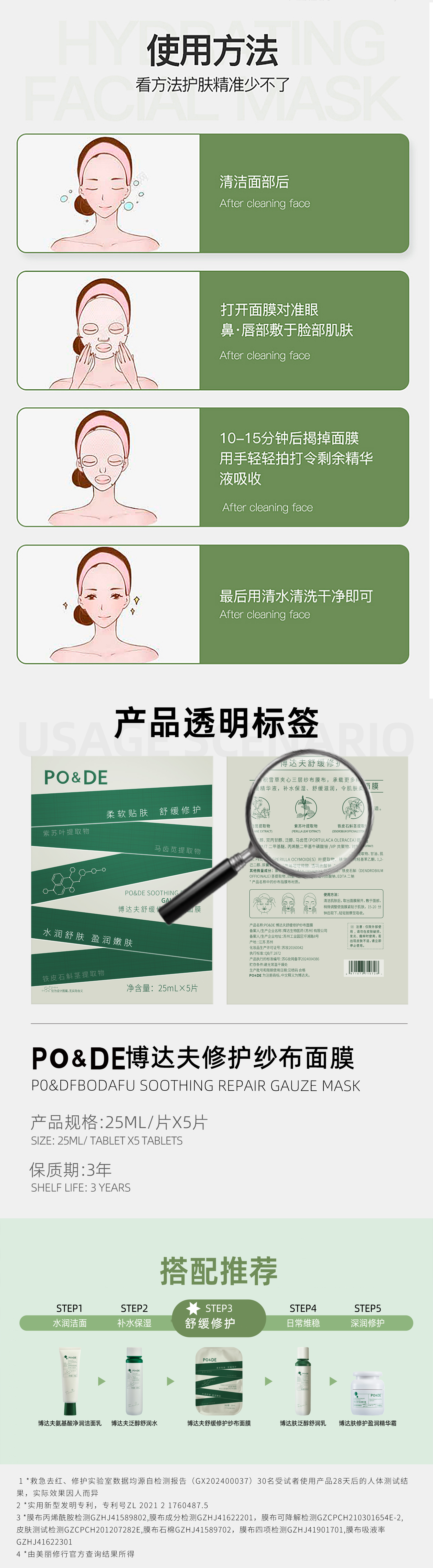 博达夫纱布修护面膜5片/盒(效期27年以后)