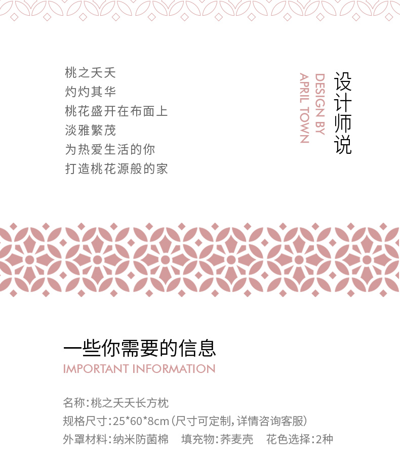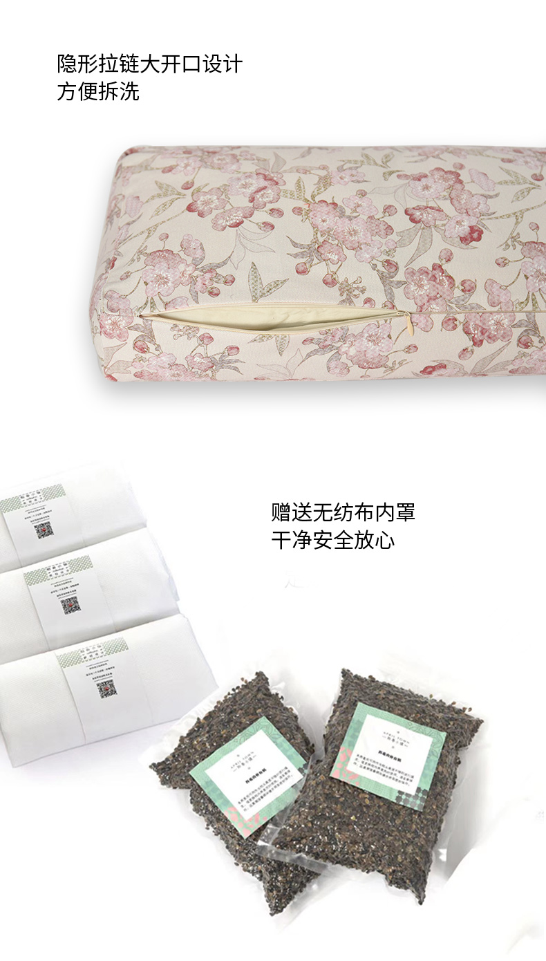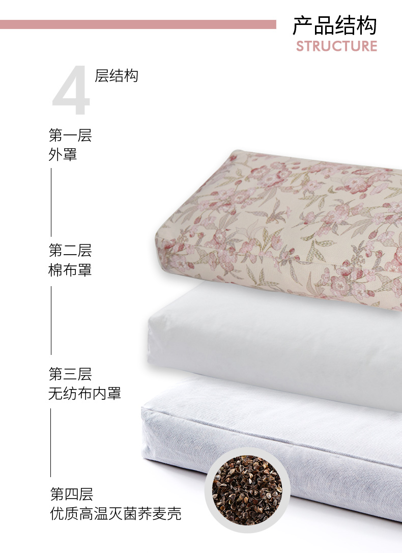 桃之夭夭长方枕荞麦壳枕头护颈椎荞麦皮睡眠四季