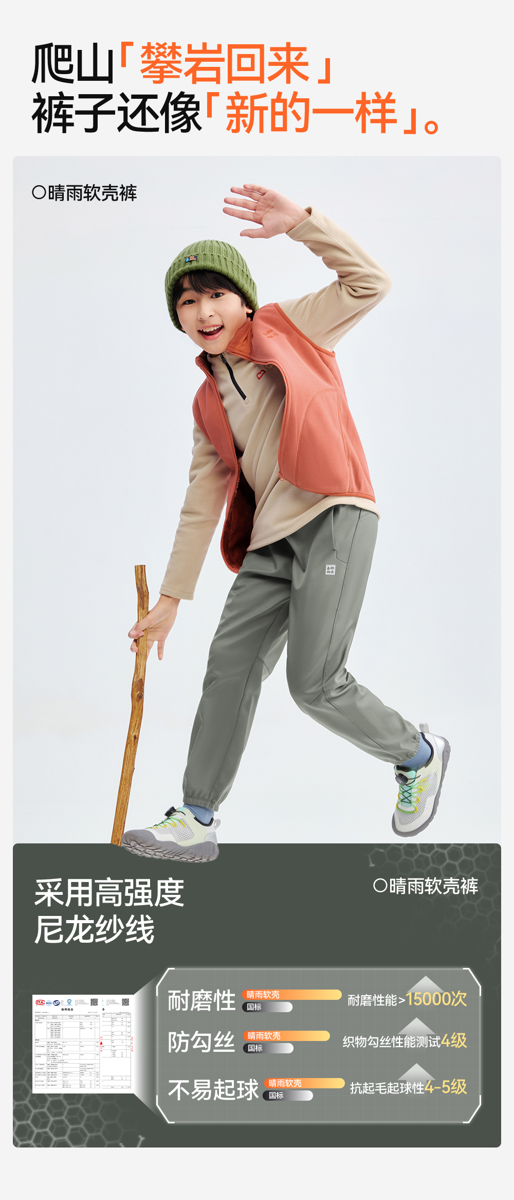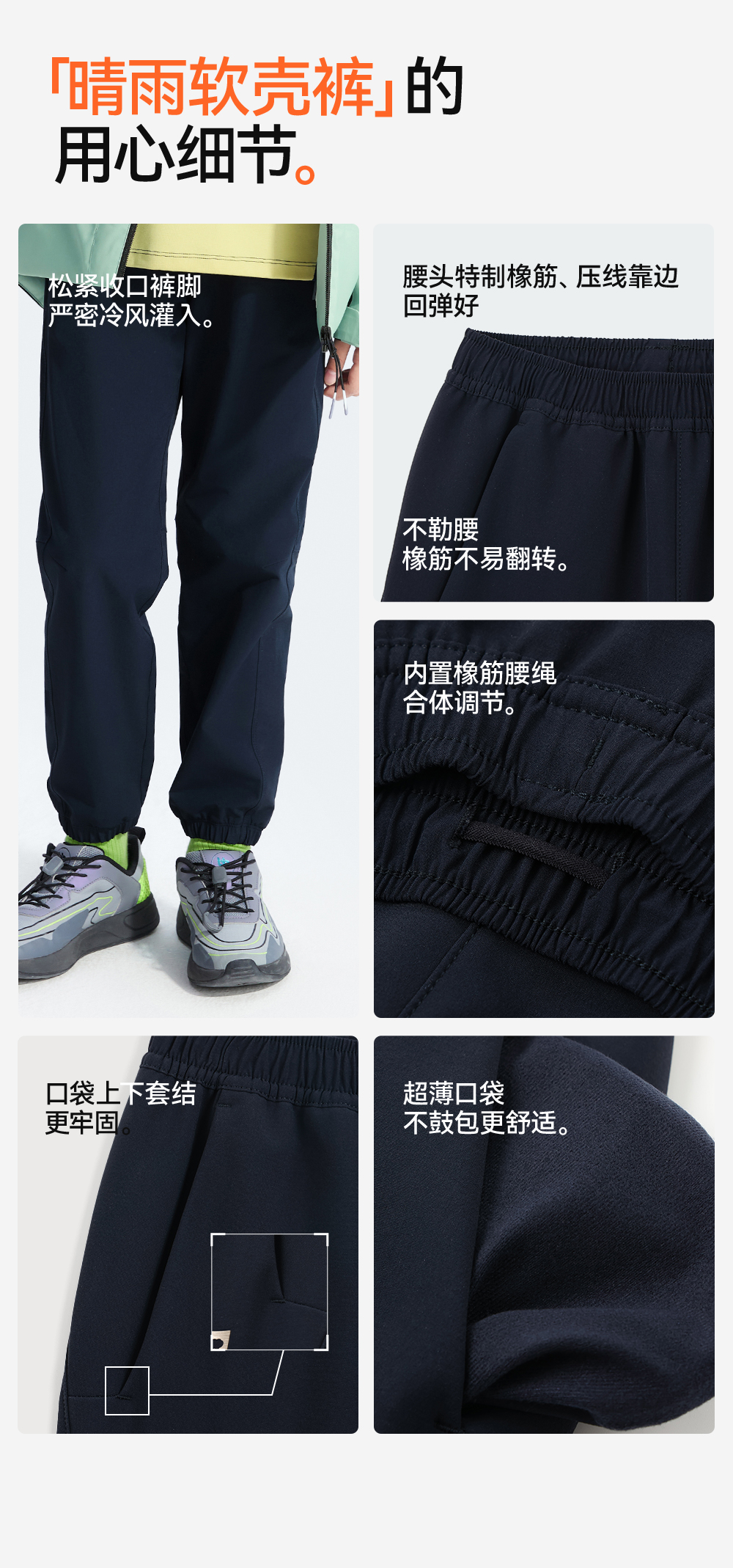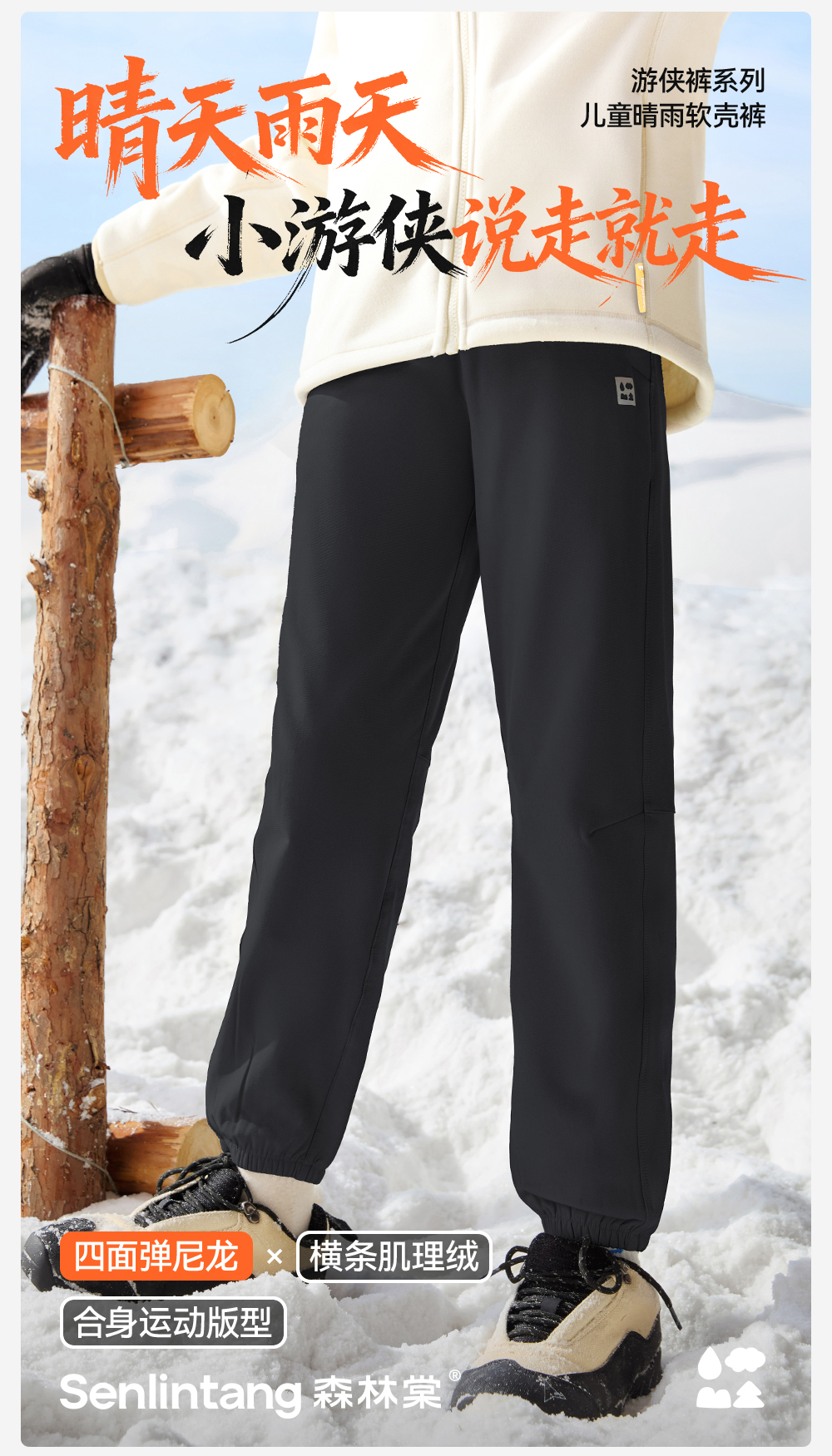 【儿童软壳束口裤】森林棠25冬季新款加绒加厚户外保暖束脚运动裤82053194