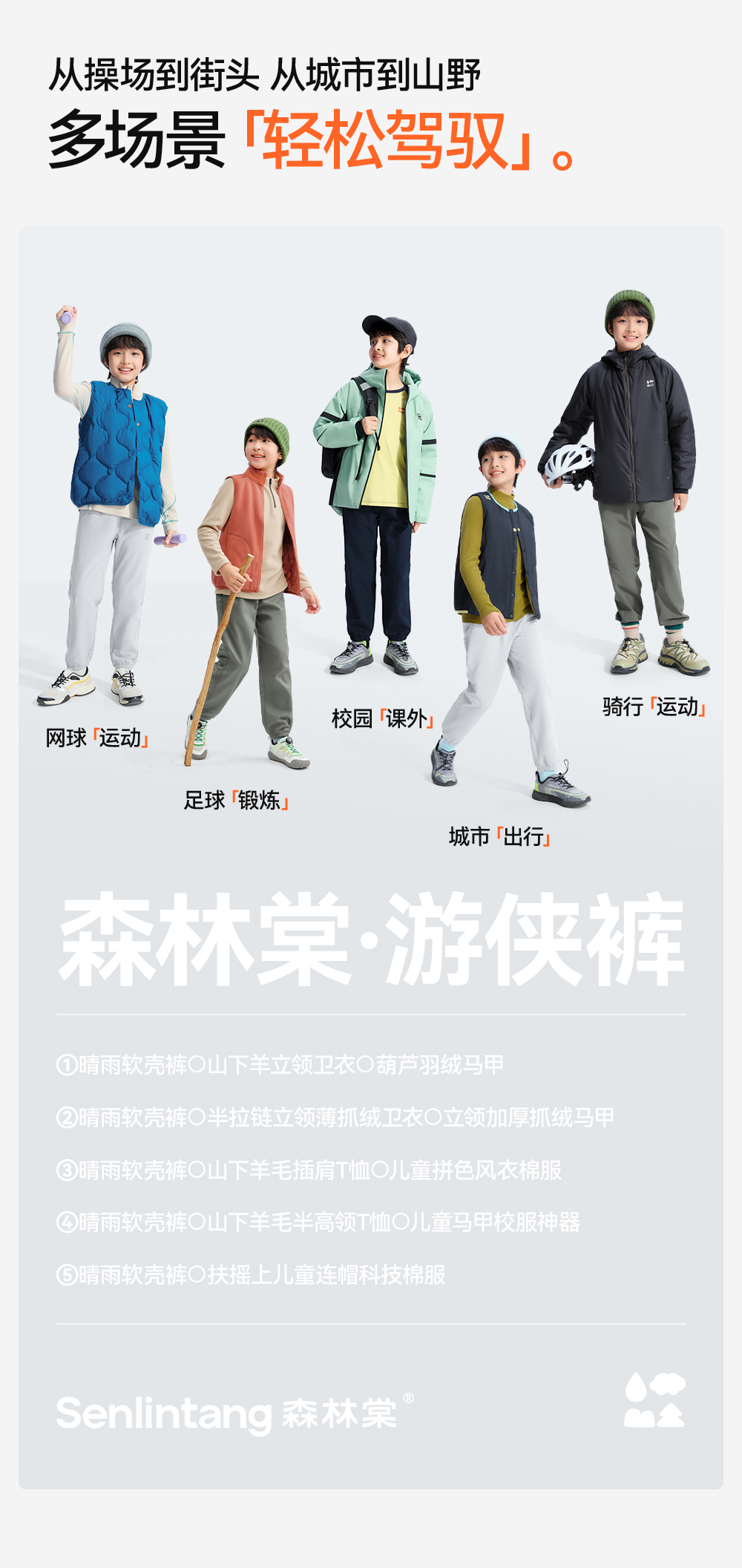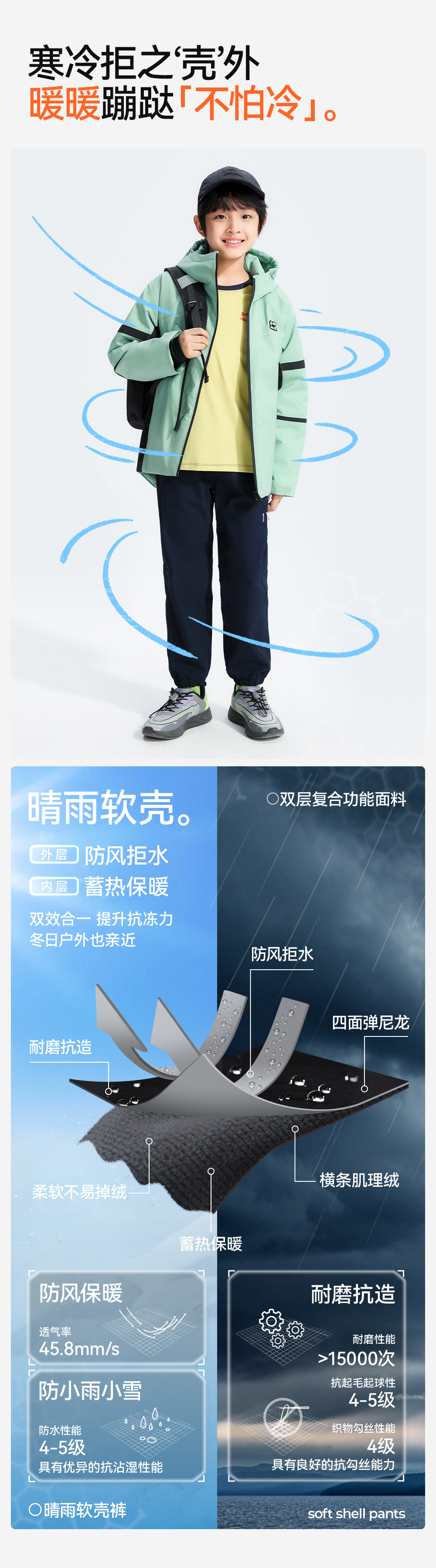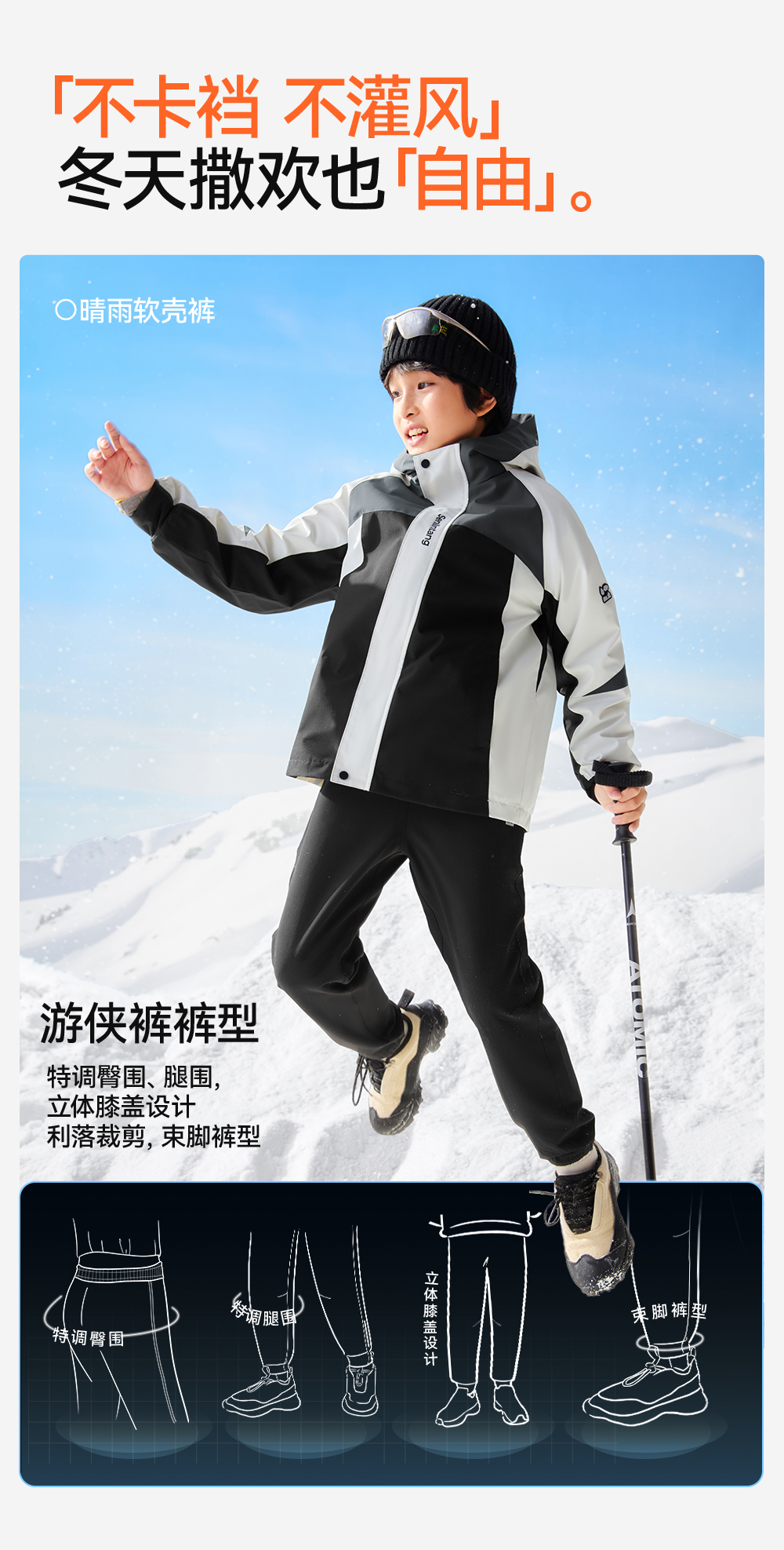 【儿童软壳束口裤】森林棠25冬季新款加绒加厚户外保暖束脚运动裤82053194