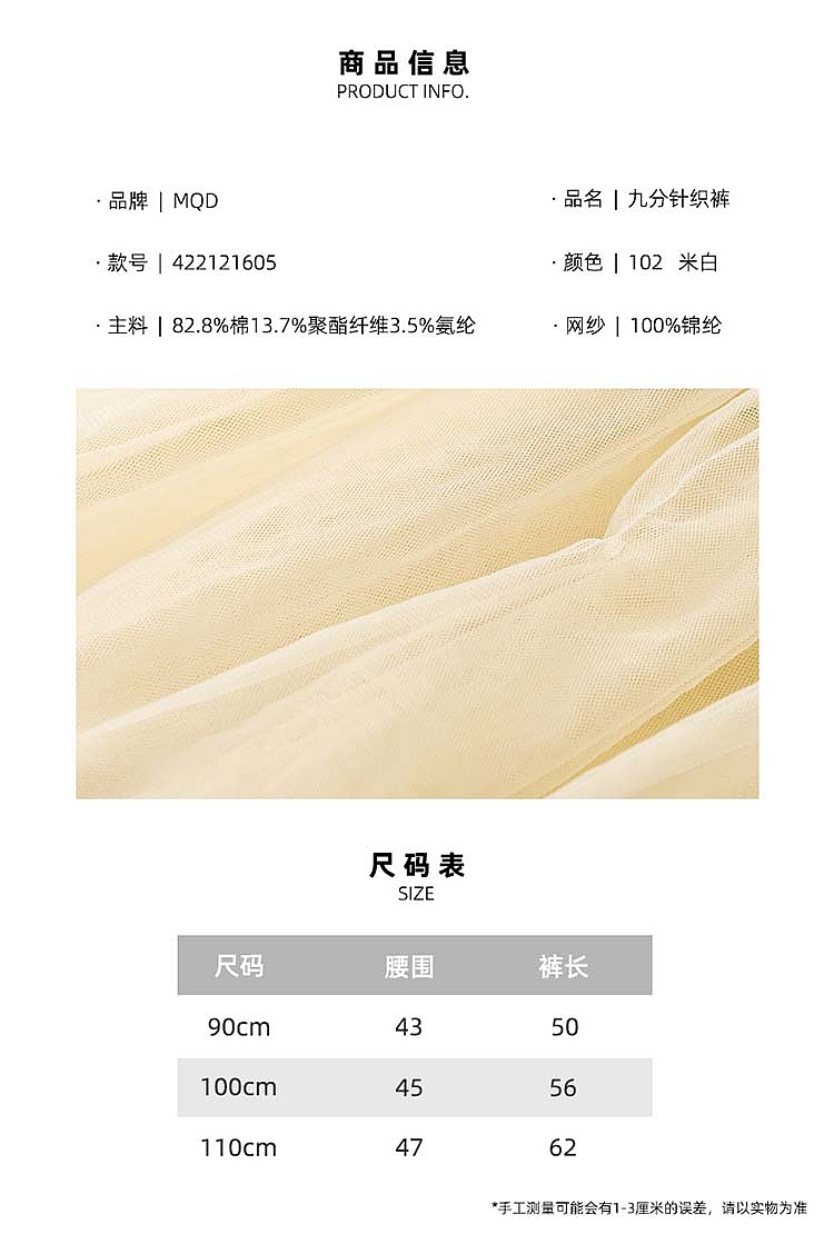 【A】【MQD】童装秋新款女童时尚简约百搭打底裤儿童网纱洋气裤子奥莱