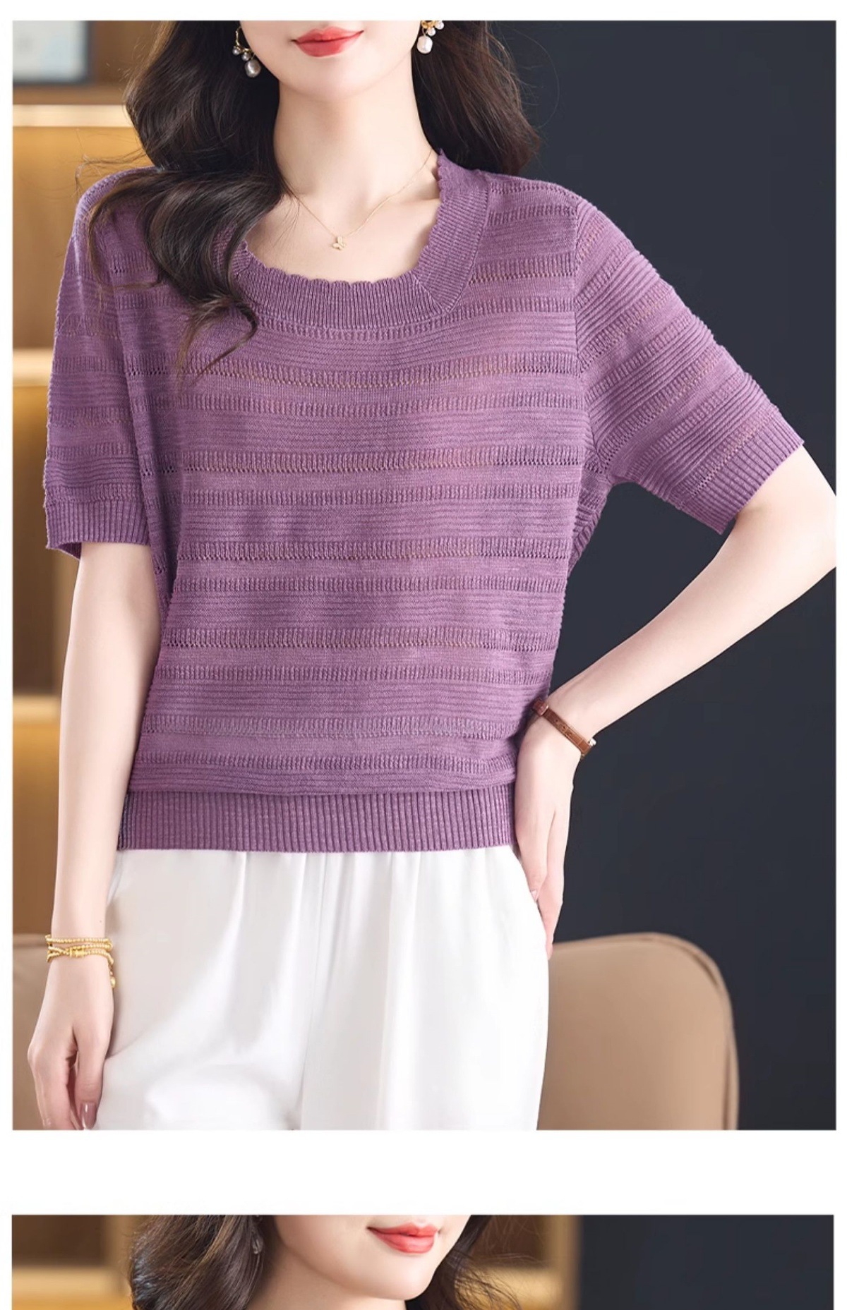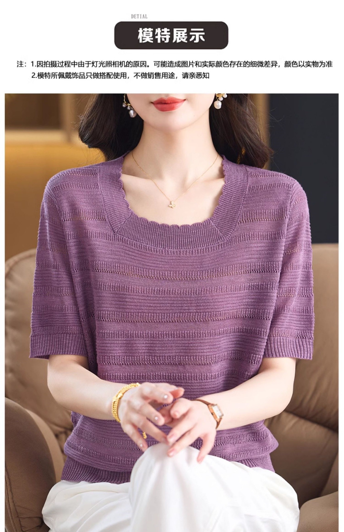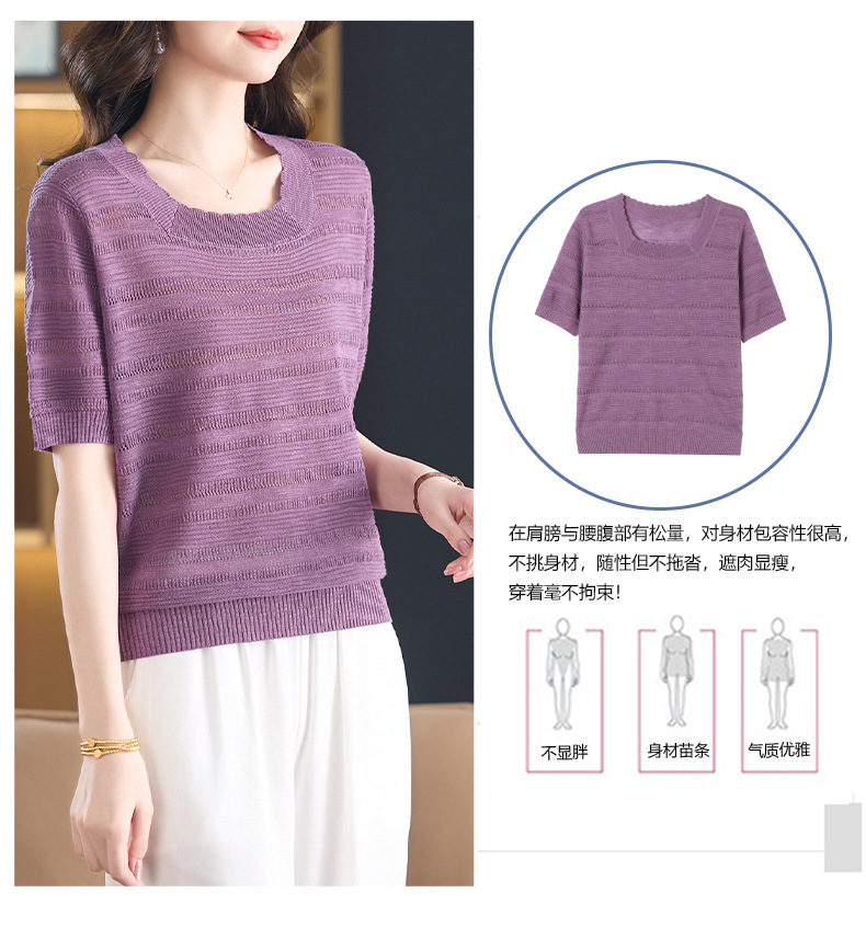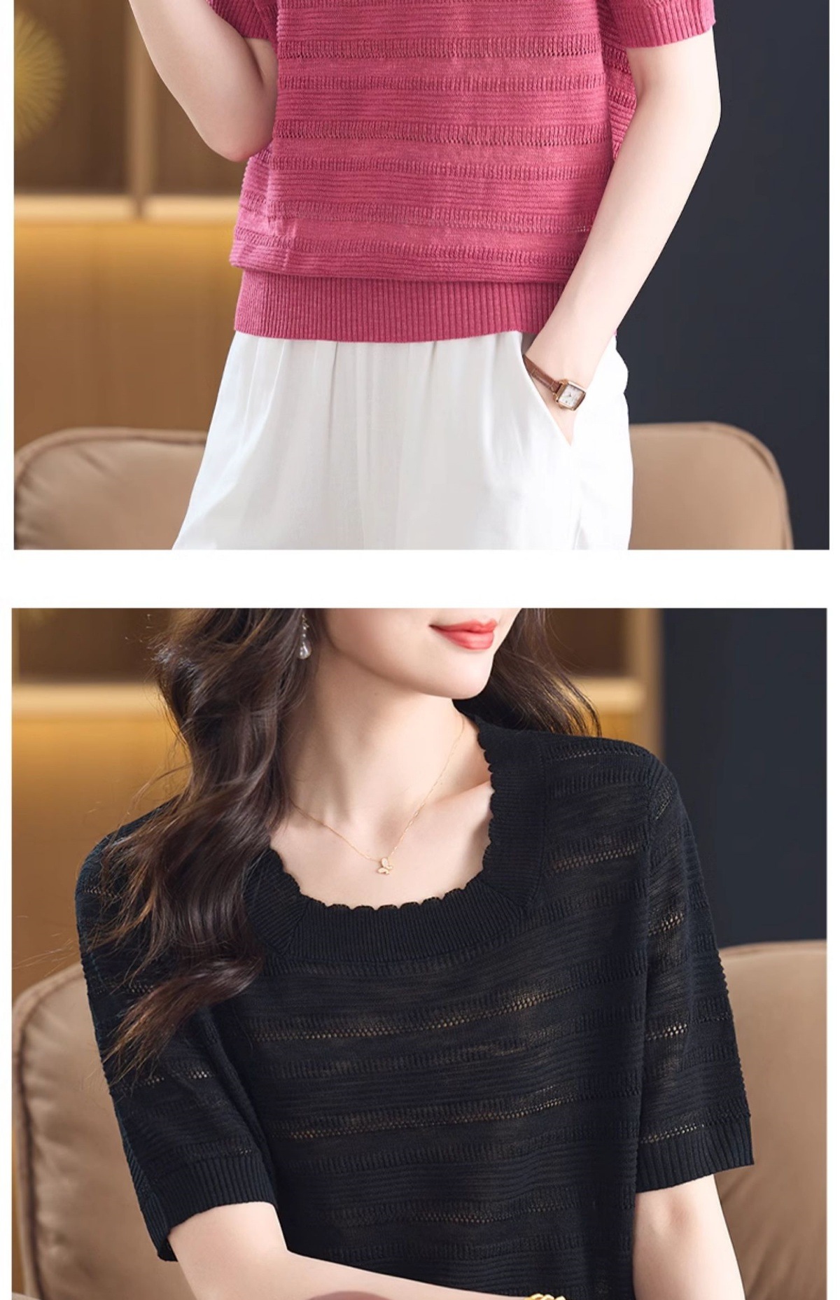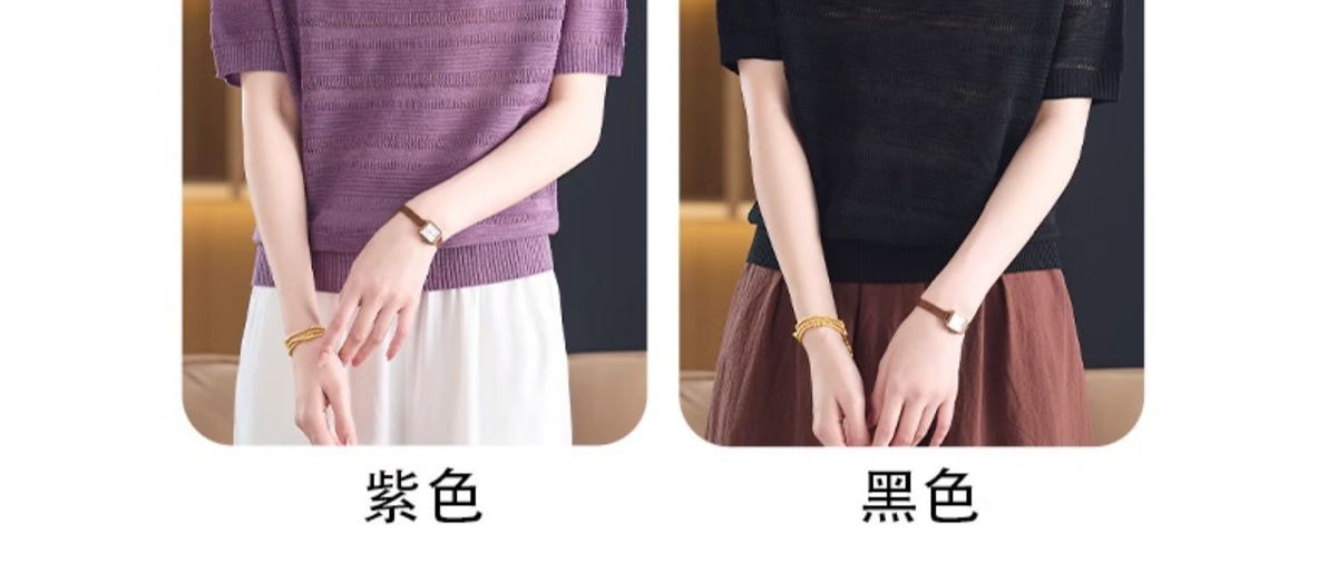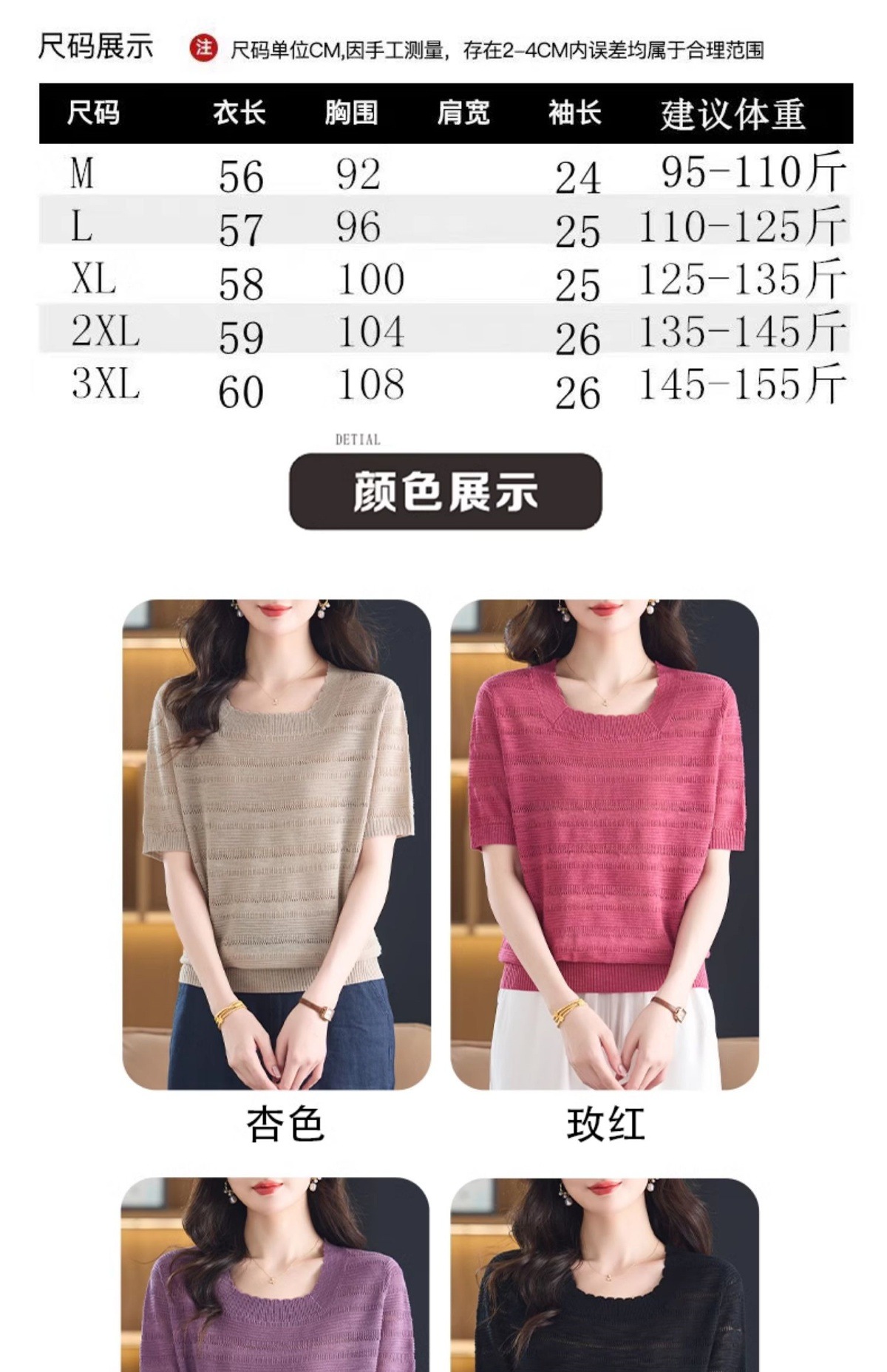 短款冰丝针织短袖T恤,薄款体恤宽松休闲小个子套头上衣CC- 5-6363