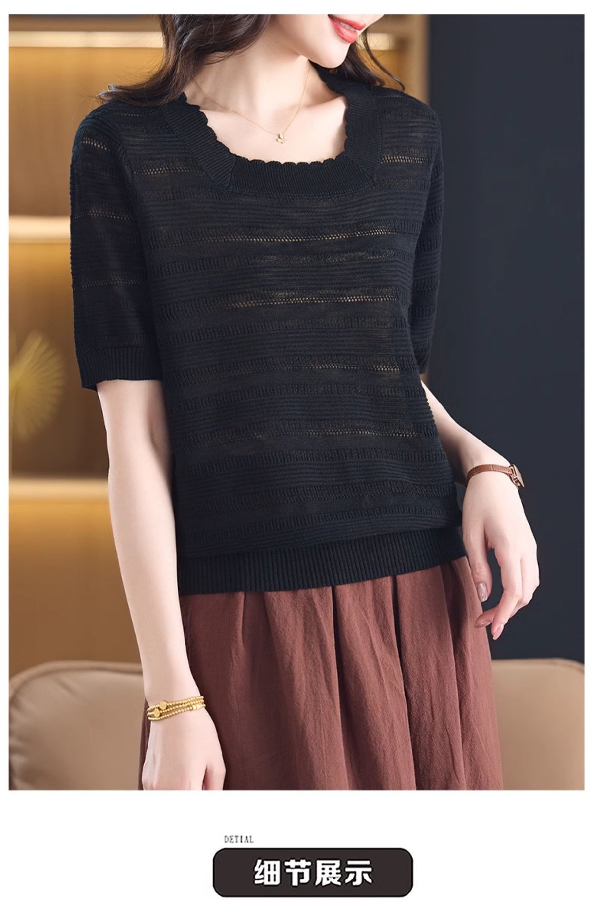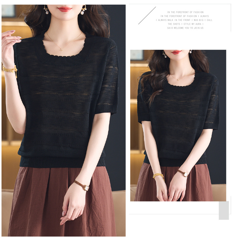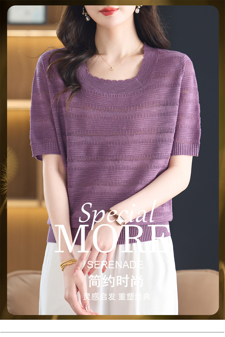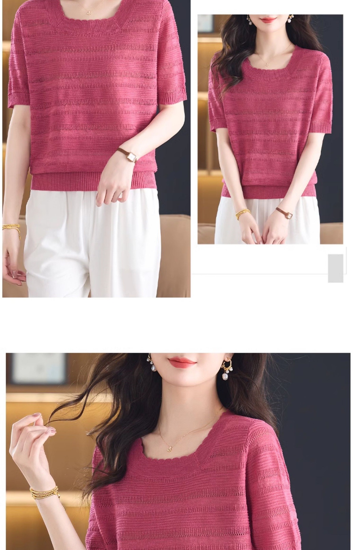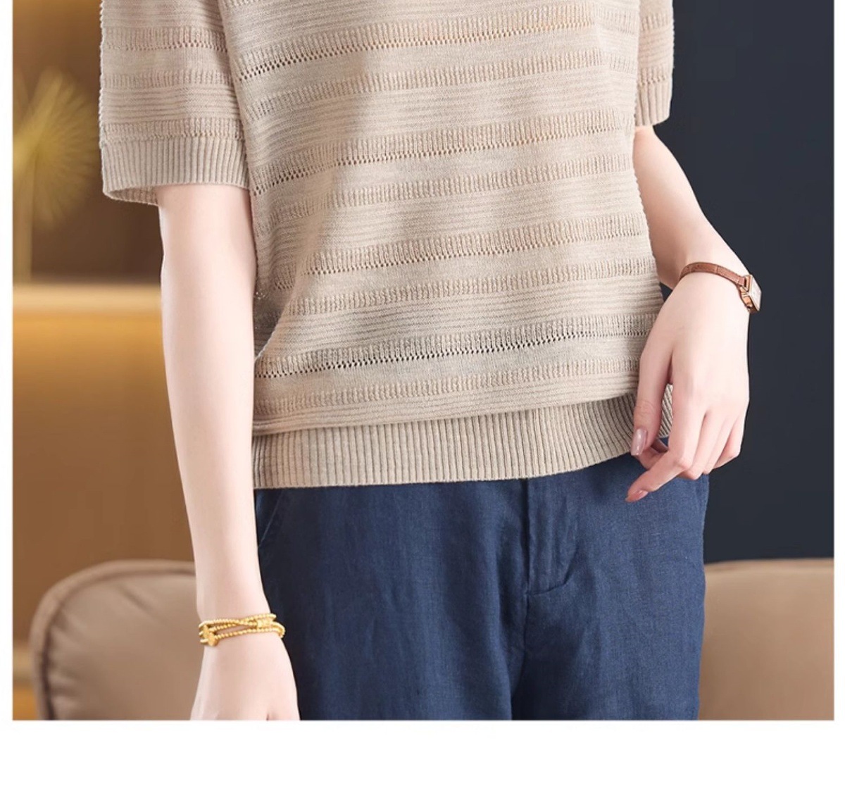 短款冰丝针织短袖T恤,薄款体恤宽松休闲小个子套头上衣CC- 5-6363
